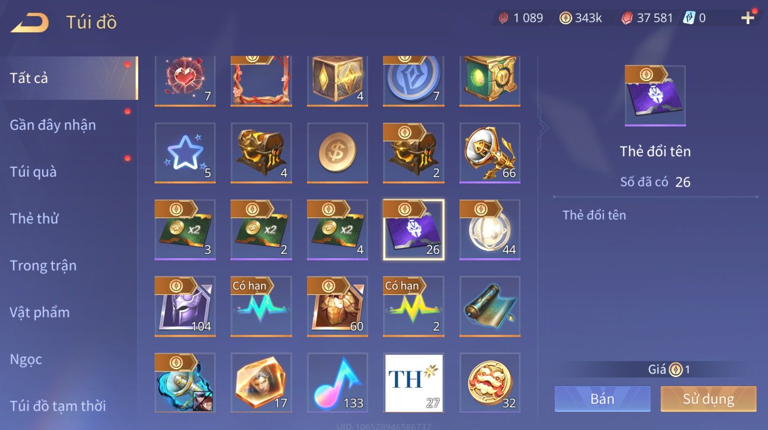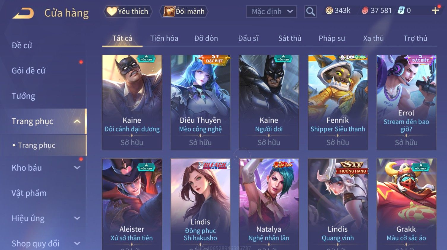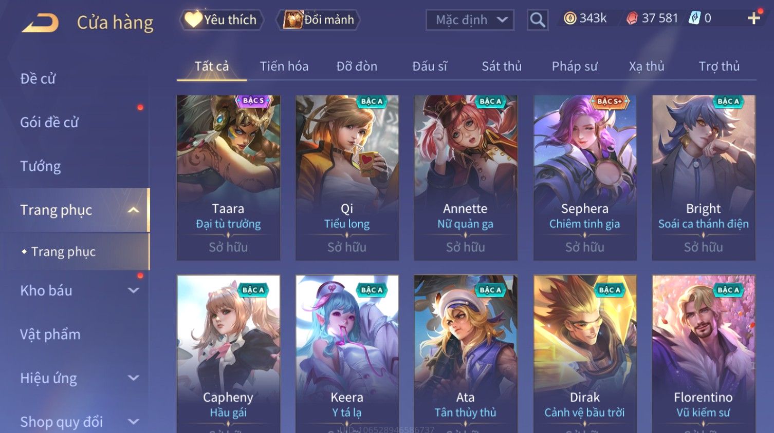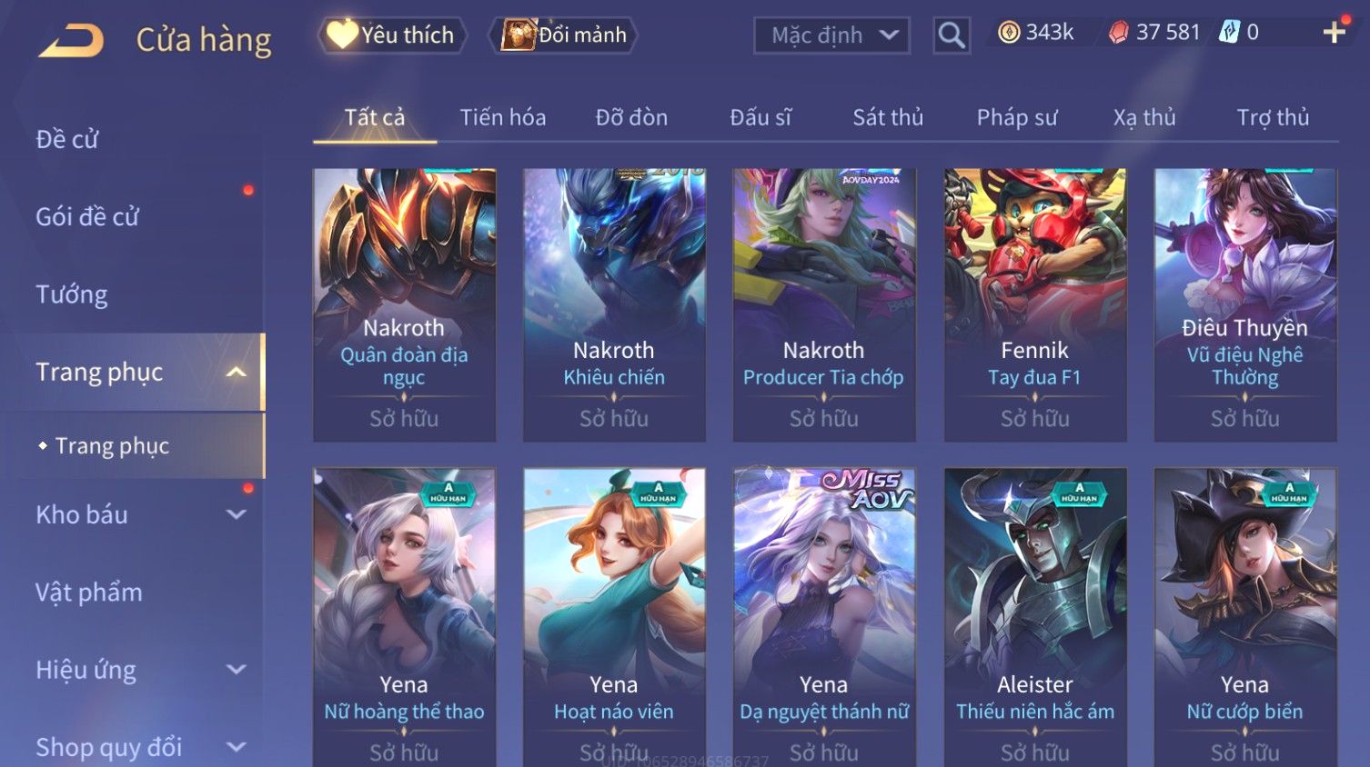 Nổi bật: Skin: Ryoma Sumarai Huyền Thoại×Raz Chiến Thần Muay Thái×Ngộ Không Siêu Việt×Lauriel Thánh Quang Sứ×Laville Xạ thần Tinh Vệ×Yorn Long Thần Soái×Murad Siêu Việt×Airi Kiemono×Ilumia Nộ Hải Thiên Ngư×Full Ngọc, Nhiều Skin SS Đẹp