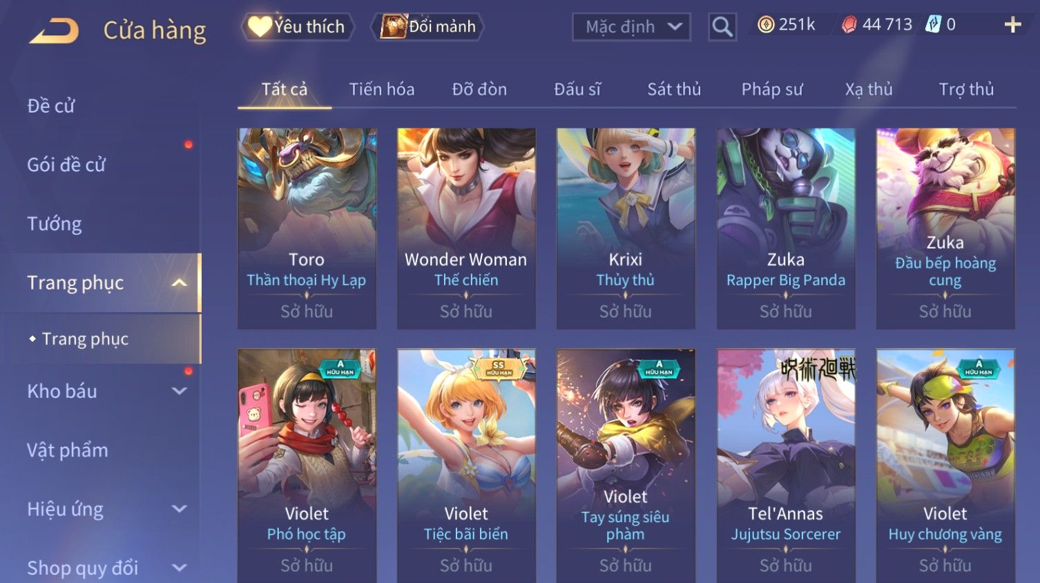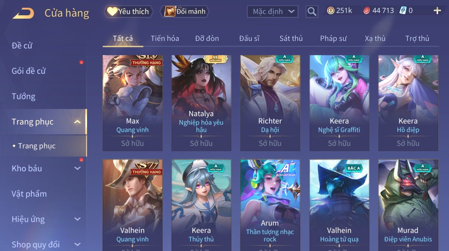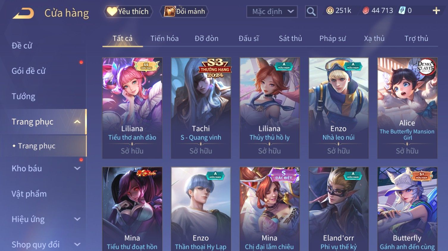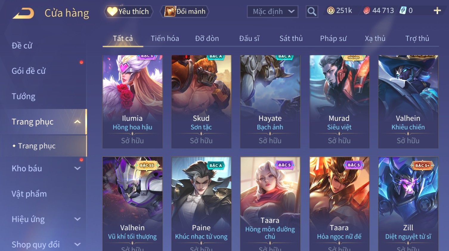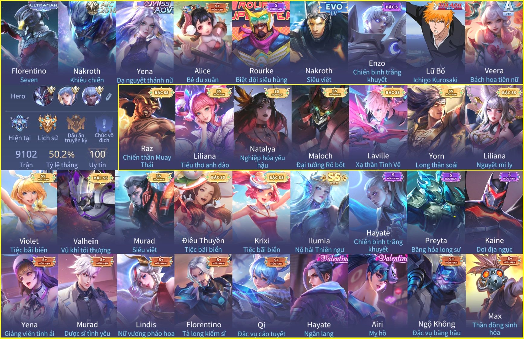 Nổi bật: Skin: Raz Chiến Thần Muay Thái×Liliana Tiểu Thơ Anh Đào×Natalya Nghiệp Hỏa Yêu Hậu×Maloch Đại Tướng Rô Bốt×Laville Xạ thần Tinh Vệ×Yorn Long Thần Soái×Violet Tiệc Bãi Biển×Ilumia Nộ Hải Thiên Ngư×Full Ngọc, Nhiều Skin SS Đẹp