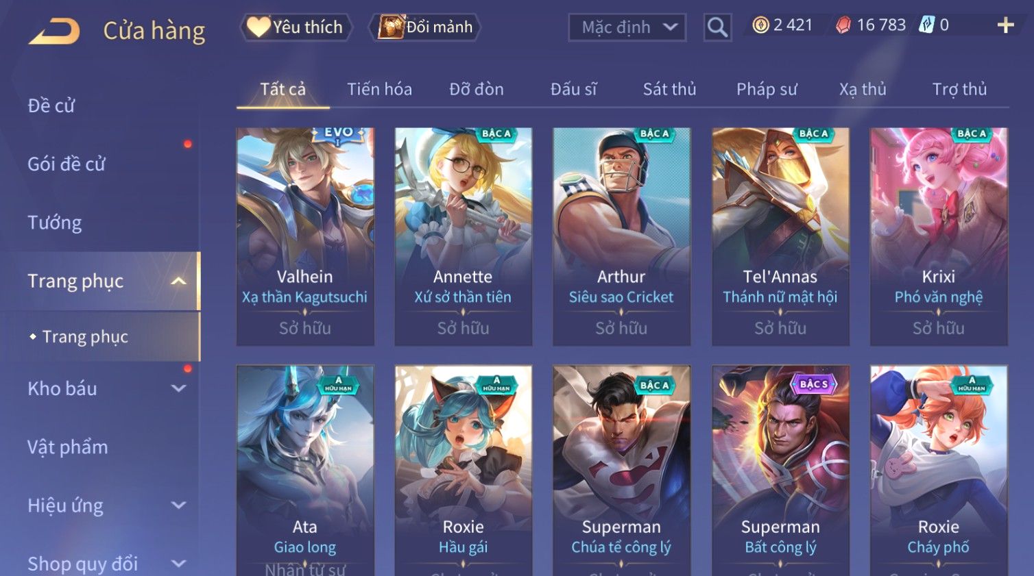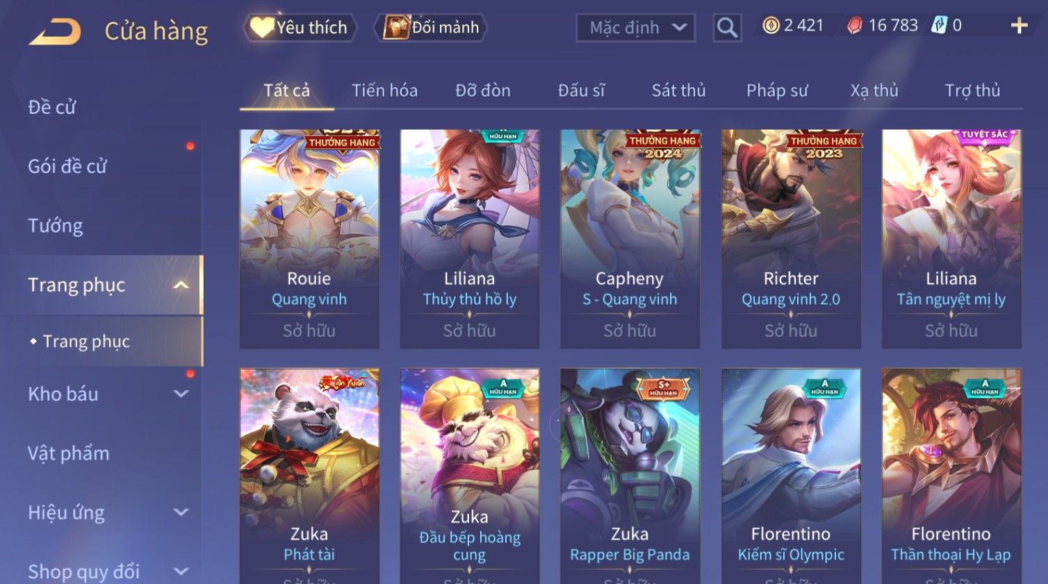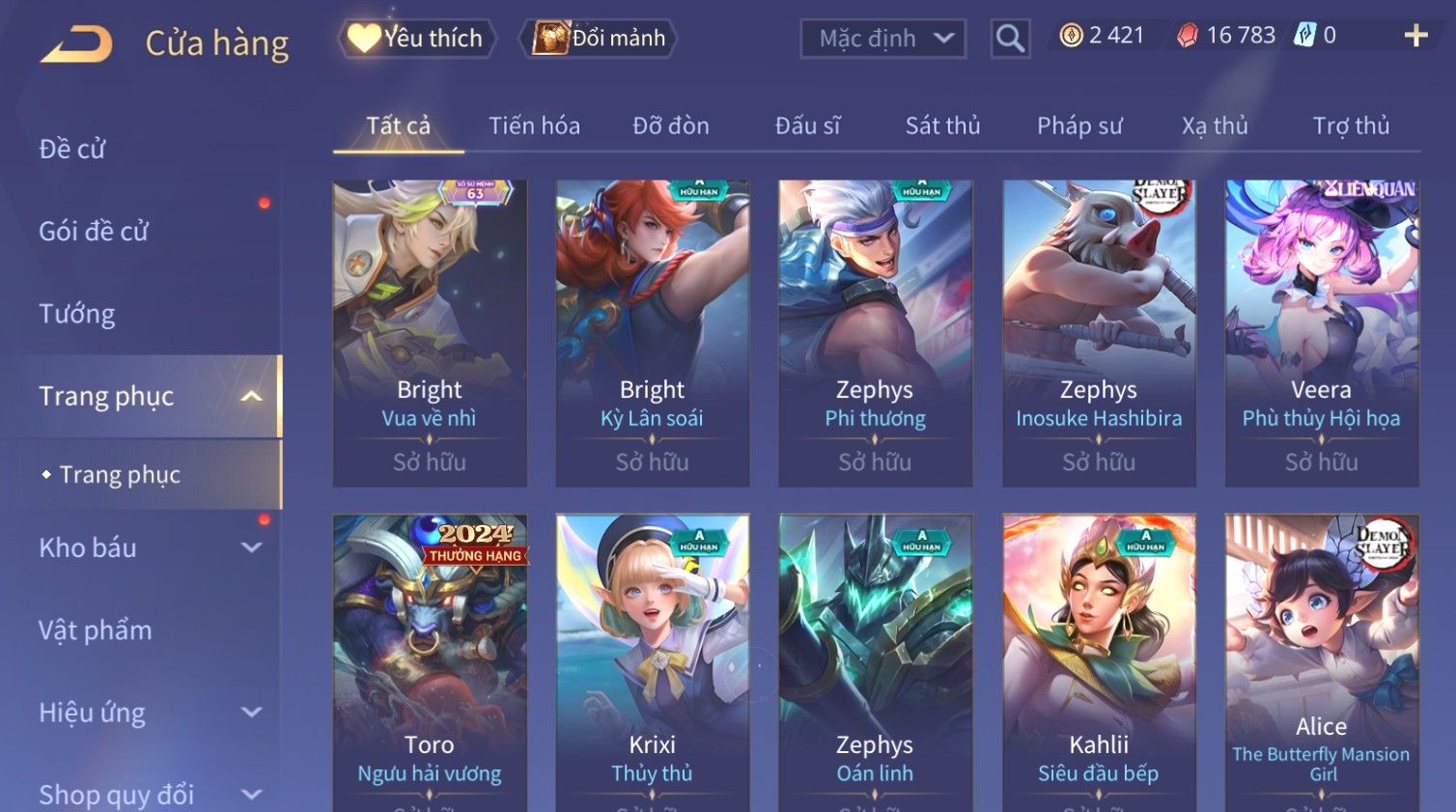 Nổi bật: Skin: Liliana Tân Nguyệt Mị Ly×Quillen Nghịch Thiên Long Đế×Laville Xạ thần Tinh Vệ×Florentino Giám Sát Tinh Hệ×Ryoma Thanh Long Bang Chủ×Full Ngọc, Nhiều Skin Đẹp