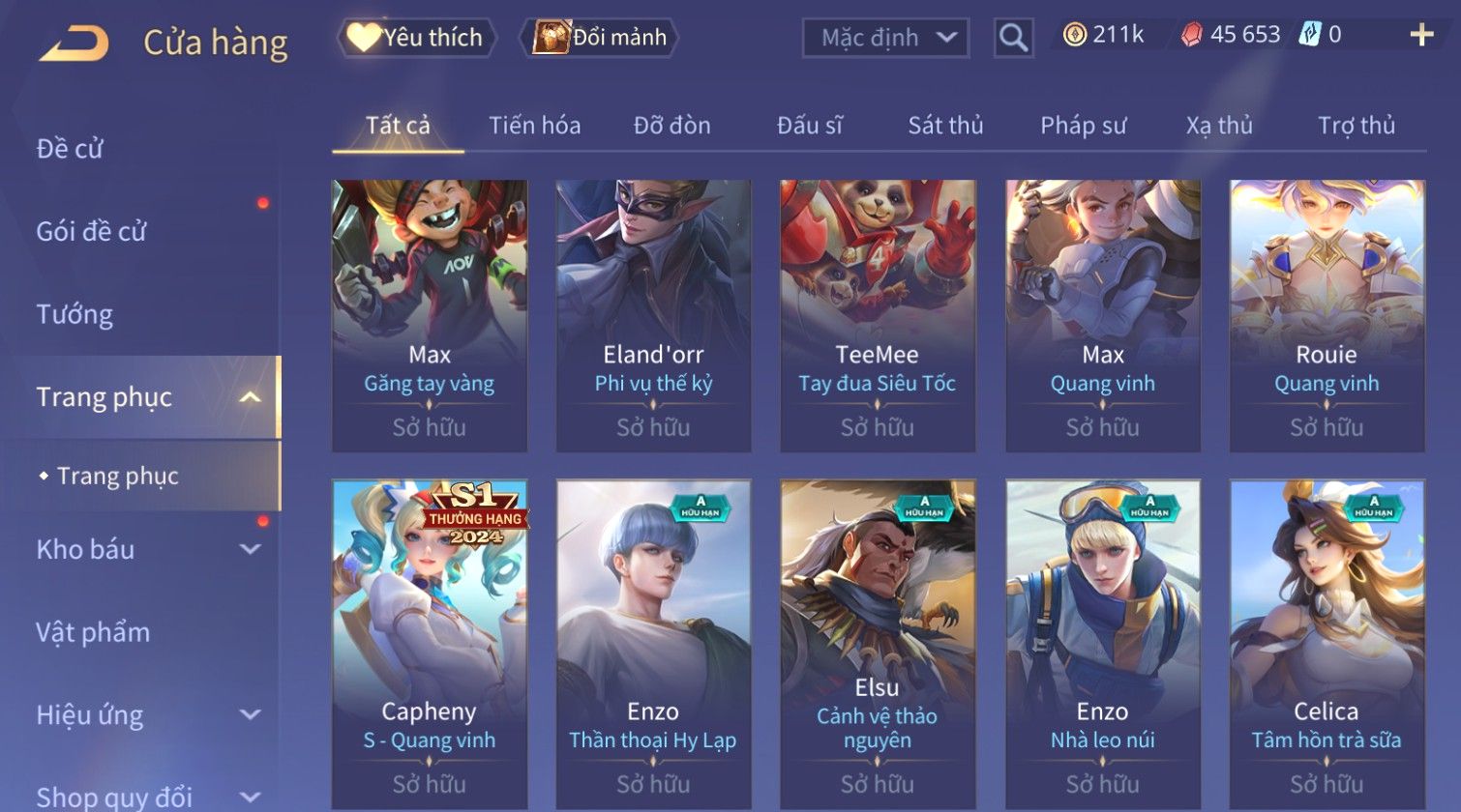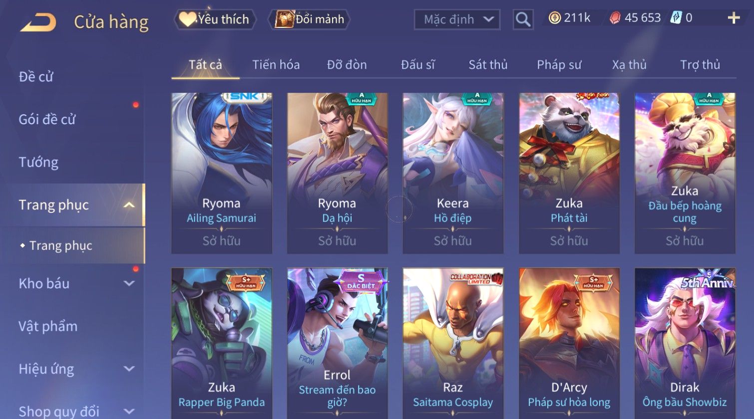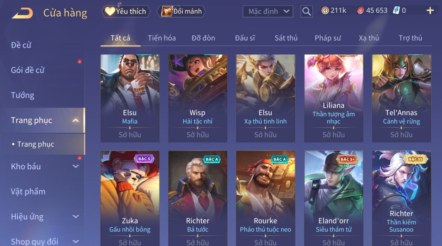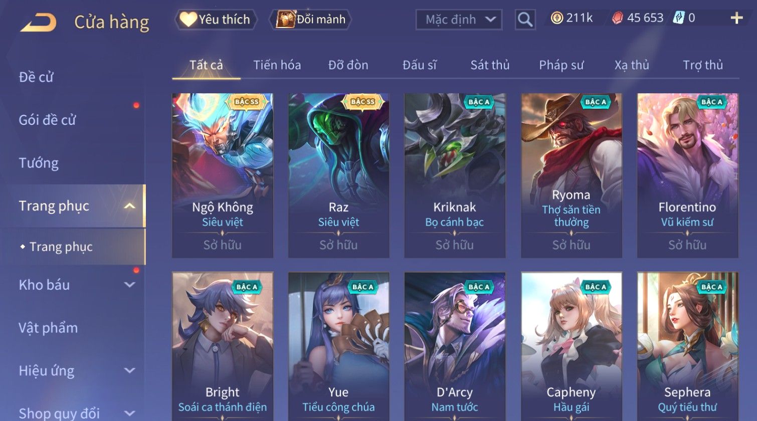Nổi bật: Skin: Raz Siêu Việt×Ngộ Không Siêu Việt×Quillen Đặc Công Mãng Xà×Tel'Annas Vũ Khúc Yêu Hồ×Richter Thần Kiếm Susanoo×Elsu Trấn Thiên Phi Hồ×Florentino Giám Sát Tinh Hệ×Full Ngọc, Nhiều Skin SS Đẹp