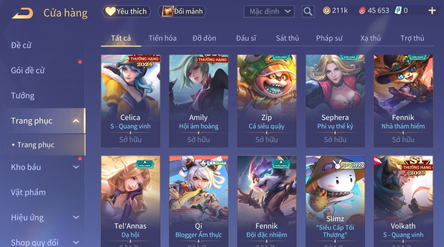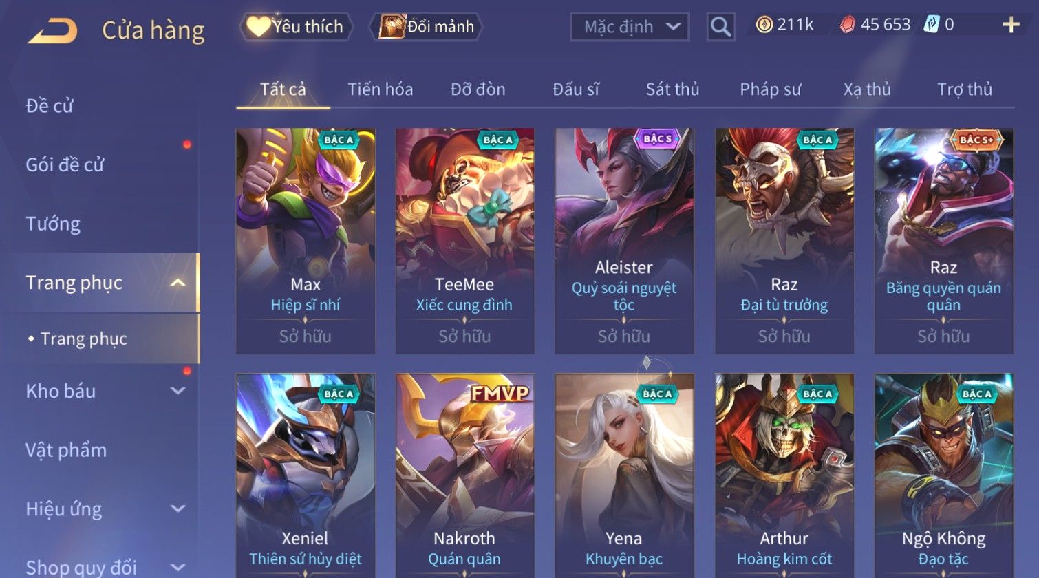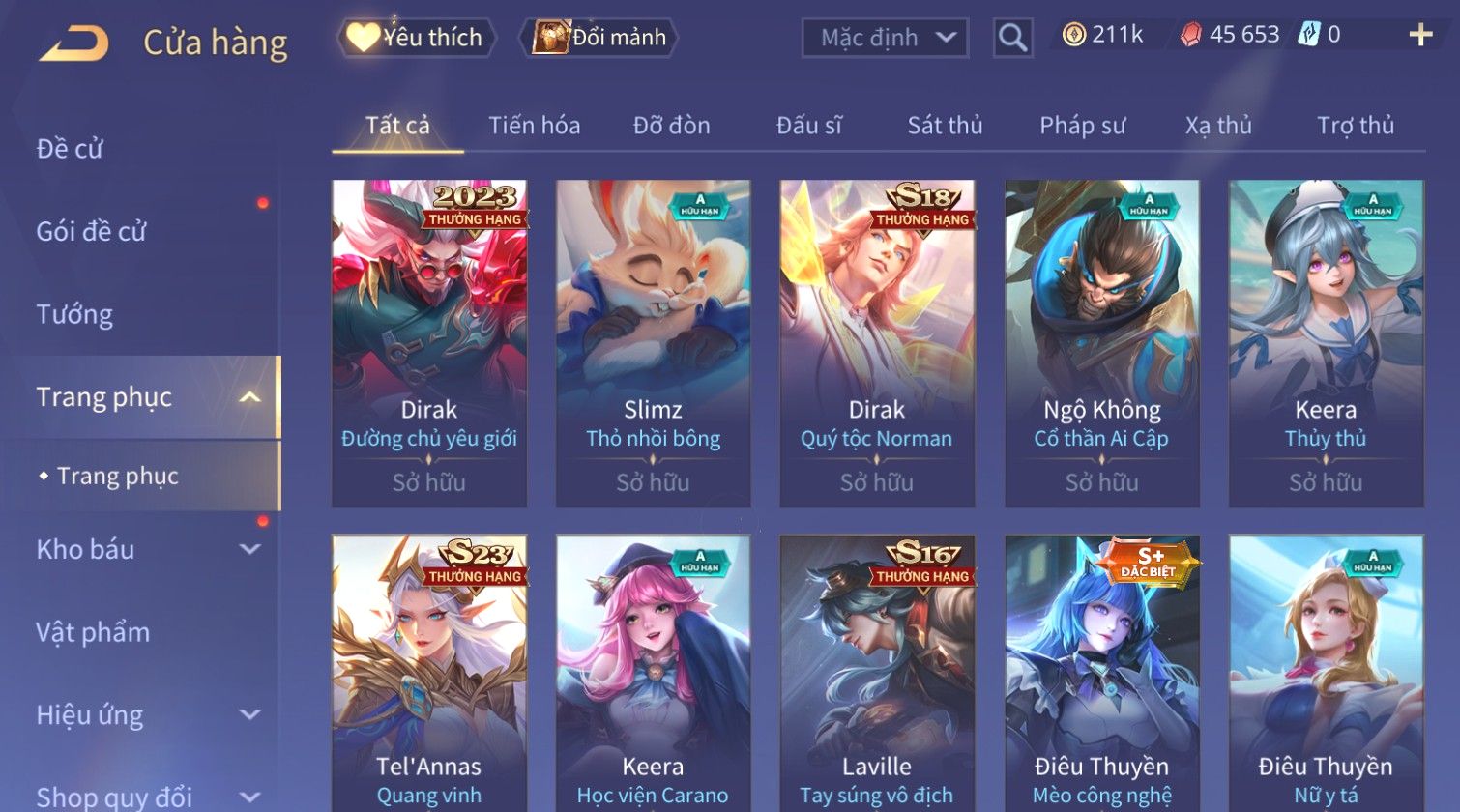 Nổi bật: Skin: Raz Siêu Việt×Ngộ Không Siêu Việt×Quillen Đặc Công Mãng Xà×Tel'Annas Vũ Khúc Yêu Hồ×Richter Thần Kiếm Susanoo×Elsu Trấn Thiên Phi Hồ×Florentino Giám Sát Tinh Hệ×Full Ngọc, Nhiều Skin SS Đẹp