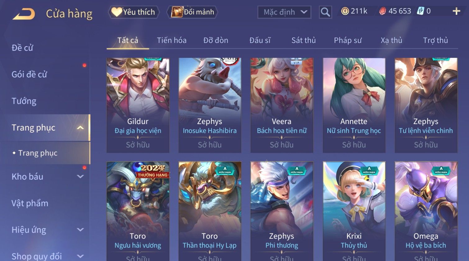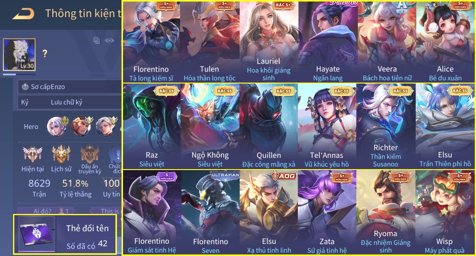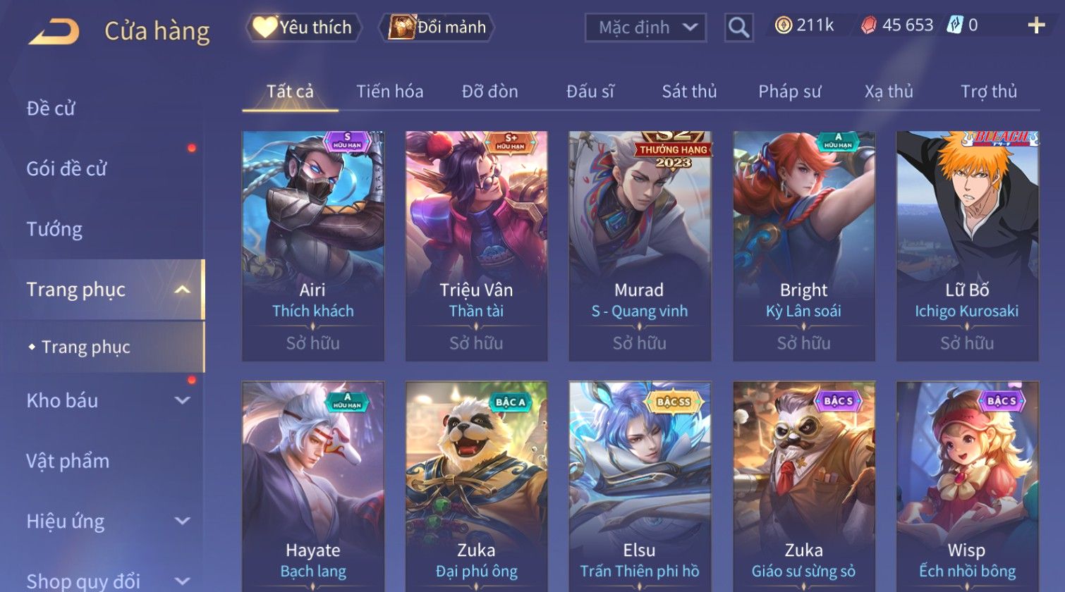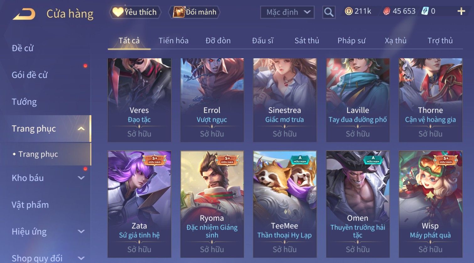 Nổi bật: Skin: Raz Siêu Việt×Ngộ Không Siêu Việt×Quillen Đặc Công Mãng Xà×Tel'Annas Vũ Khúc Yêu Hồ×Richter Thần Kiếm Susanoo×Elsu Trấn Thiên Phi Hồ×Florentino Giám Sát Tinh Hệ×Full Ngọc, Nhiều Skin SS Đẹp