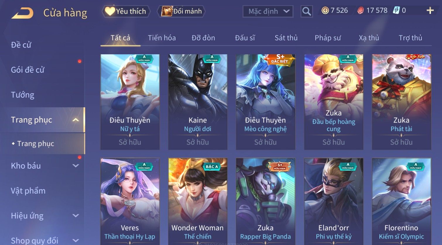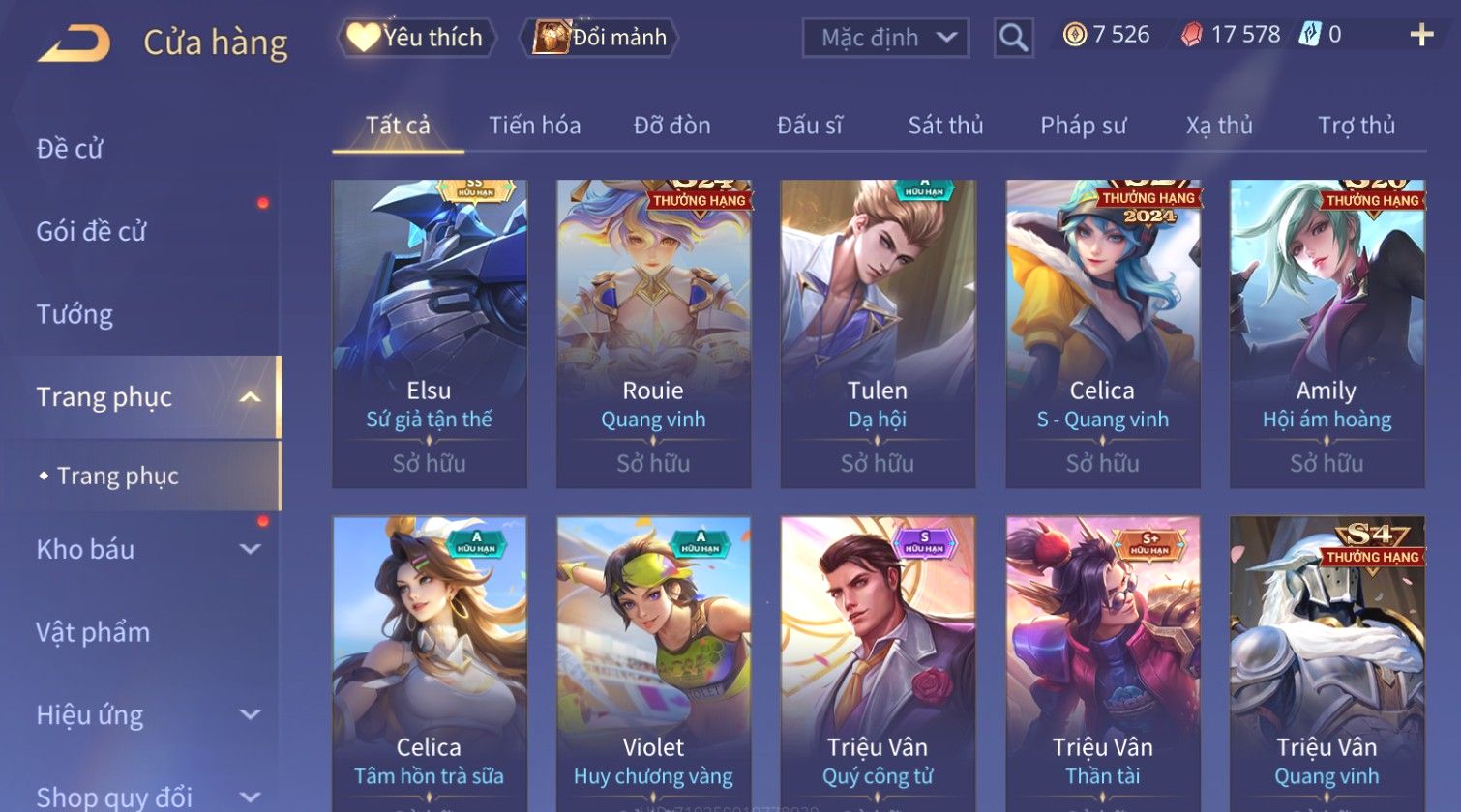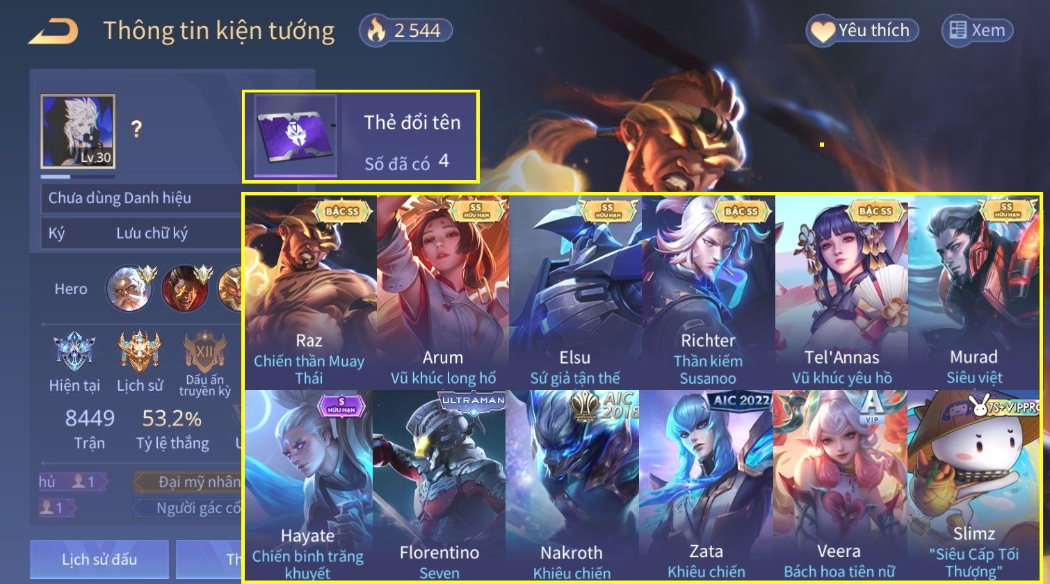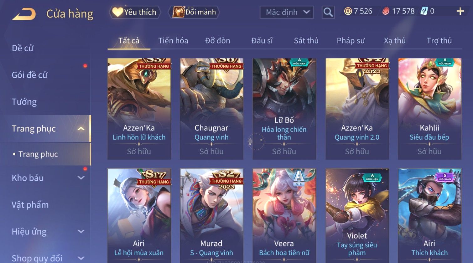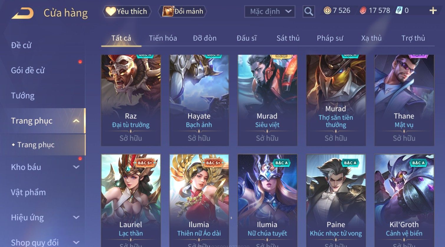Nổi bật: Skin: Raz Chiến Thần Muay Thái×Tel'Annas Vũ Khúc Yêu Hồ×Arum Vũ Khúc Long Hổ×Elsu Sử Giả Tận Thế×Richter Thần Kiếm Susanoo×Murad Siêu Việt×Full Ngọc, Nhiều Skin SS Đẹp
