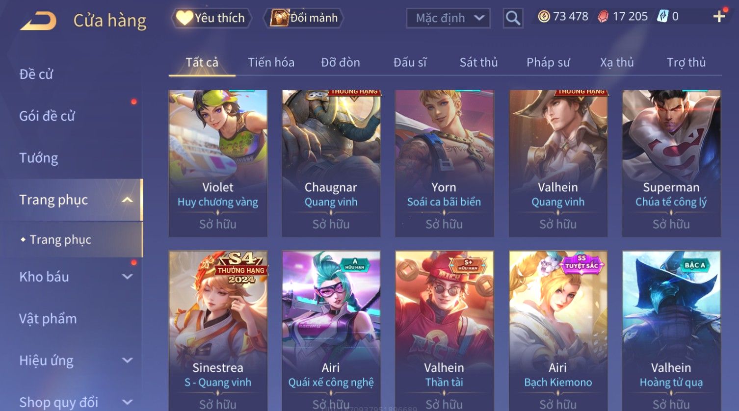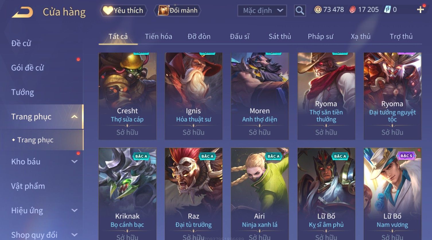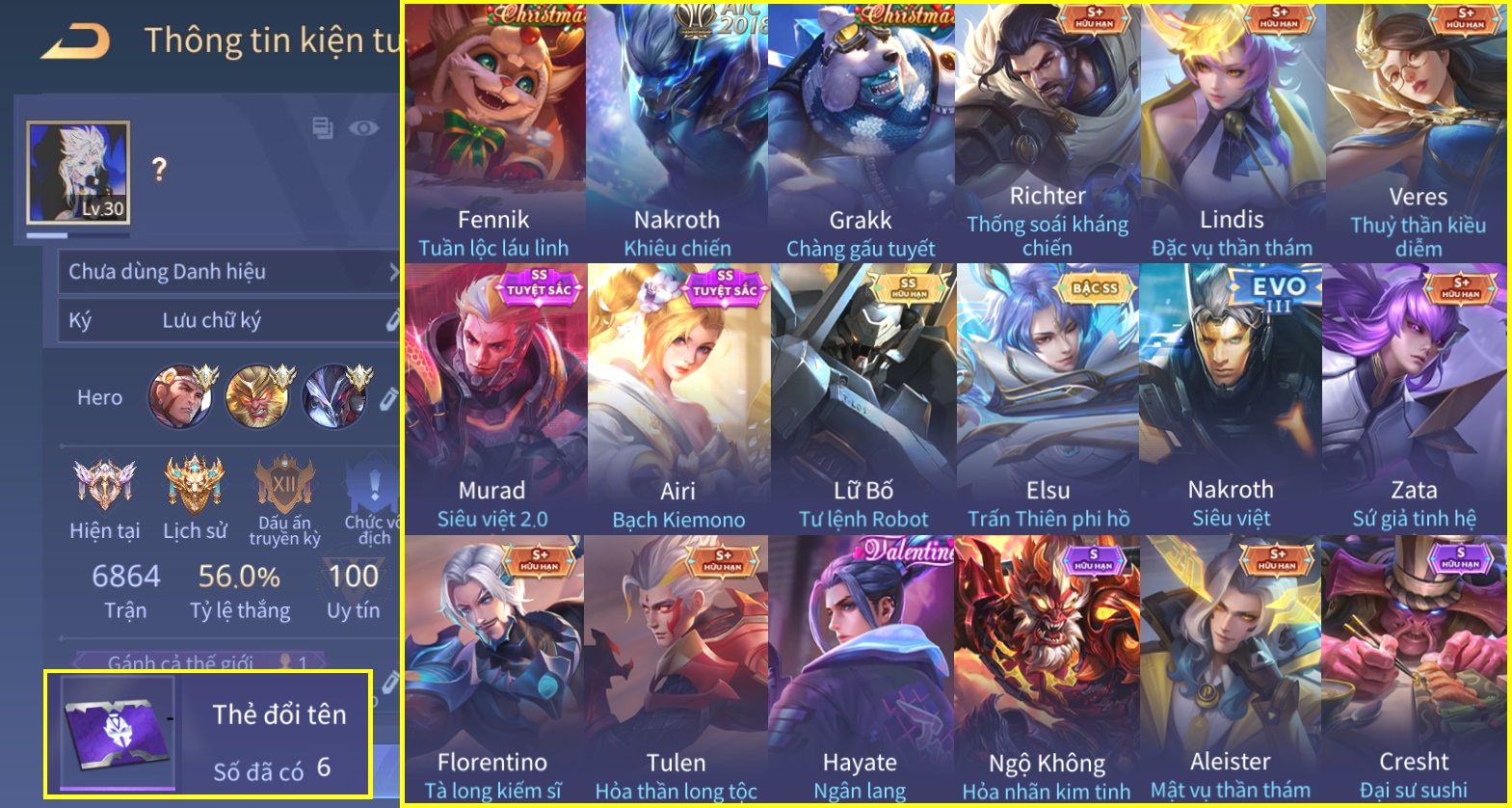 Nổi bật: Skin: Murad Siêu Việt 2.0×Airi Bạch Kiemono×Lữ Bố Tư Lệnh Robot×Elsu Trấn Thiên Phi Hồ×Nakroth Siêu Việt×Zata Sứ Giả Tinh Hệ×Cresht Đại Sư Sushi×Grakk Chàng Gấu Tuyết×Richter Thống Soái Kháng Chiến×Full Ngọc, Nhiều Skin SS Đẹp