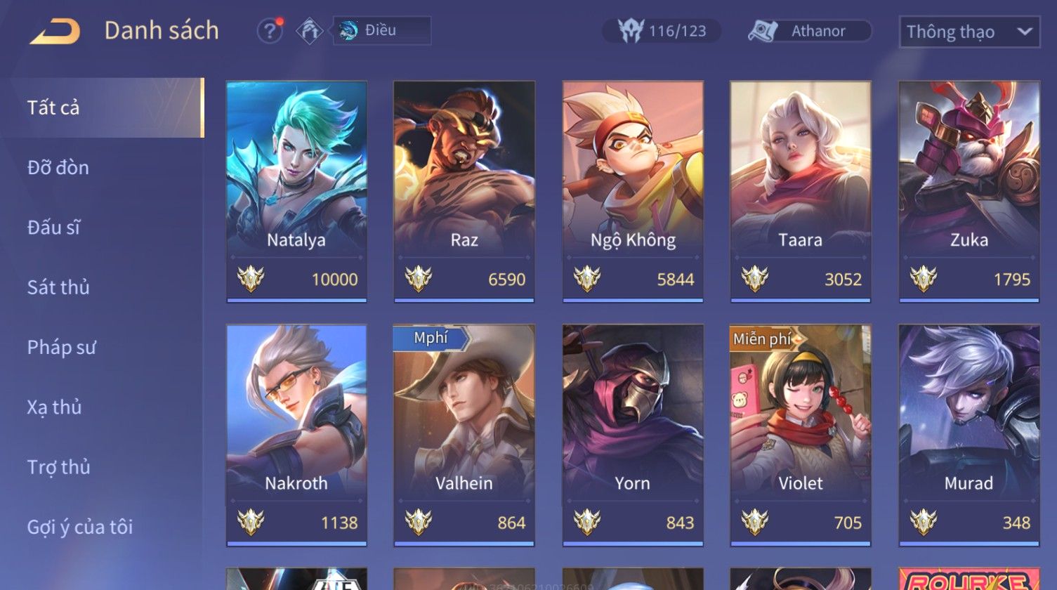Nổi bật: Skin: Raz Chiến Thần Muay Thái×Maloch Đại Tướng Rô Bốt×Valhein Vũ Khí Tối Thượng×Omen Đao Phủ Tận Thế×Murad Đặc Dị×Quillen Thống Soái Đế Chế×Full Ngọc, Nhiều Skin SS Đẹp
