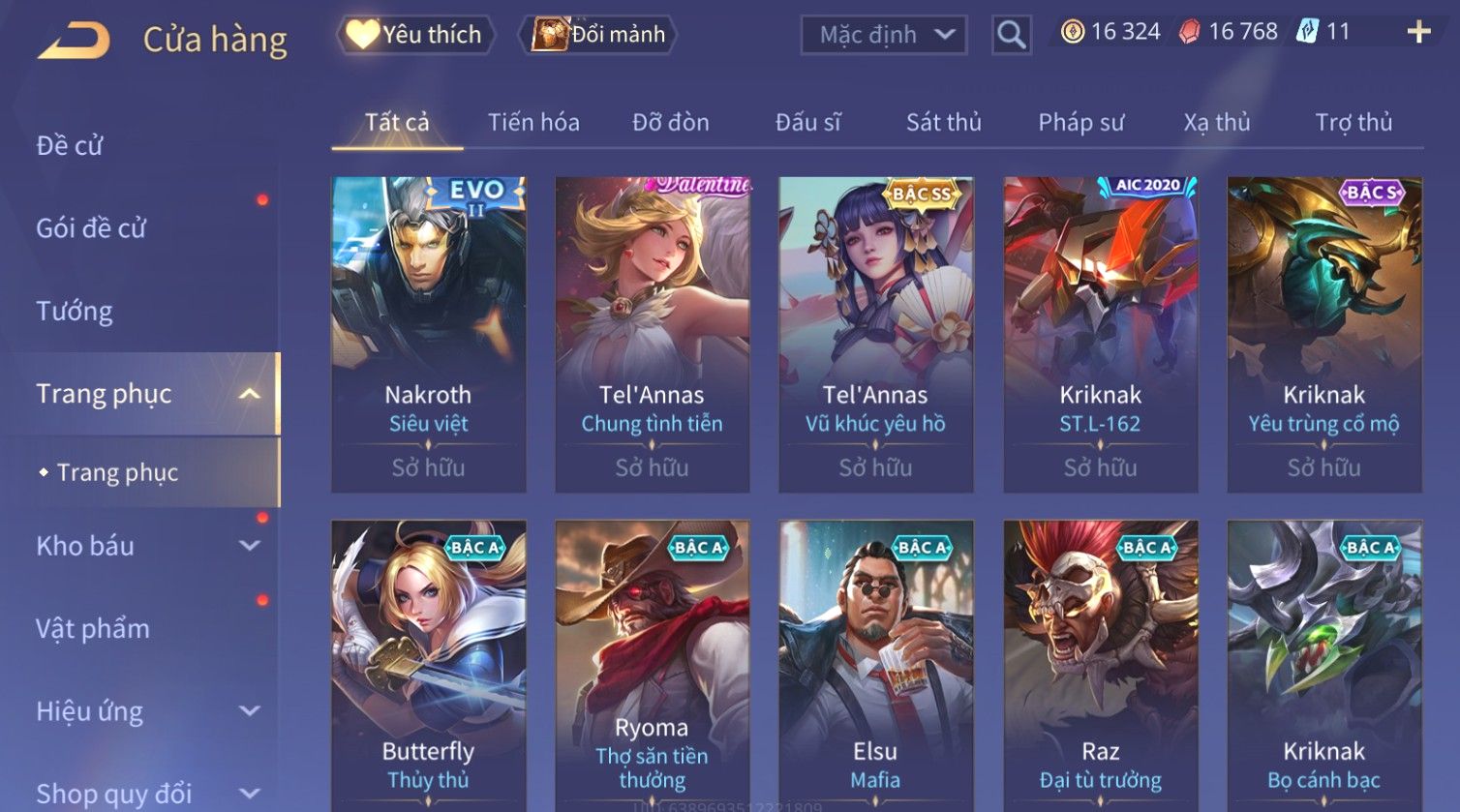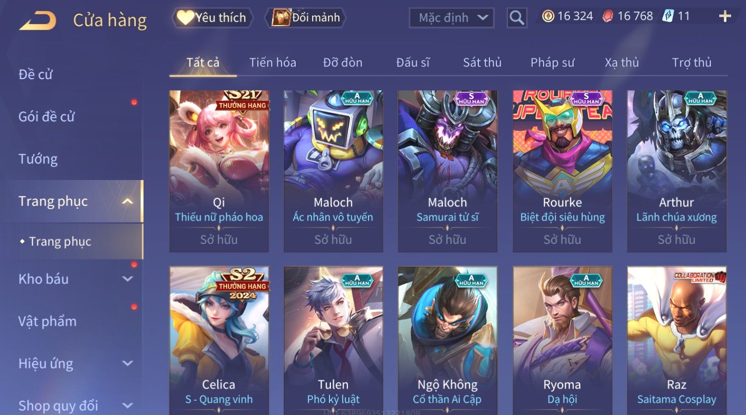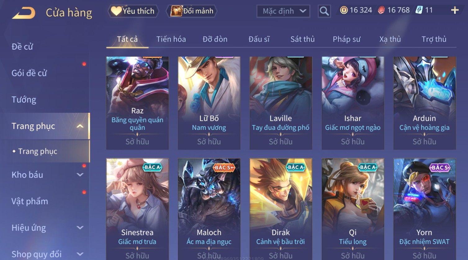 Nổi bật: Full Ngọc, Nhiều Skin SS Đẹp