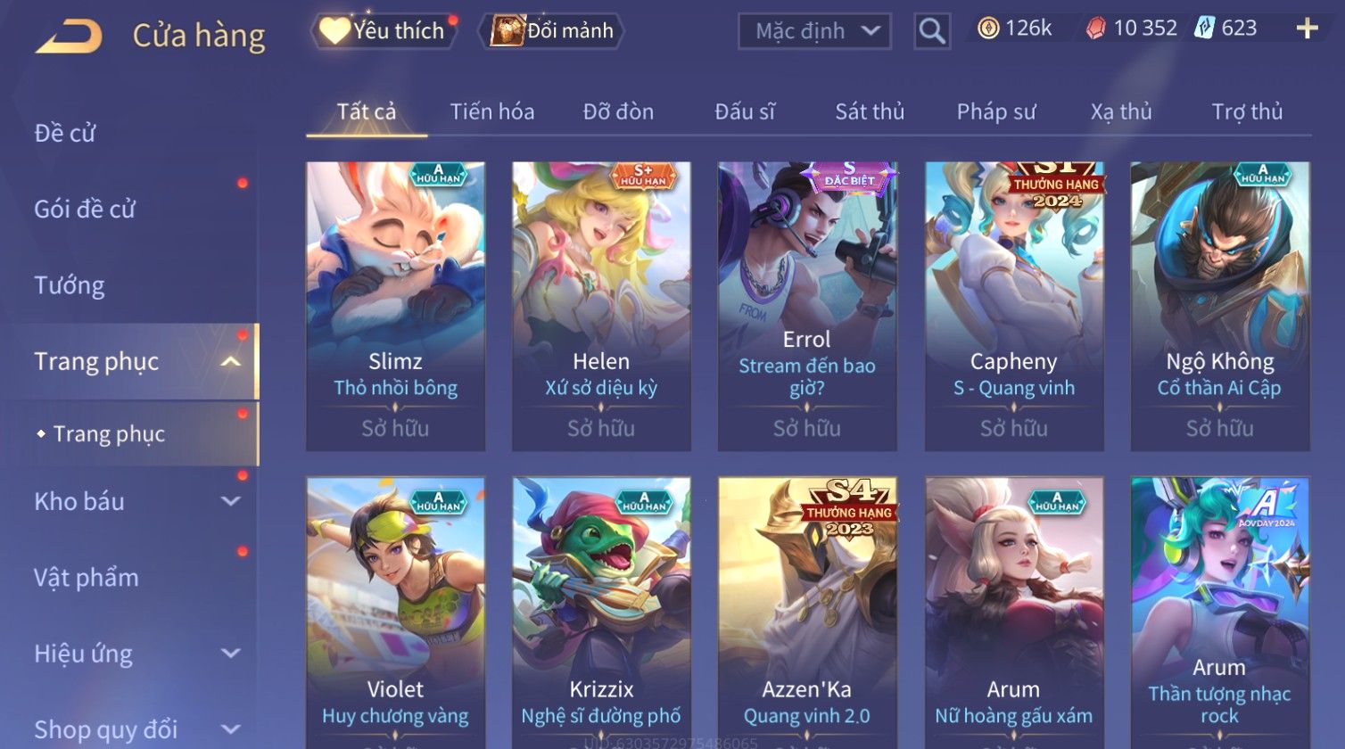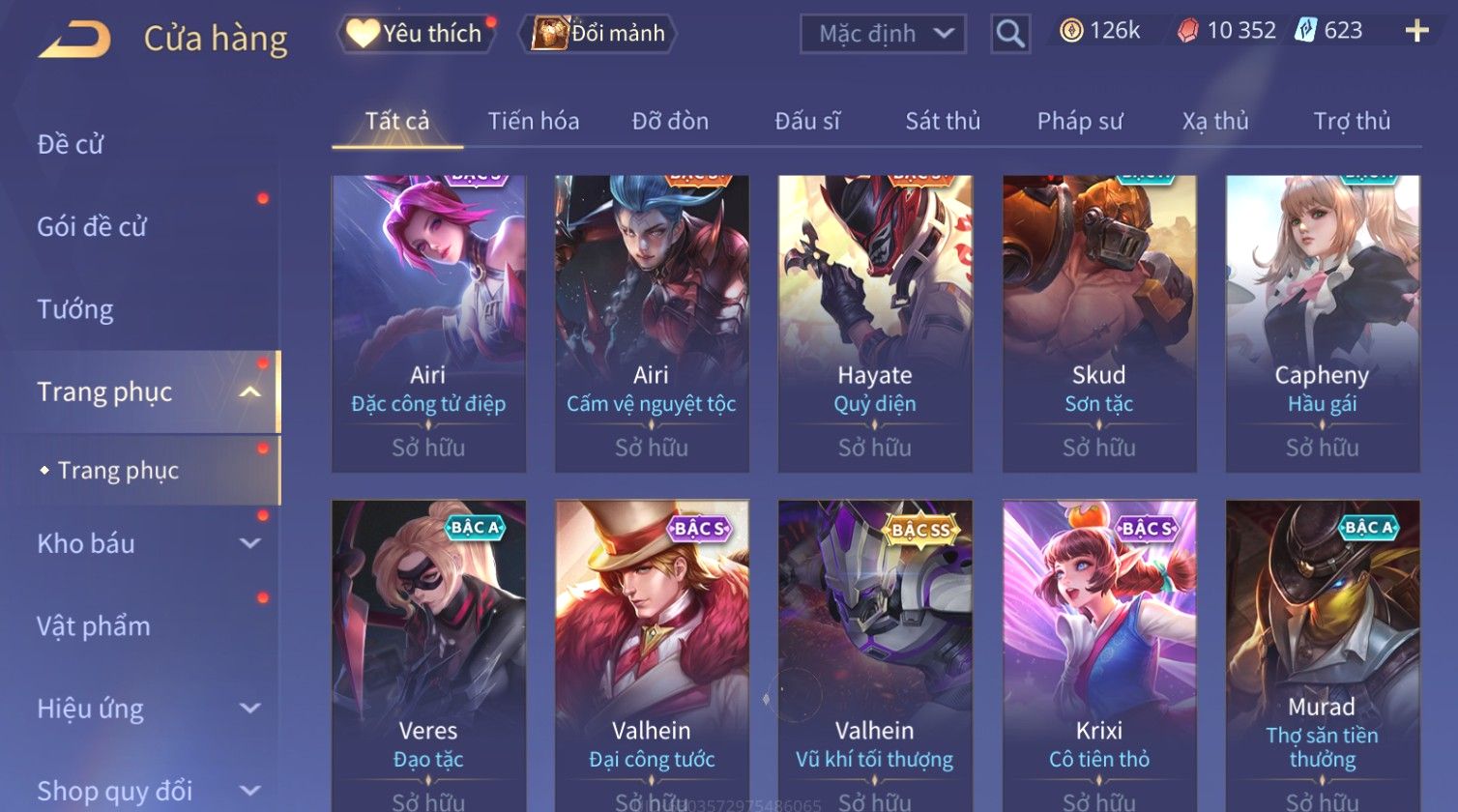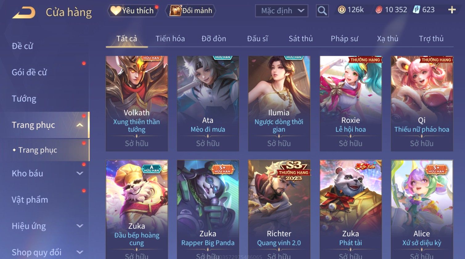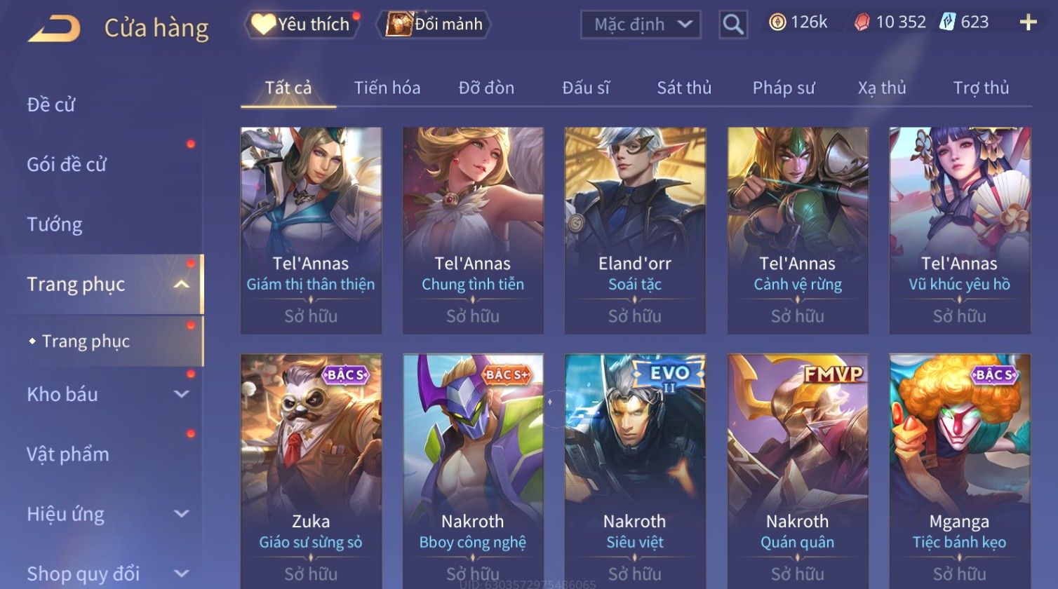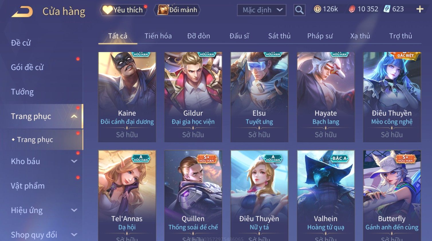 Nổi bật: Skin: Helen Bé hoa xuân×Valhein Vũ Khí Tối Thượng×Omen Đao Phủ Tận Thế×Tel'Annas Vũ Khúc Yêu Hồ×Elsu Guitar Tình Ái×Aya Mc Sóc Nhỏ×Murad Thích Khách Sa Mạc×Grakk Đi Vào Lòng Đất×Quillen Thống Soái Đế Chế×