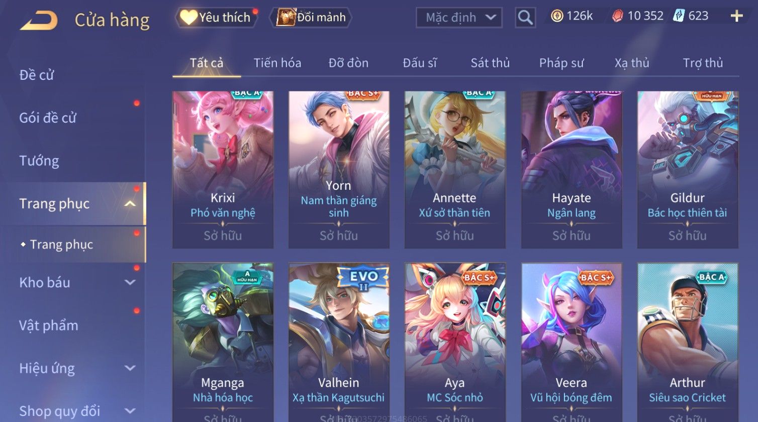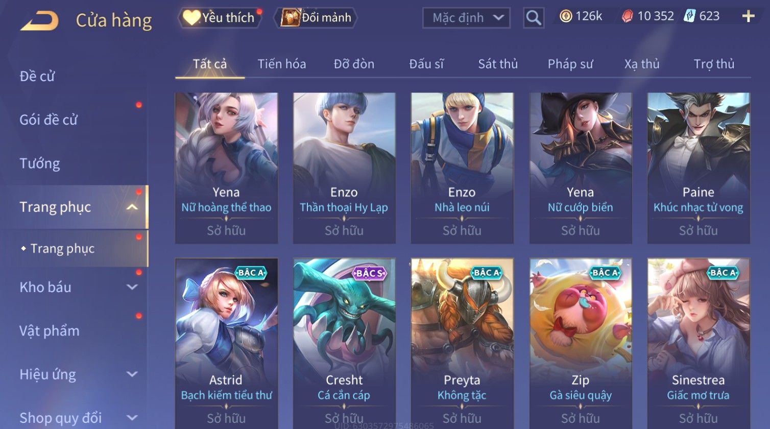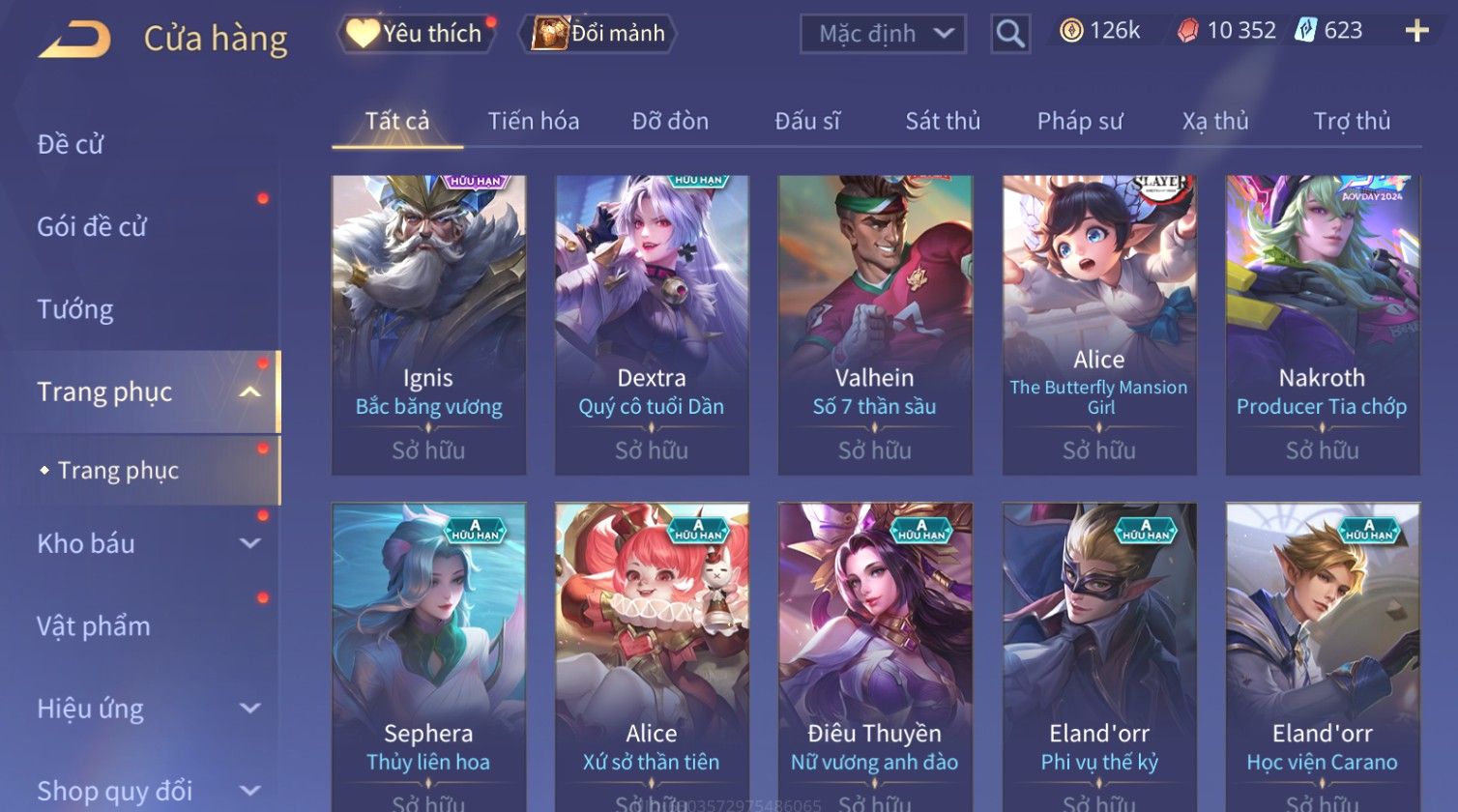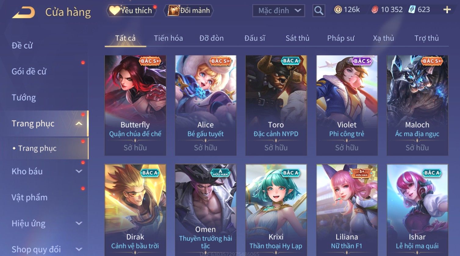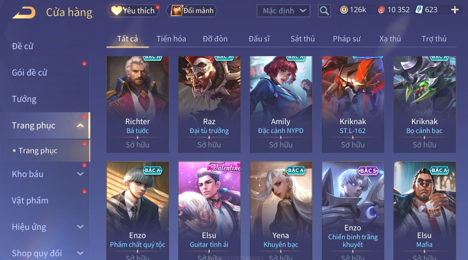 Nổi bật: Skin: Helen Bé hoa xuân×Valhein Vũ Khí Tối Thượng×Omen Đao Phủ Tận Thế×Tel'Annas Vũ Khúc Yêu Hồ×Elsu Guitar Tình Ái×Aya Mc Sóc Nhỏ×Murad Thích Khách Sa Mạc×Grakk Đi Vào Lòng Đất×Quillen Thống Soái Đế Chế×
