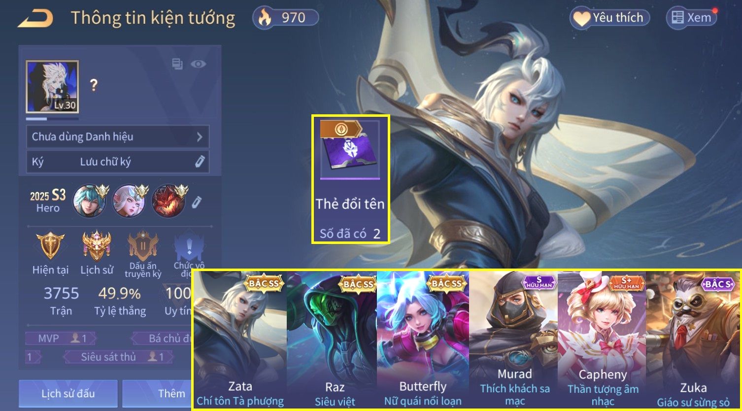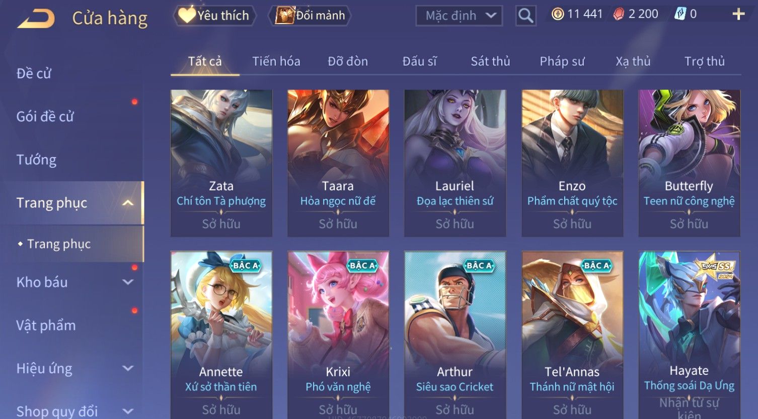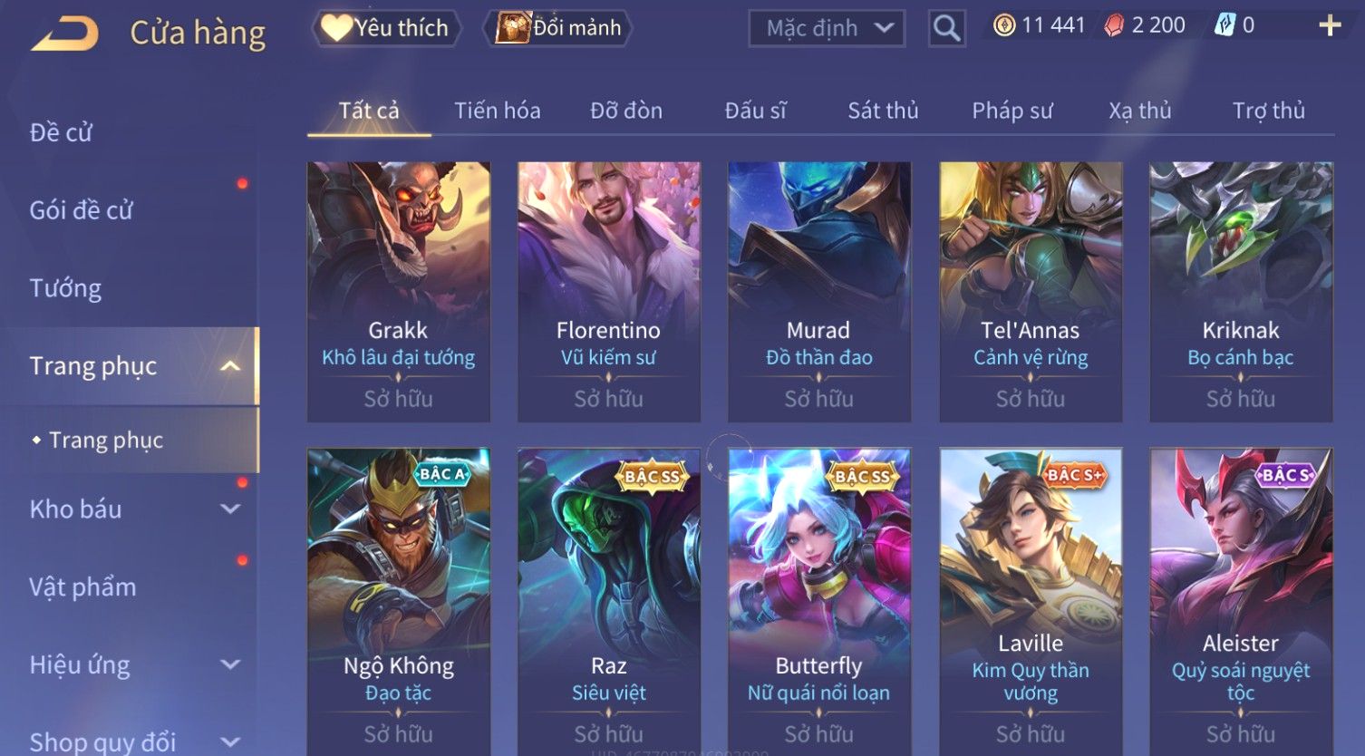 Nổi bật: Skin: Zata Chí Tôn Tà Phượng×Raz Siêu Việt×Butterfly Nữ Quái Nổi Loạn×Murad Thích Khách Sa Mạc×