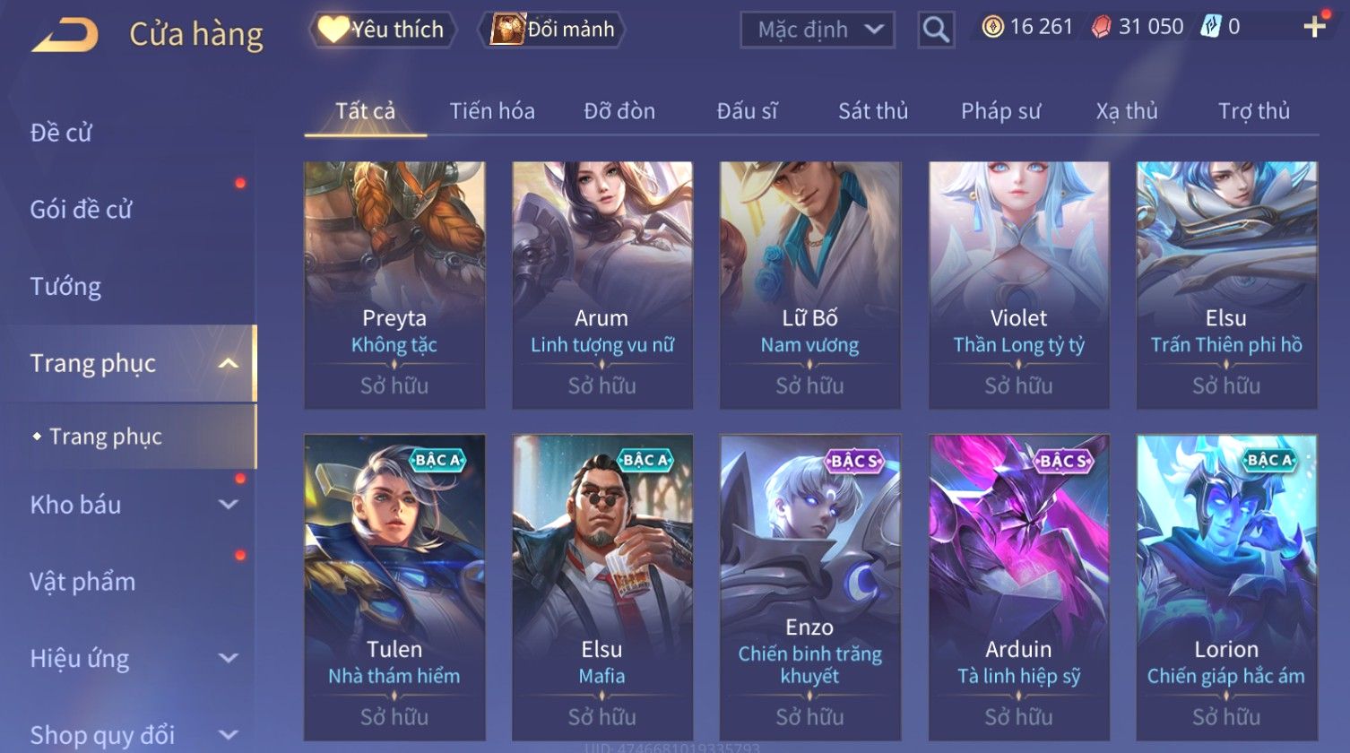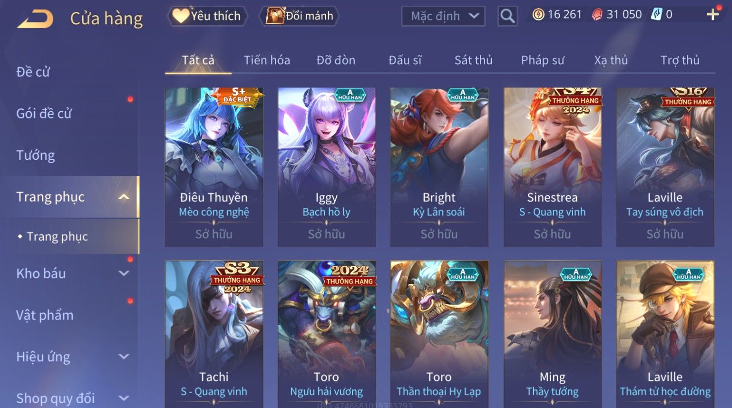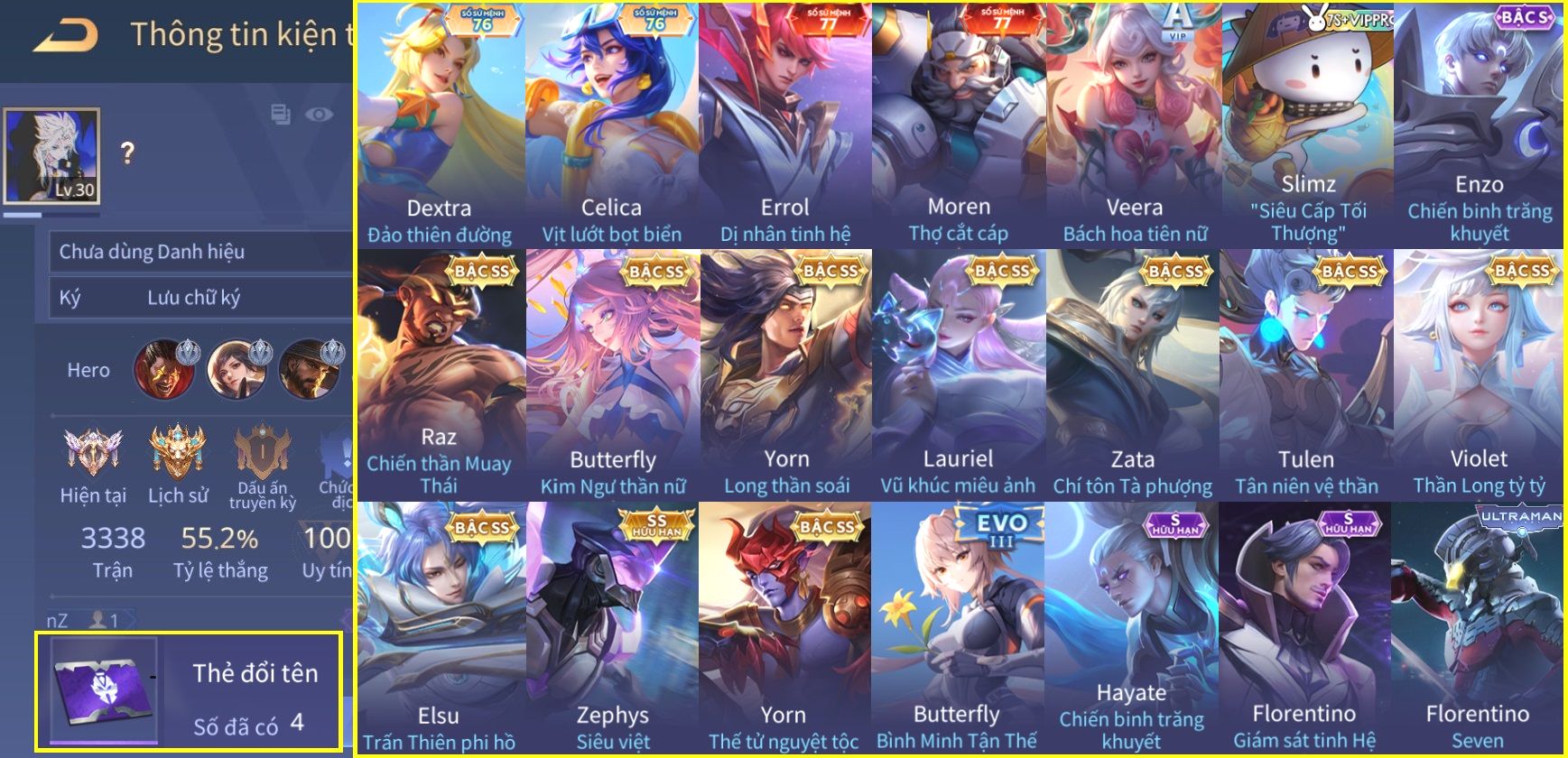 Nổi bật: Skin: Raz Chiến Thần Muay Thái×Butterfly Kim Ngư Thần Nữ×Yorn Long Thần Soái×Zata Chí Tôn Tà Phượng×Tulen Tân Niên Vệ Thần×Violet Thần Long Tỷ Tỷ×Florentino Giám Sát Tinh Hệ×Elsu Trấn Thiên Phi Hồ×Zephys Siêu Việt×Hayate Chiến Binh Trăng Khuyết×