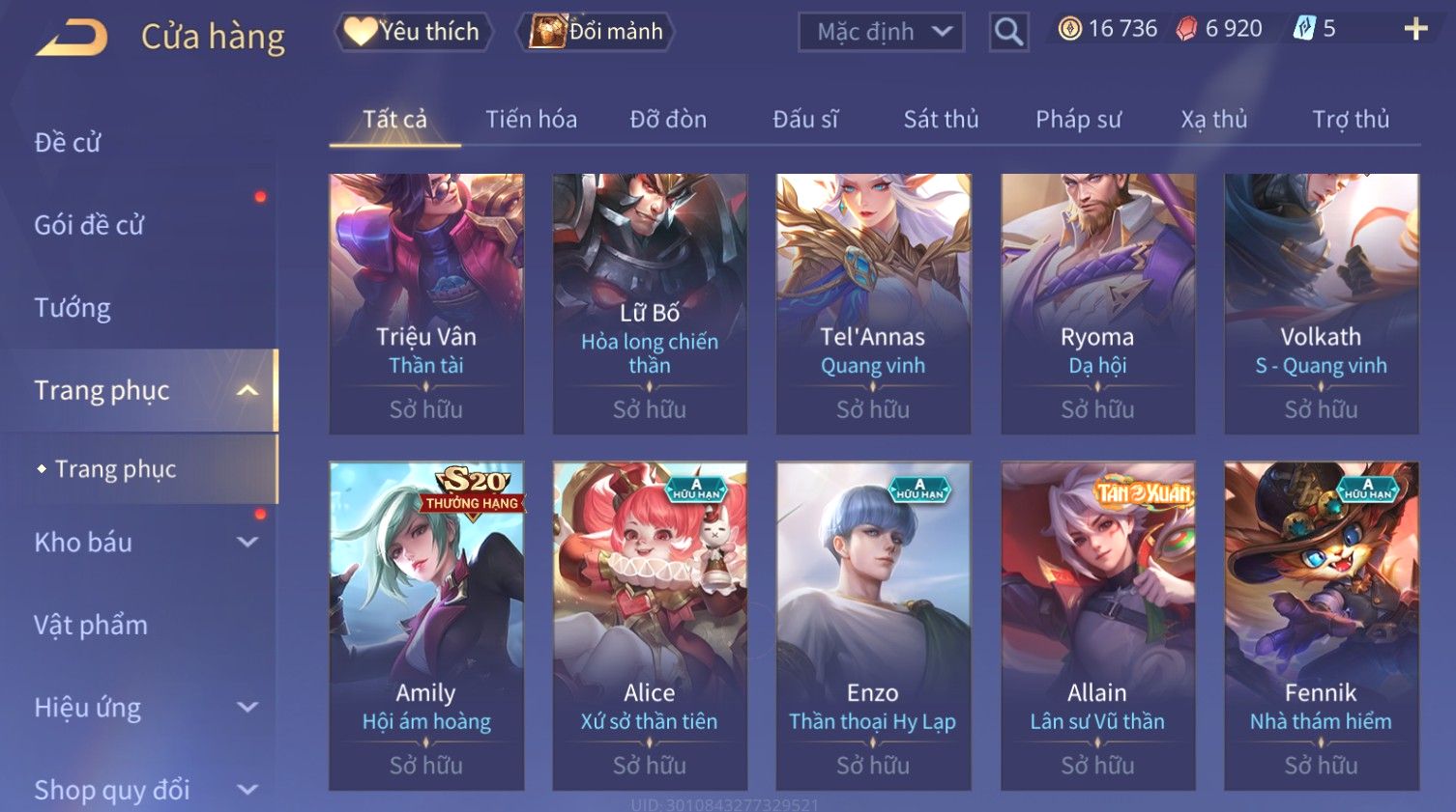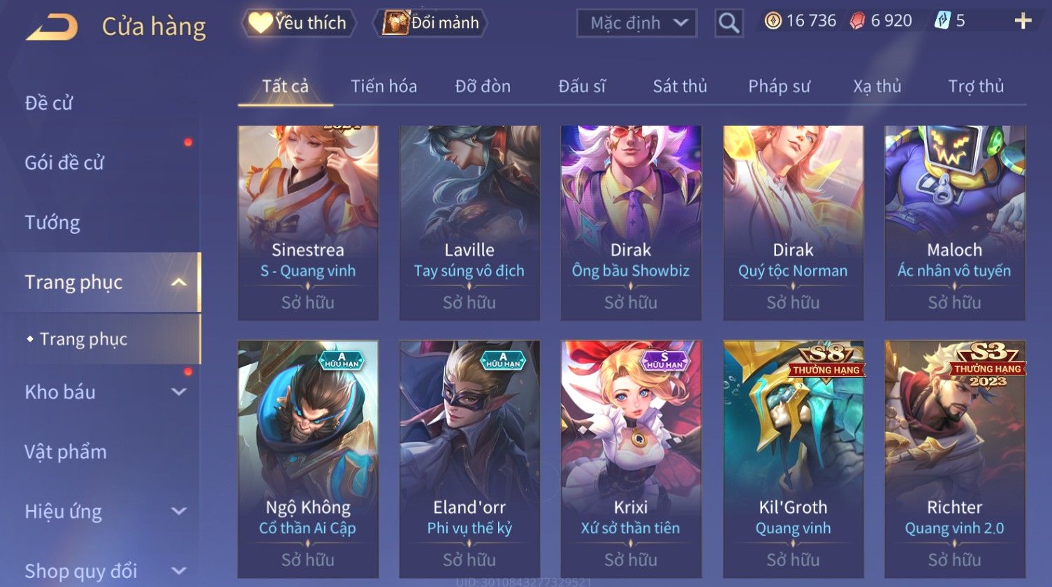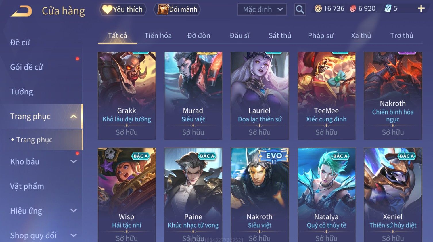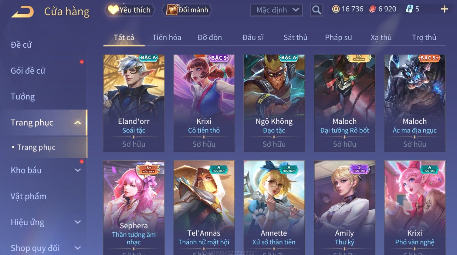Nổi bật: Skin: Yorn Long Thần Soái×Maloch Đại Tướng Rô Bốt×Ngộ Không Siêu Việt×Murad Siêu Việt×Krixi Xứ Sở Thần Tiên×