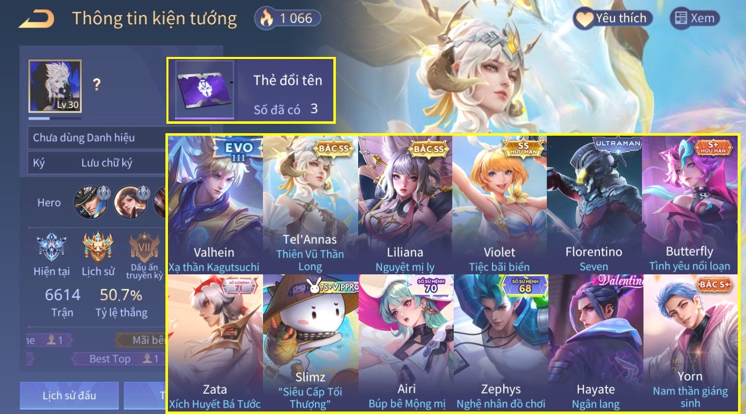 Nổi bật: Skin: Tel'Annas Thiên Vũ Thần Long×Violet Tiệc Bãi Biển×Florentino Seven×Valhein Xạ Thần Kagutsuchi×Full Ngọc, Nhiều Skin SS Đẹp