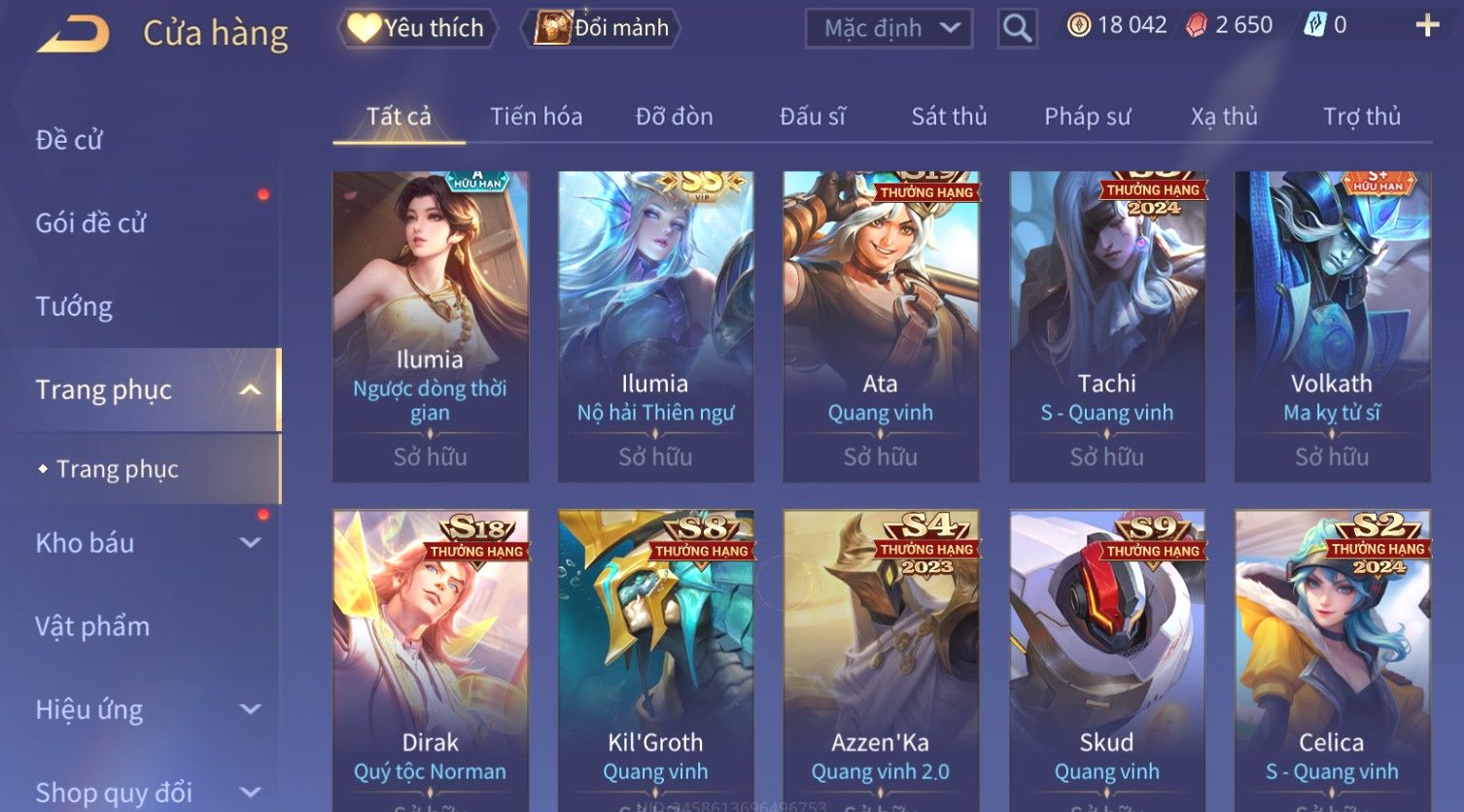 Nổi bật: Skin: Yena WaVe×Elsu Trấn Thiên Phi Hồ×Bijan Hoàng Kim Cơ Giáp×Tulen Tân Niên Vệ Thần×Raz Siêu Việt×Richter Thần Kiếm Susanoo×Capheny Kimono×Zata Sứ Giả Tinh Hệ×Ryoma Thanh Long Bang Chủ×Ilumia Nộ Hải Thiên Ngư×Omen Đao Phủ Tận Thế×Full Ngọc, Nhiều Skin SS Đẹp