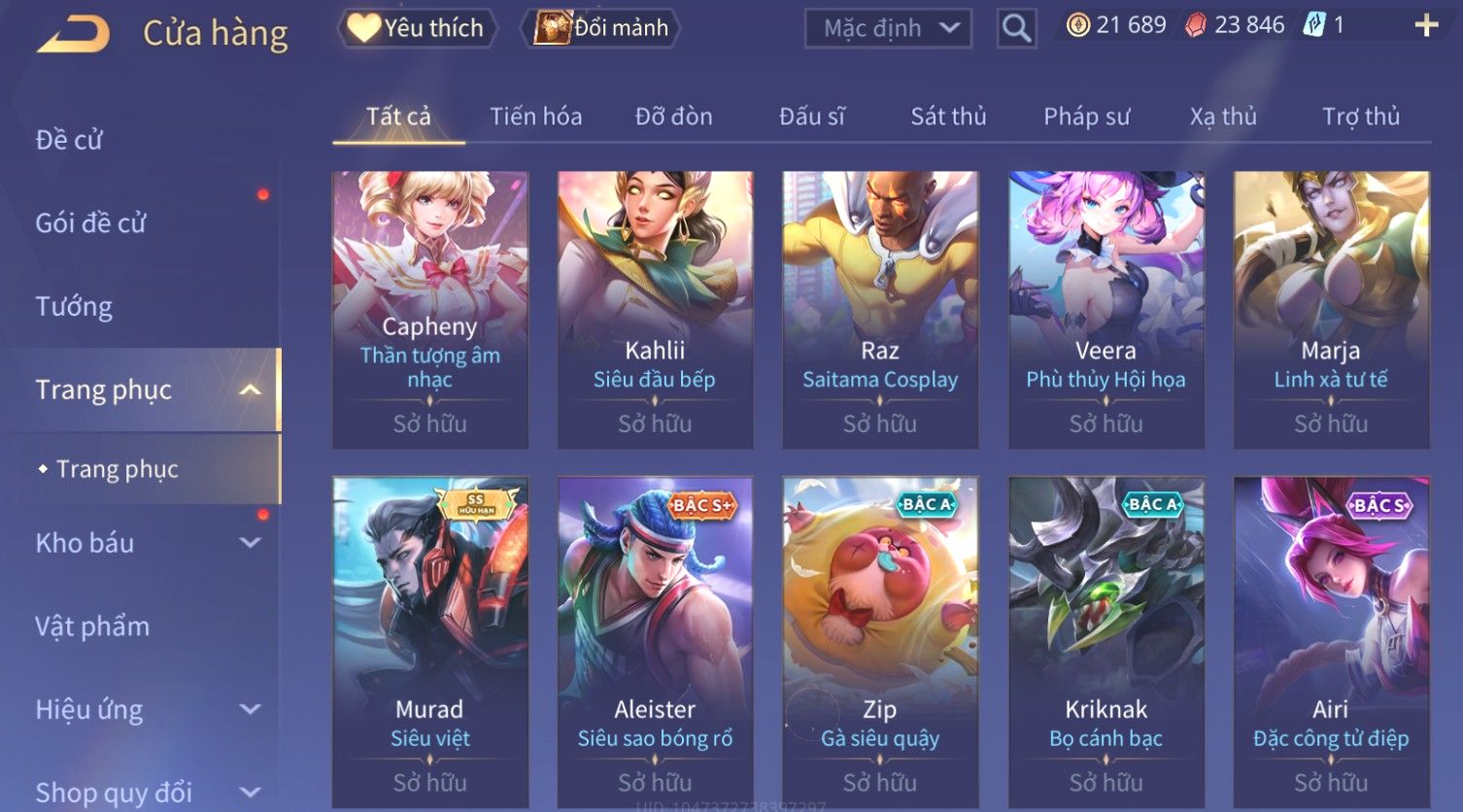 Nổi bật: Skin: Ngộ Không Tân Niên Võ Thần×Laville Xạ thần Tinh Vệ×Charlotte Full Ngọc, Nhiều Skin SS Đẹp