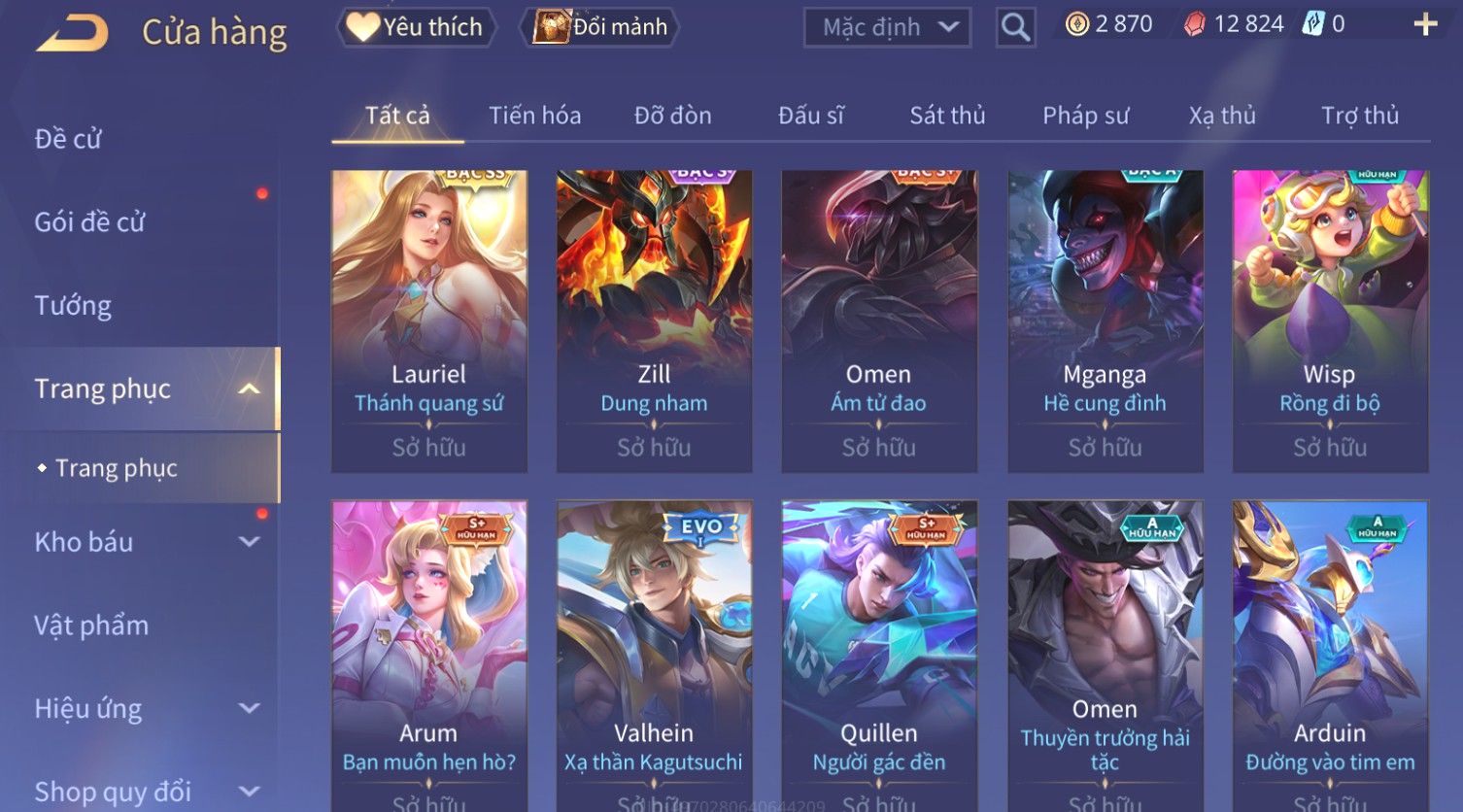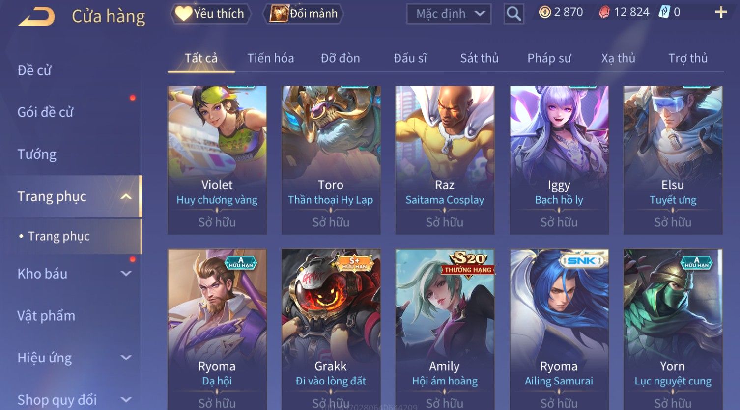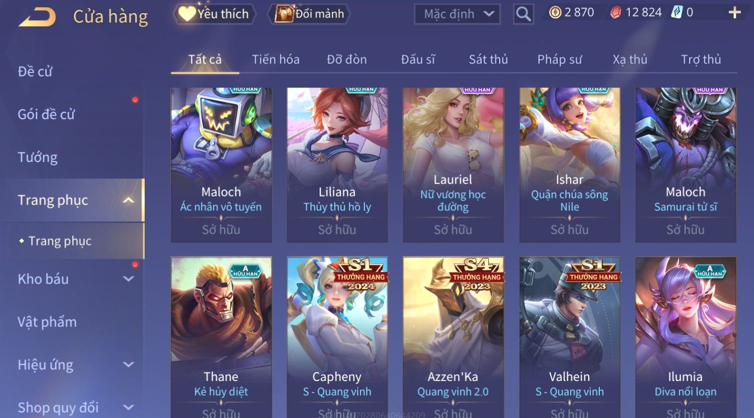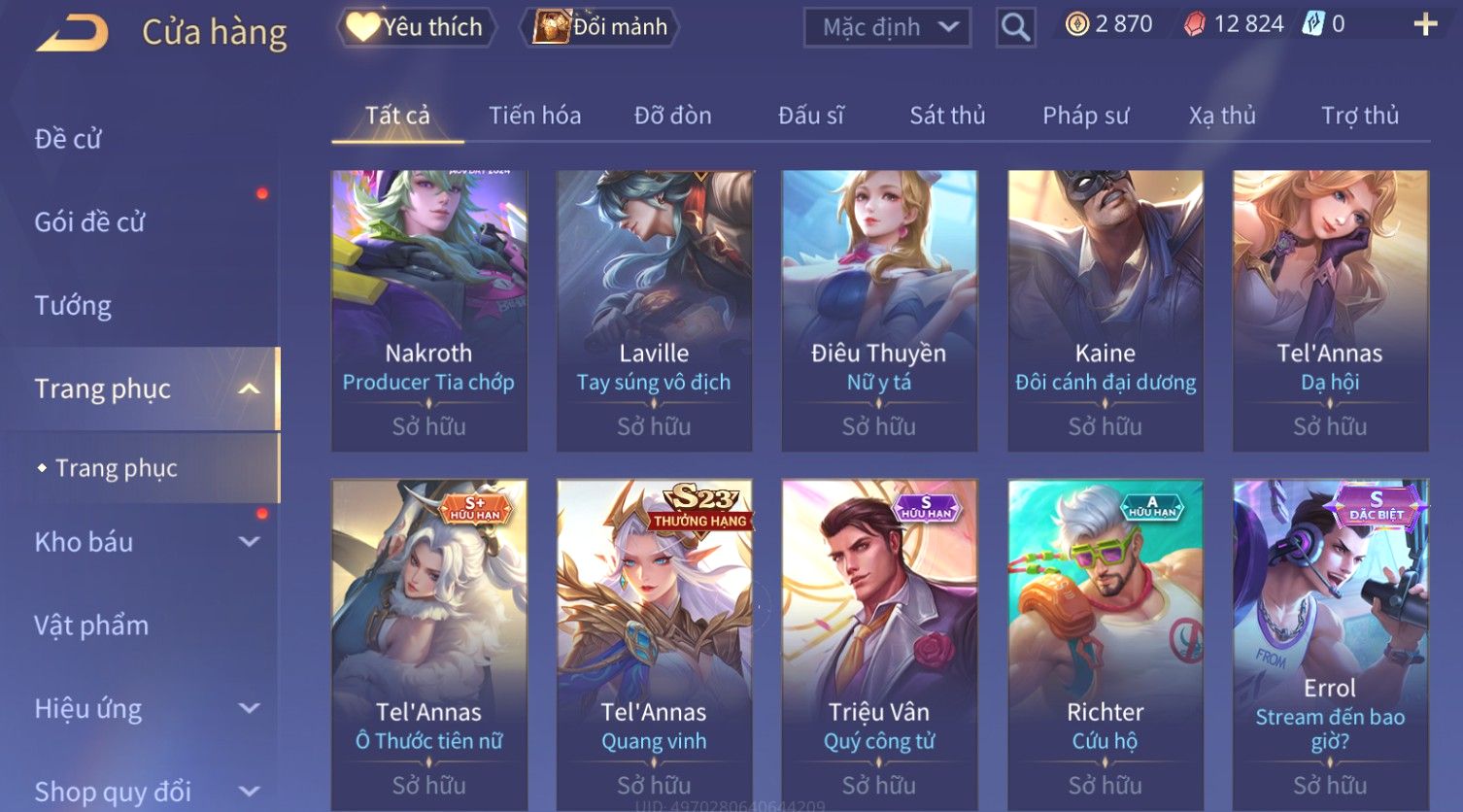 Nổi bật: Skin: Triệu Vân Kỵ Sĩ Tận Thế×Lauriel Thánh Quang Sứ×Airi Kiemono×Grakk Đi Vào Lòng Đất×Aya Mc Sóc Nhỏ×Full Ngọc, Nhiều Skin SS Đẹp