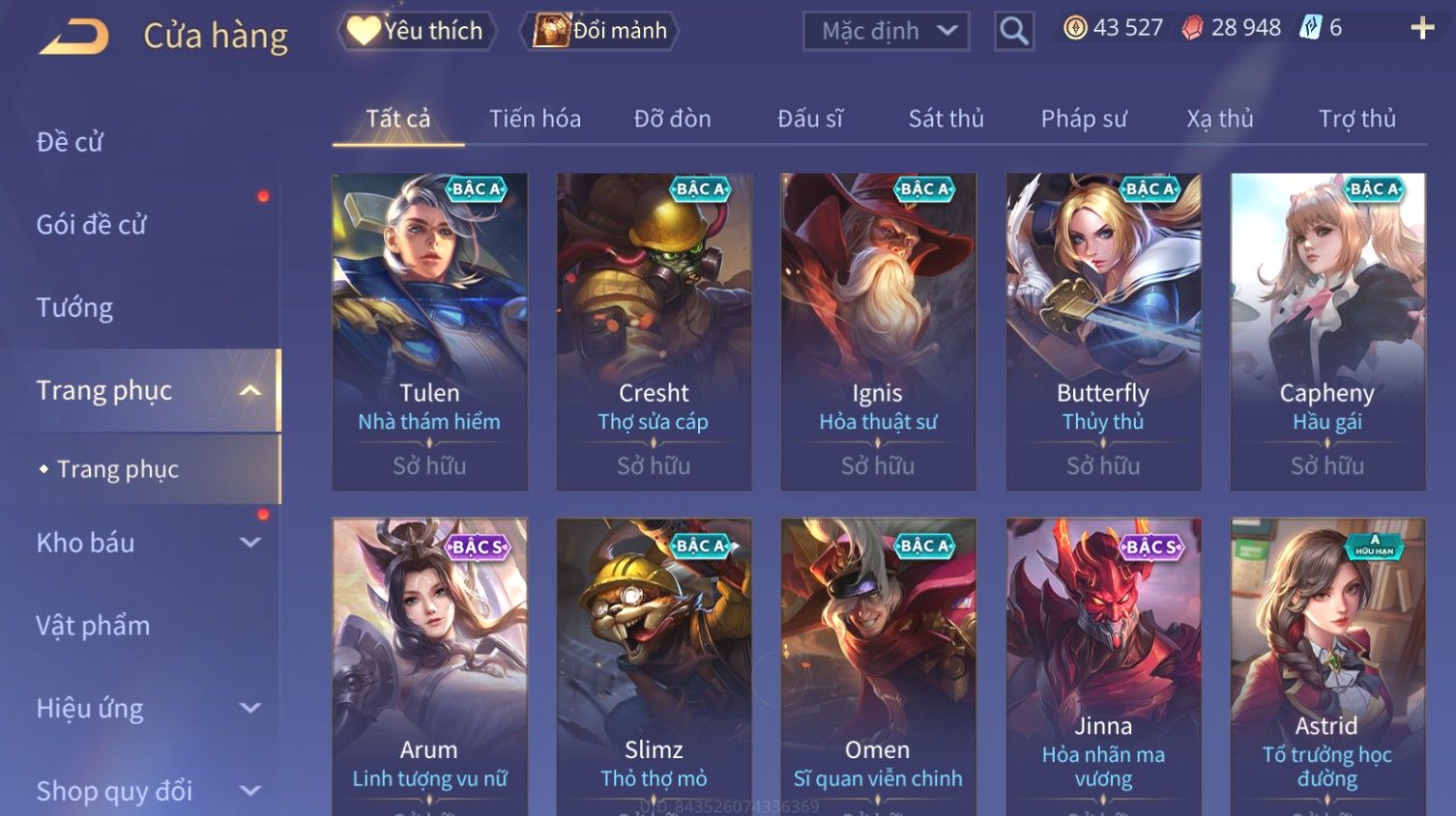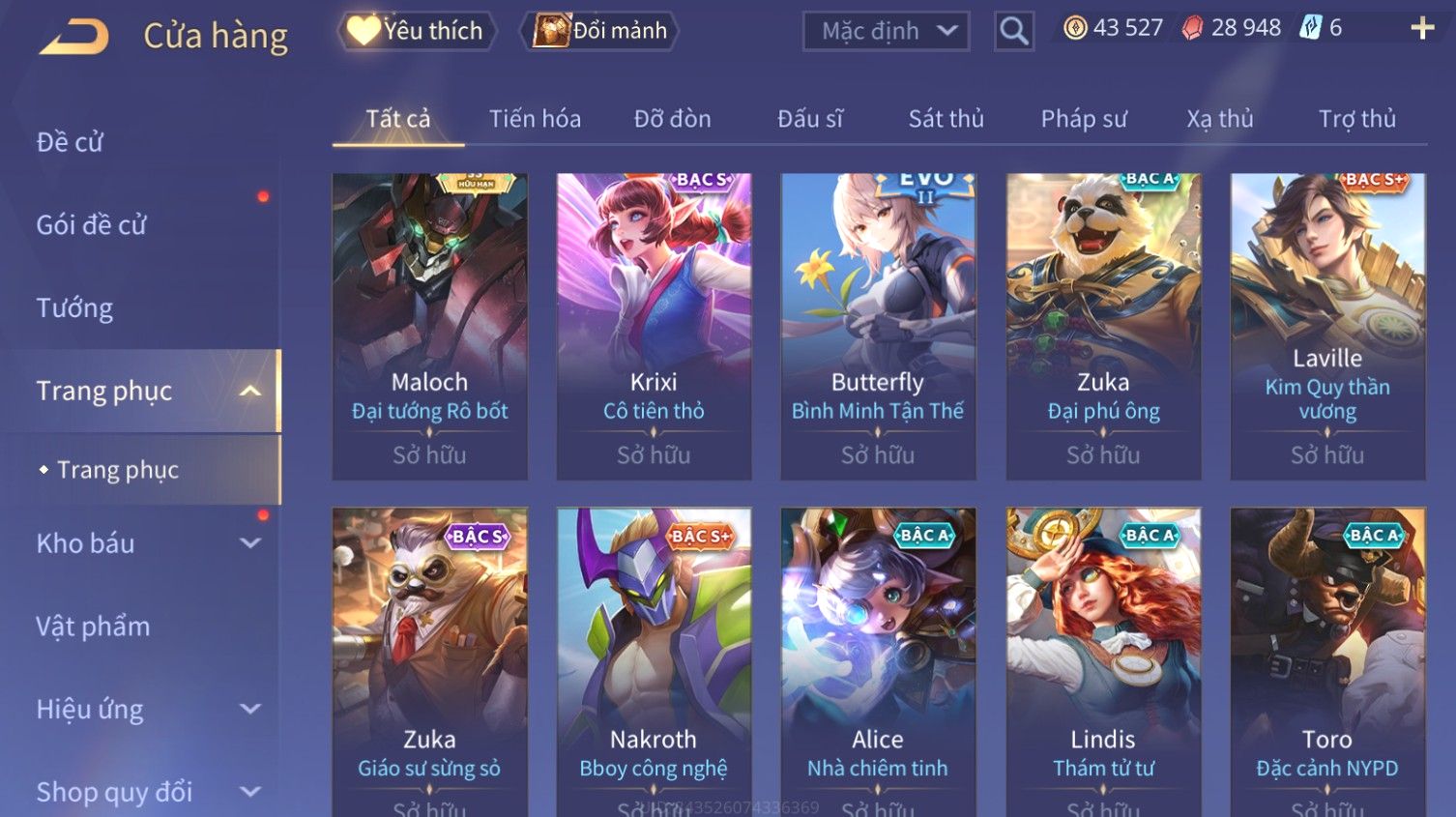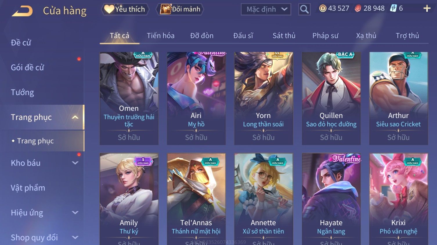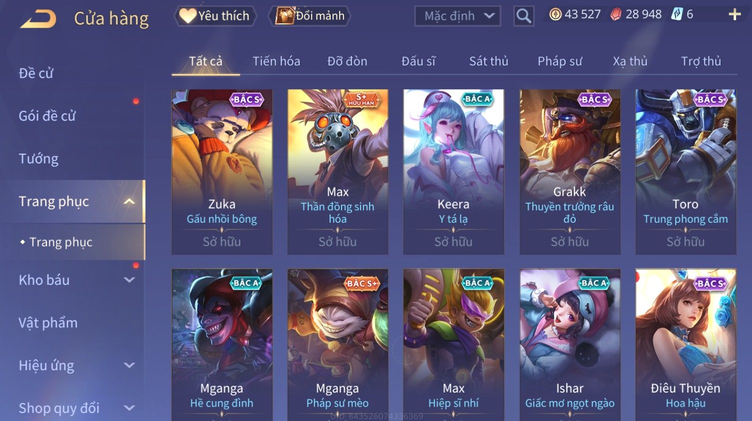 Nổi bật: Skin: Liliana Tân Nguyệt Mị Ly×Raz Chiến Thần Muay Thái×Yorn Long Thần Soái×Maloch Đại Tướng Nguyệt Tộc×Florentino Seven×Full Ngọc, Nhiều Skin SS Đẹp