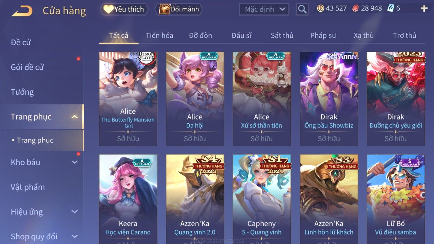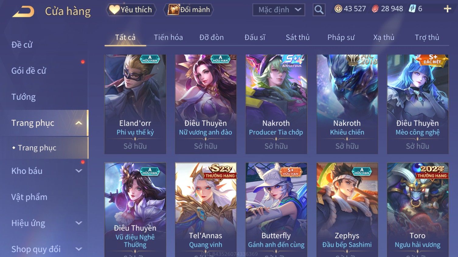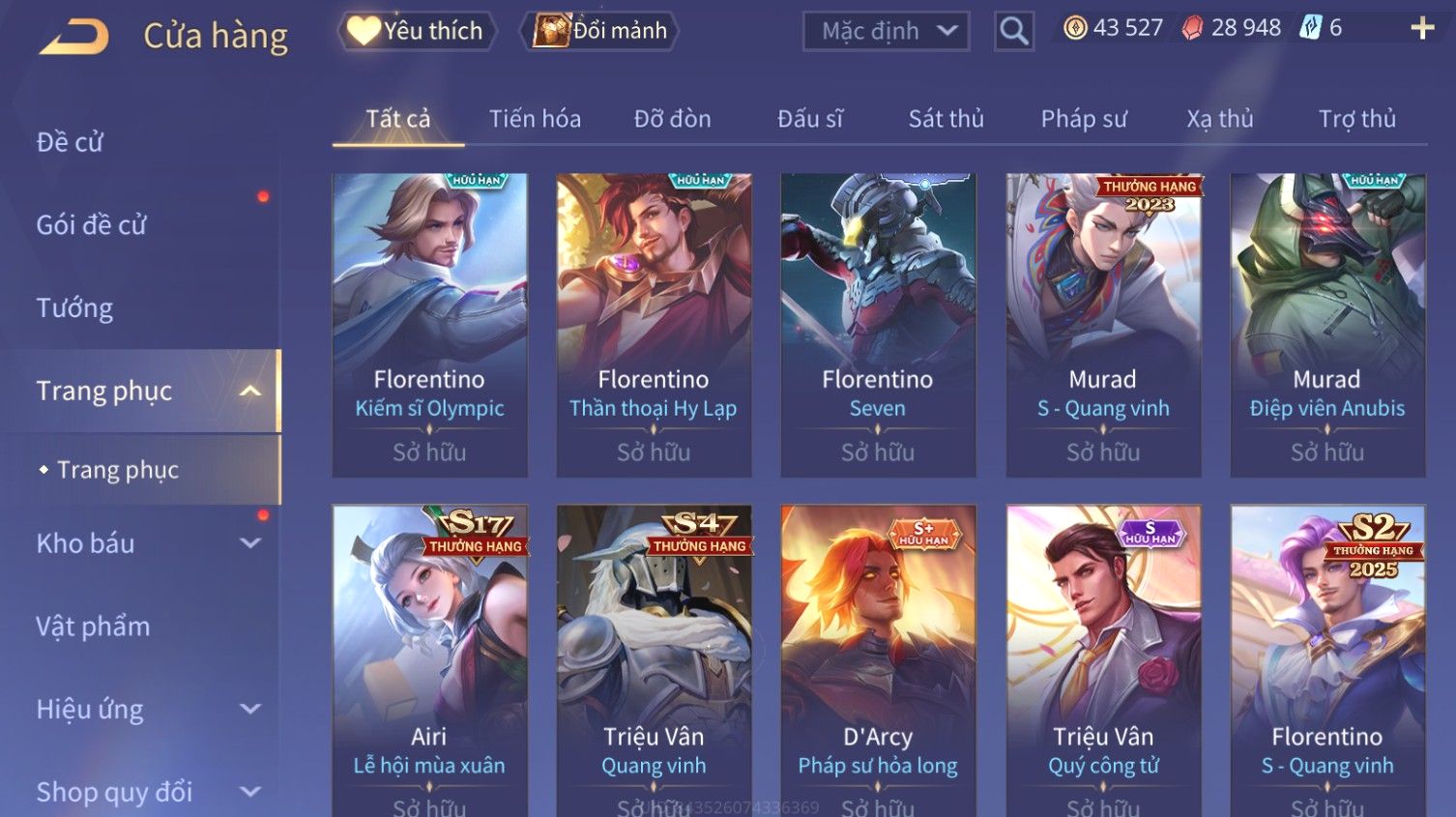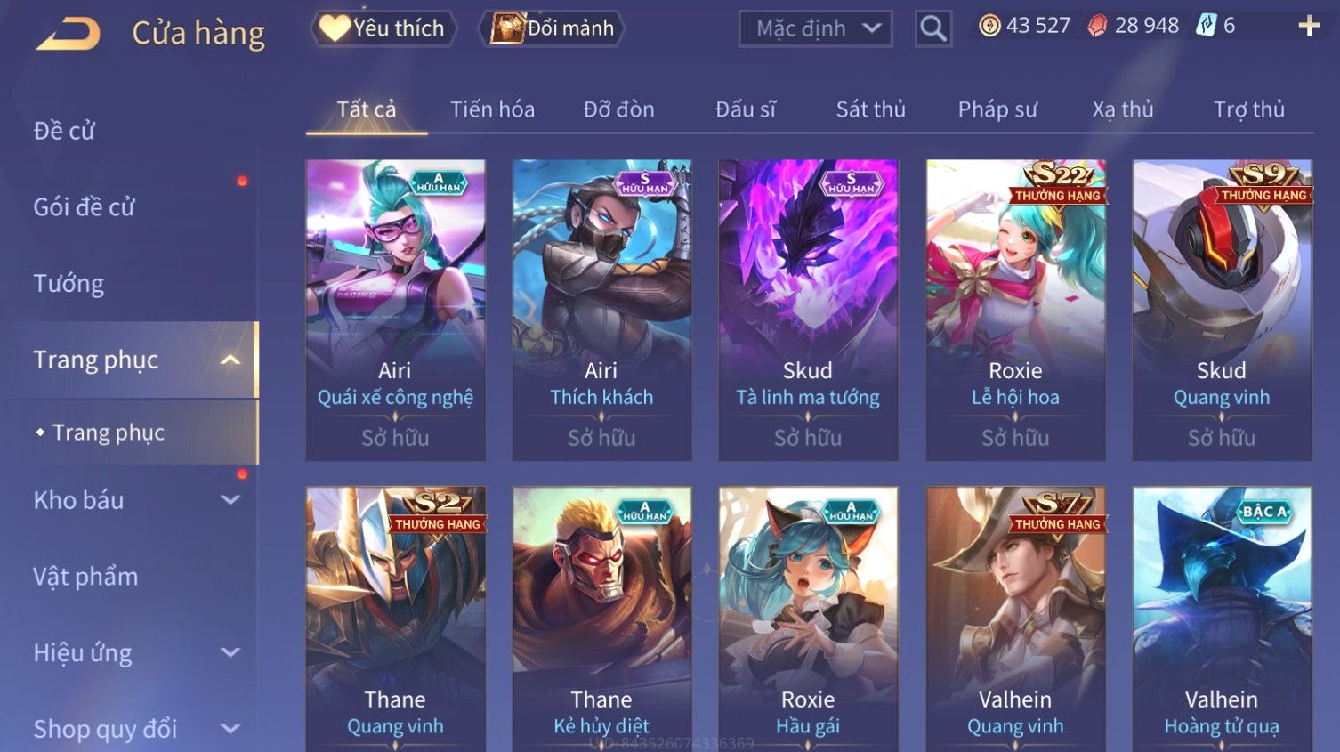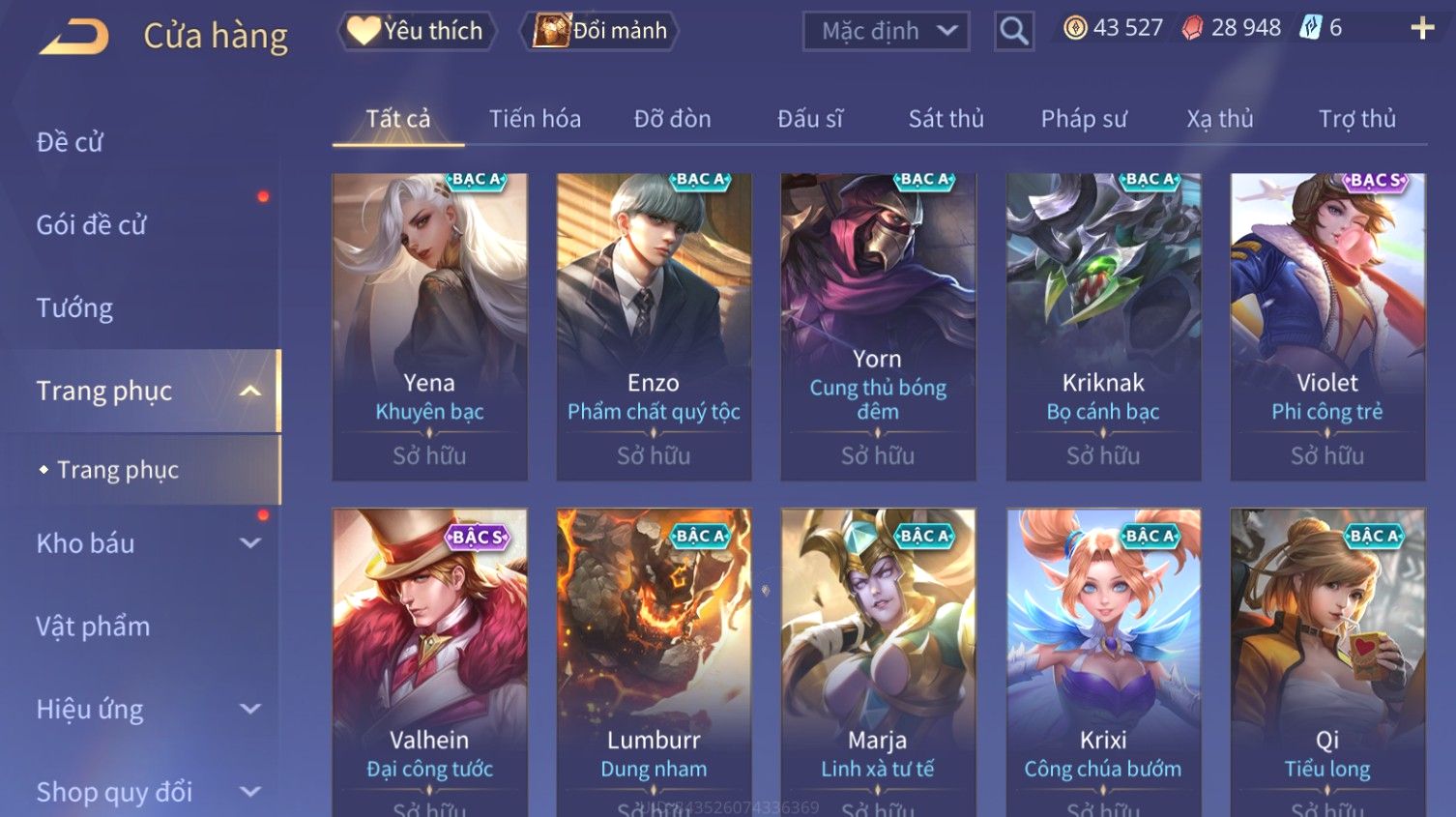Nổi bật: Skin: Liliana Tân Nguyệt Mị Ly×Raz Chiến Thần Muay Thái×Yorn Long Thần Soái×Maloch Đại Tướng Nguyệt Tộc×Florentino Seven×Full Ngọc, Nhiều Skin SS Đẹp