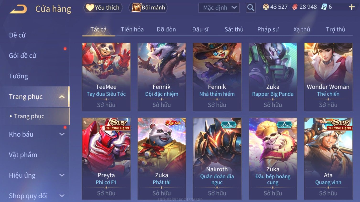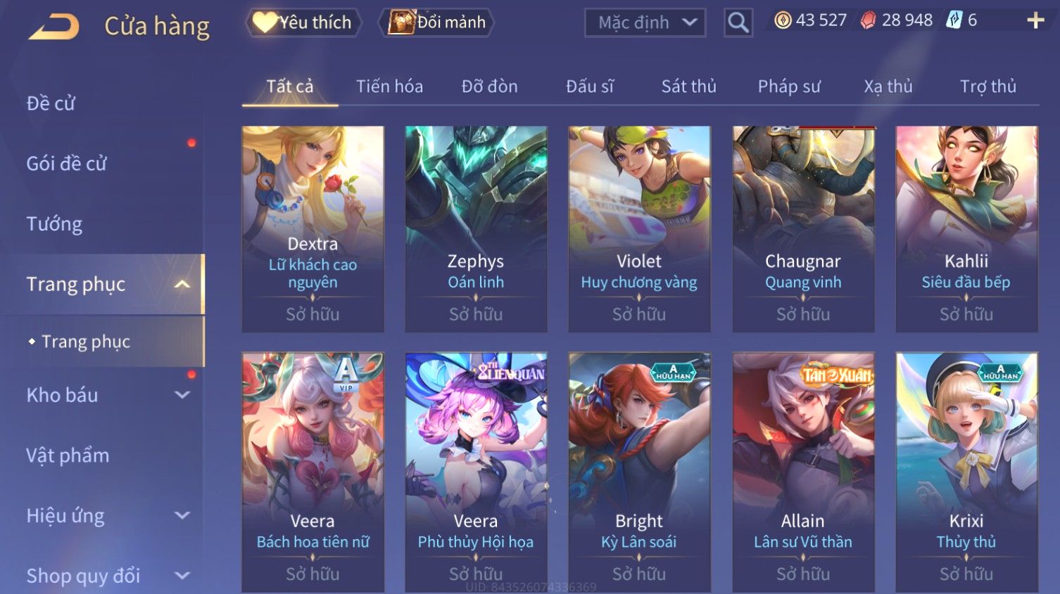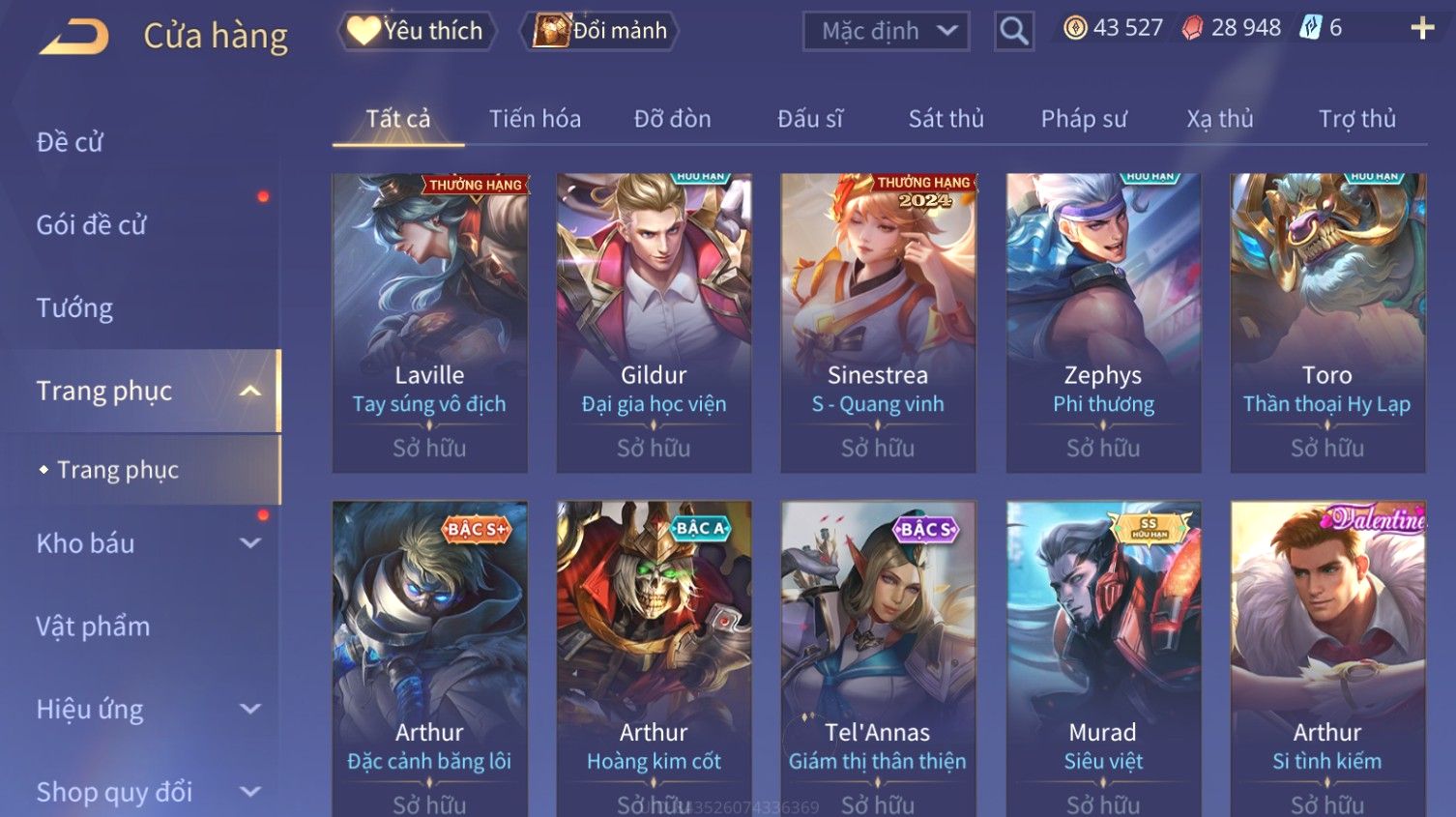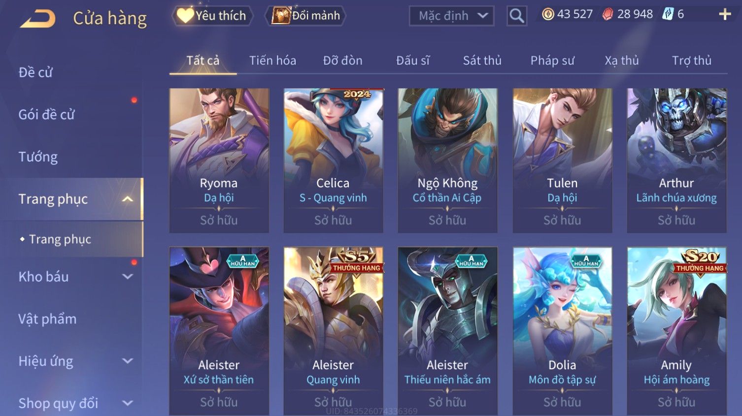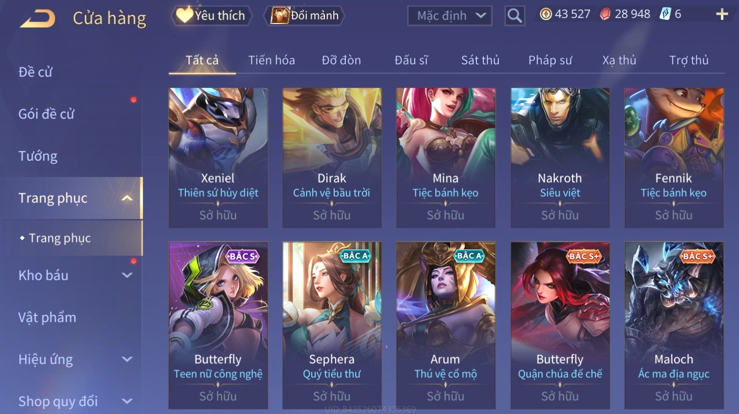 Nổi bật: Skin: Liliana Tân Nguyệt Mị Ly×Raz Chiến Thần Muay Thái×Yorn Long Thần Soái×Maloch Đại Tướng Nguyệt Tộc×Florentino Seven×Full Ngọc, Nhiều Skin SS Đẹp