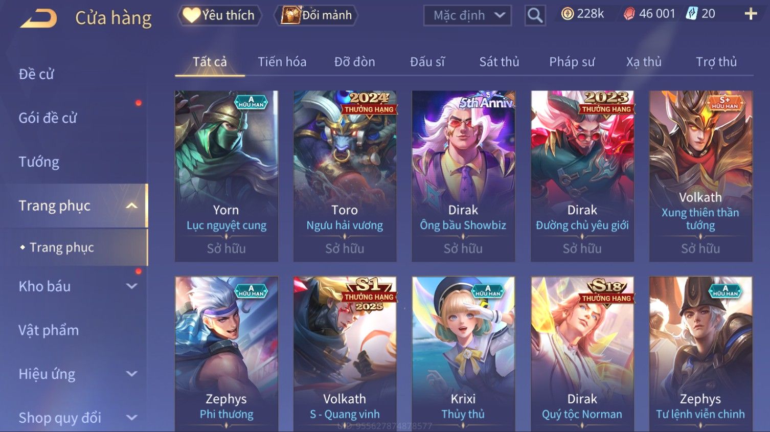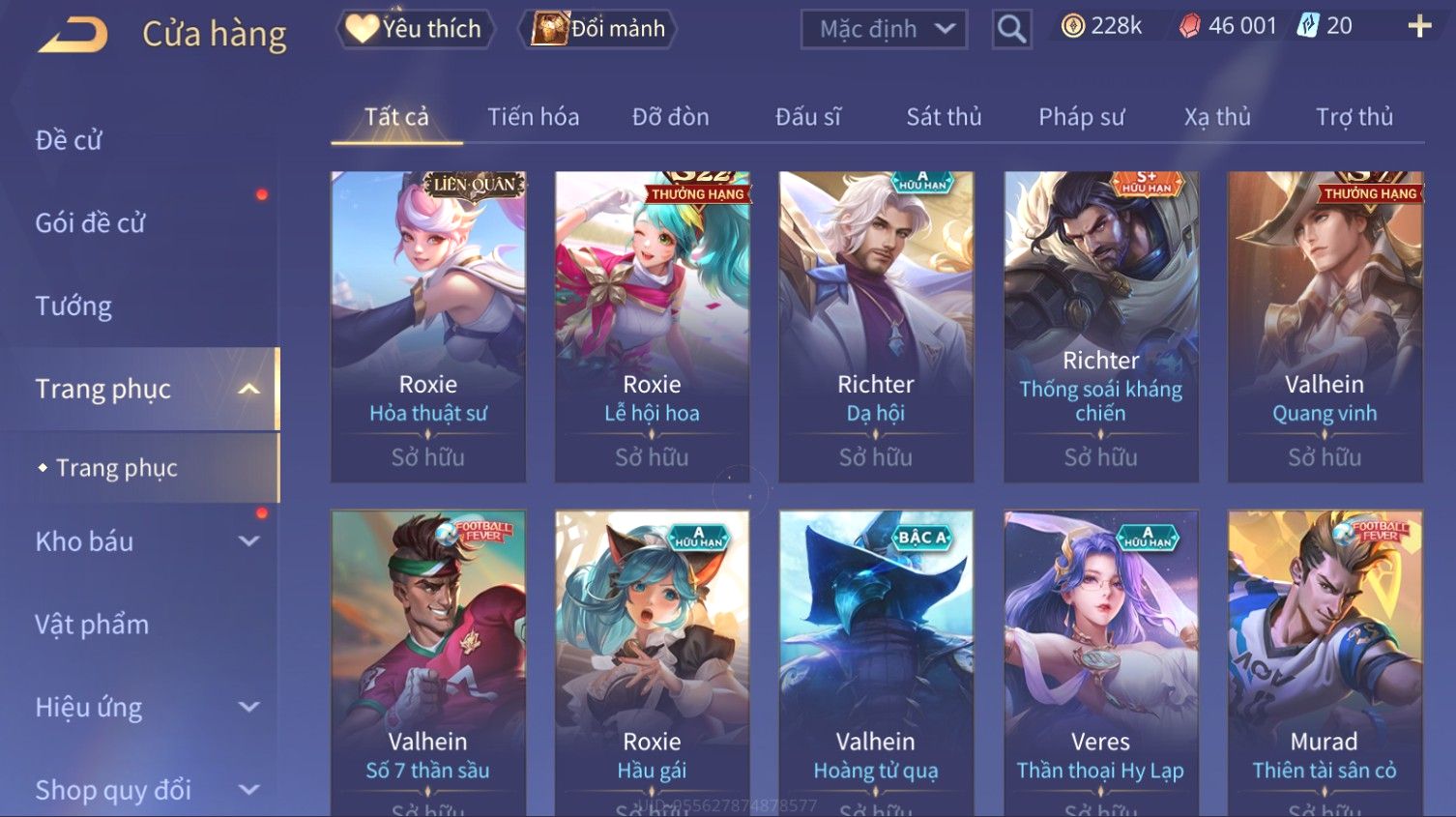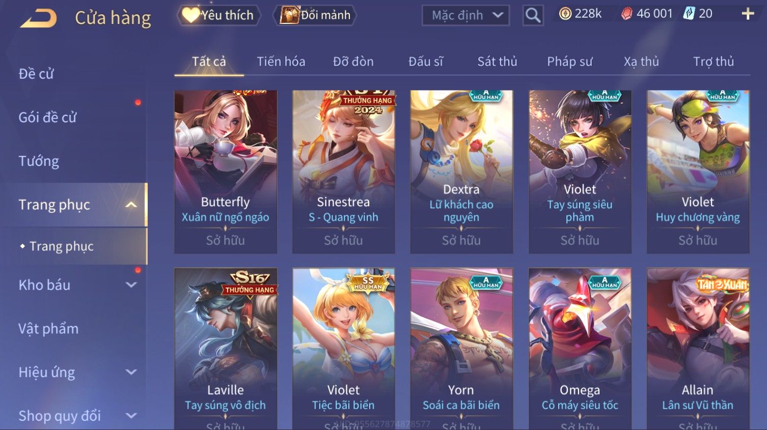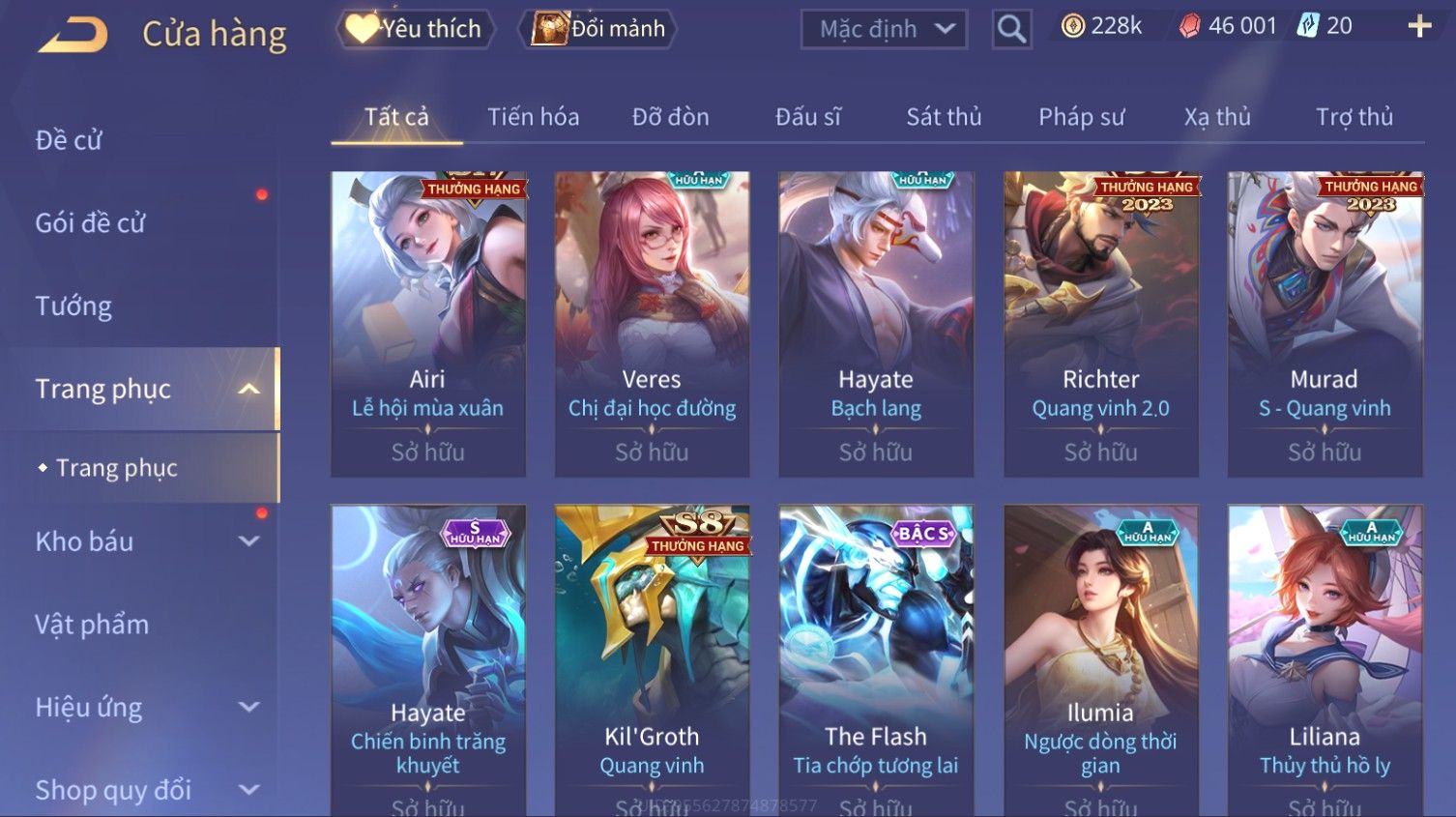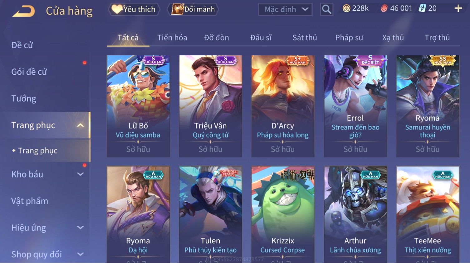 Nổi bật: Skin: Ryoma Sumarai Huyền Thoại×Full Ngọc, Nhiều Skin SS Đẹp