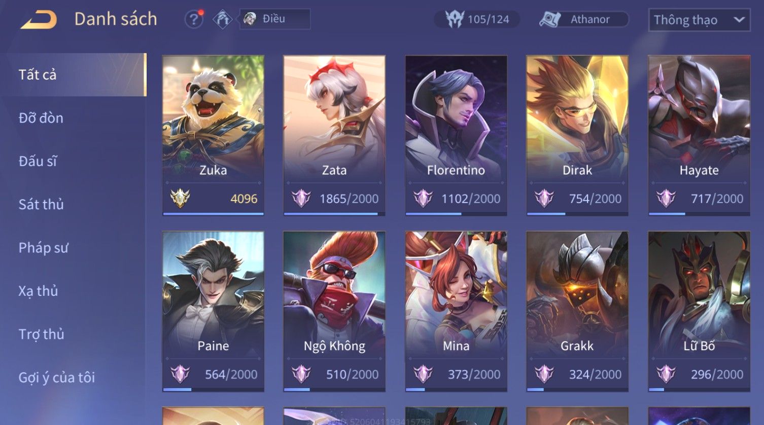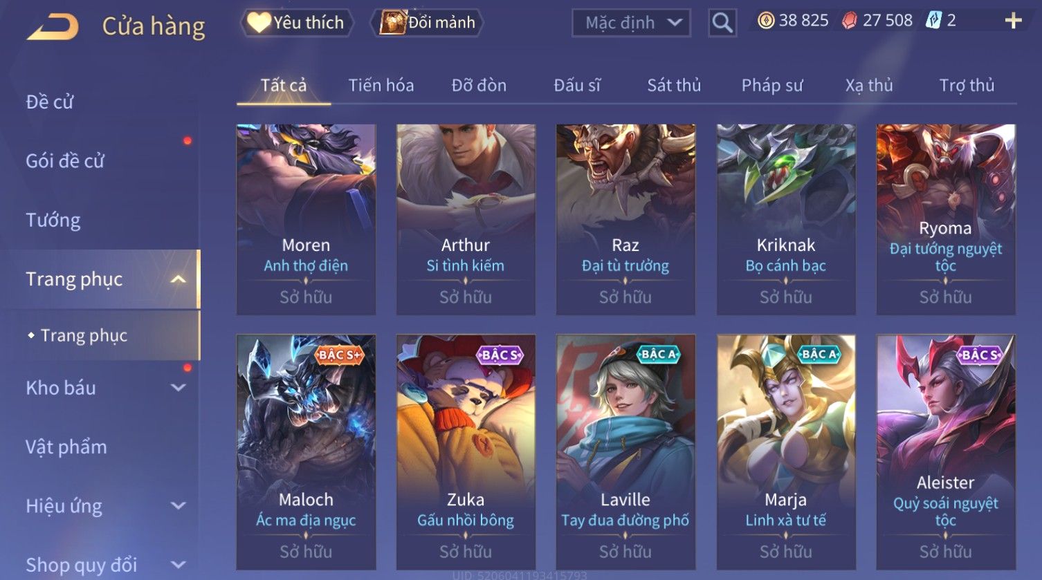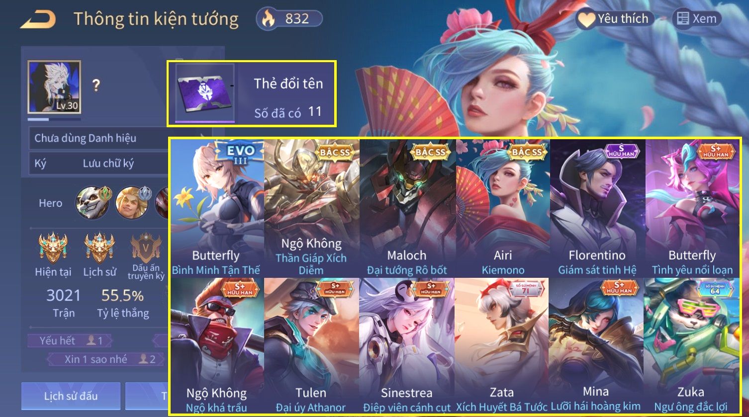 Nổi bật: Skin: Ngộ Không Thần Giáp Xích Diễm×Maloch Đại Tướng Rô Bốt×Airi Kiemono×Florentino Giám Sát Tinh Hệ×Full Ngọc, Nhiều Skin SS Đẹp