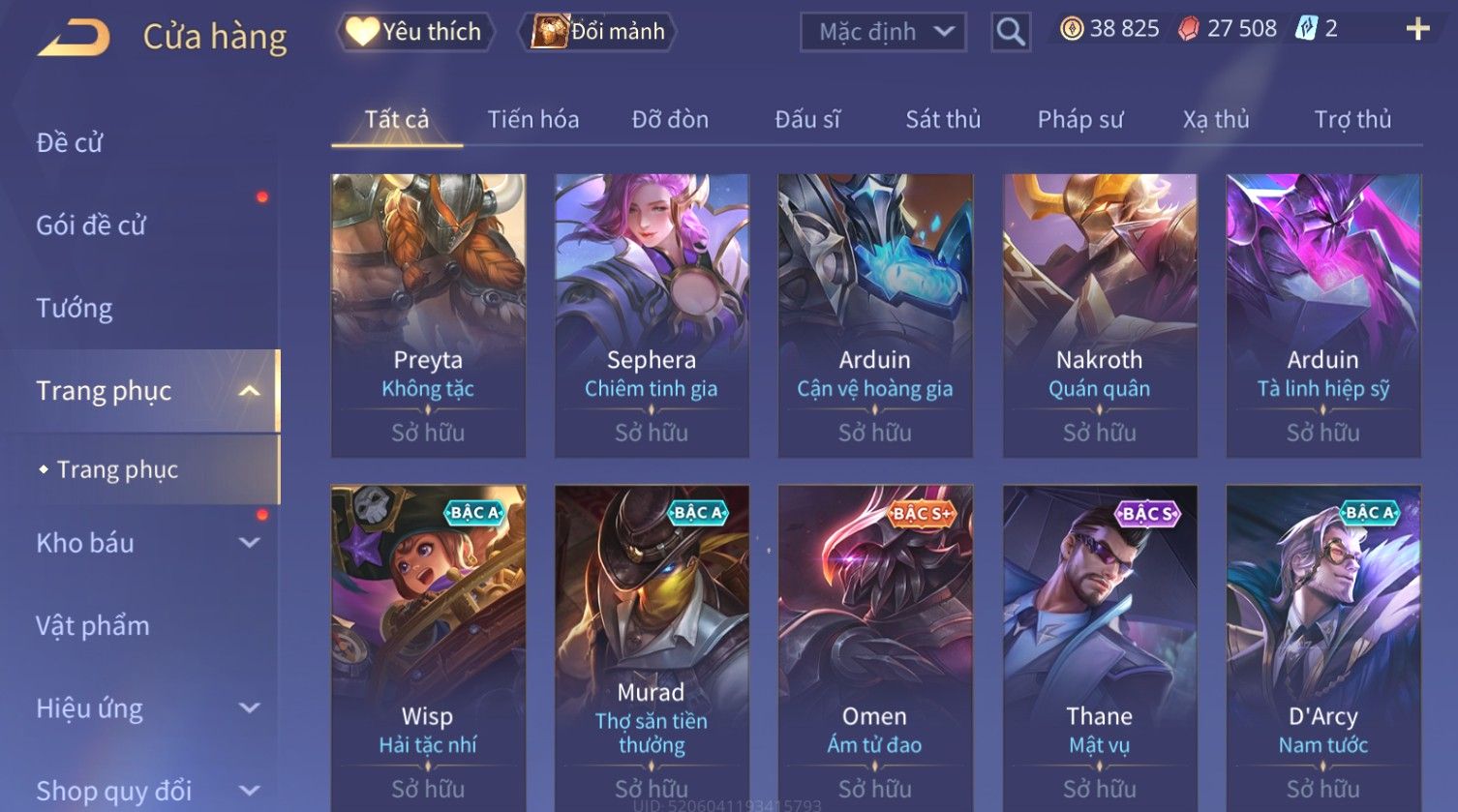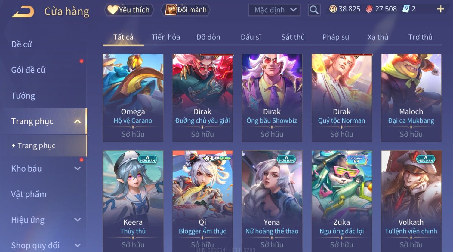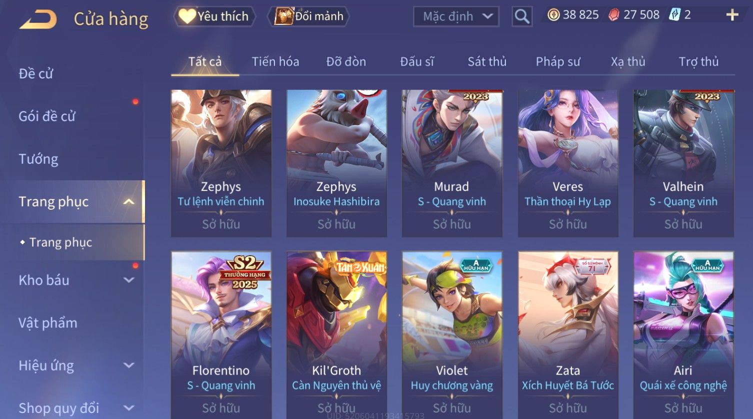 Nổi bật: Skin: Ngộ Không Thần Giáp Xích Diễm×Maloch Đại Tướng Rô Bốt×Airi Kiemono×Florentino Giám Sát Tinh Hệ×Full Ngọc, Nhiều Skin SS Đẹp