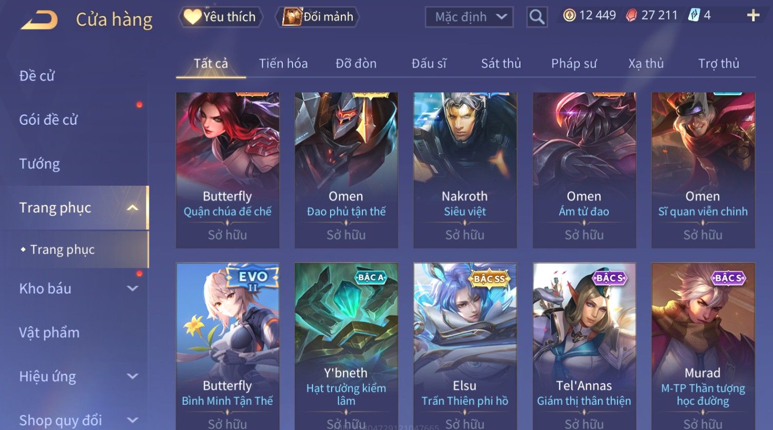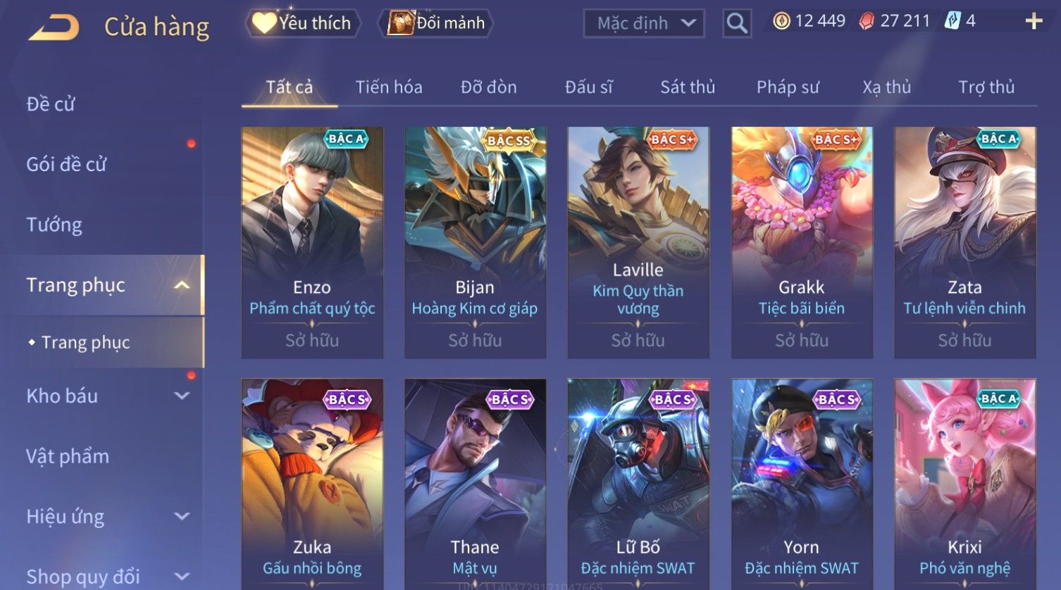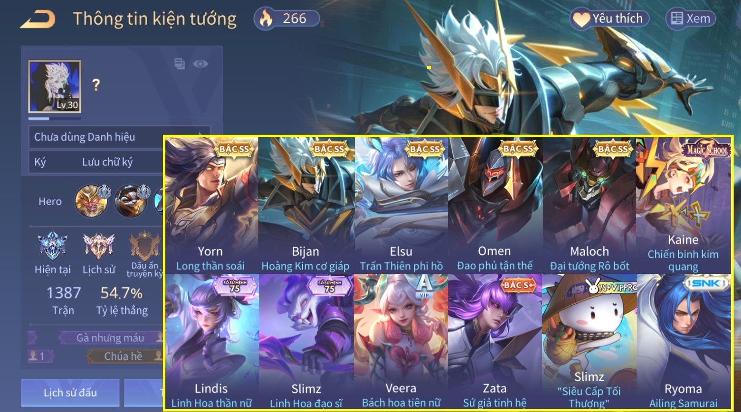 Nổi bật: Skin: Yorn Long Thần Soái×Bijan Hoàng Kim Cơ Giáp×Elsu Trấn Thiên Phi Hồ×Omen Đao Phủ Tận Thế×Maloch Đại Tướng Rô Bốt×Zata Sứ Giả Tinh Hệ×
