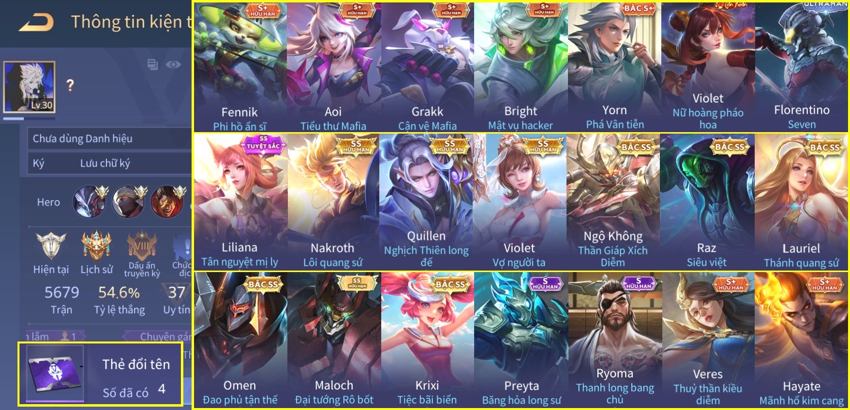 Trạng Thái: Nick có SĐT or Gmail Của Shop( Có Thể Thay Đổi)