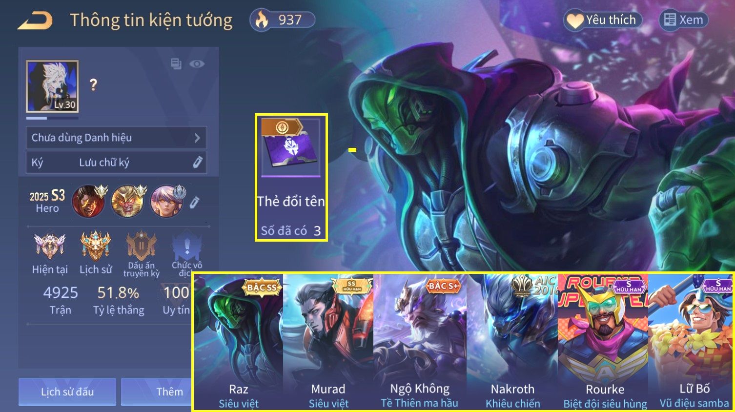 Nổi bật: Skin: Raz Siêu Việt×Murad Siêu Việt×Nakroth Khiêu Chiến×Full Ngọc, Nhiều Skin Đẹp