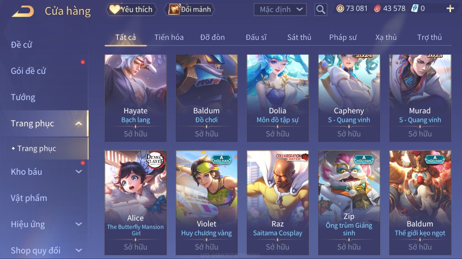 Nổi bật: Skin: Elsu Sử Giả Tận Thế×Elsu Hỏa diệm chu tước×Aoi Hoàng Kim Công Chúa×Full Ngọc, Nhiều Skin SS Đẹp
