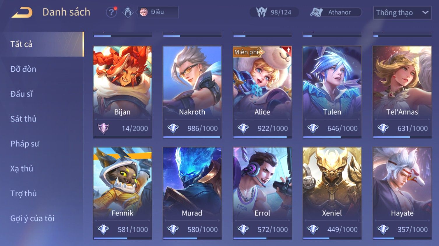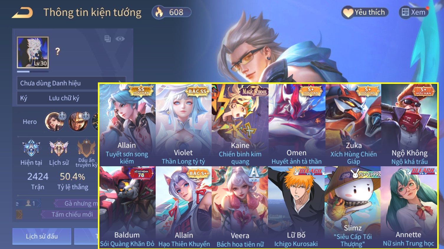 Nổi bật: Skin: Allain Tuyết Sơn Song Kiếm×Violet Thần Long Tỷ Tỷ×Full Ngọc, Nhiều Skin Đẹp