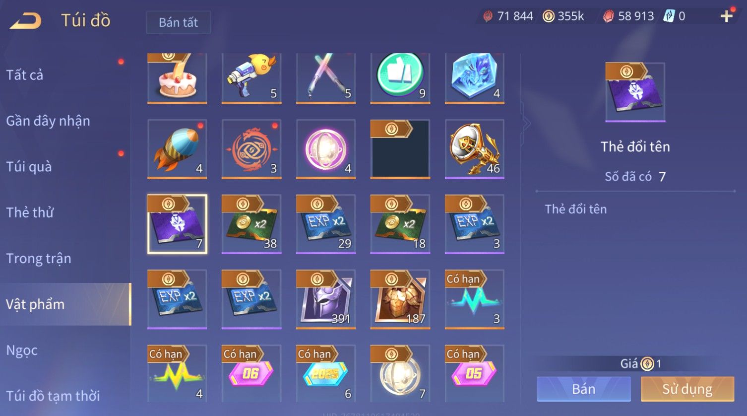 Trạng Thái: Nick có SĐT or Gmail Của Shop( Có Thể Thay Đổi)
