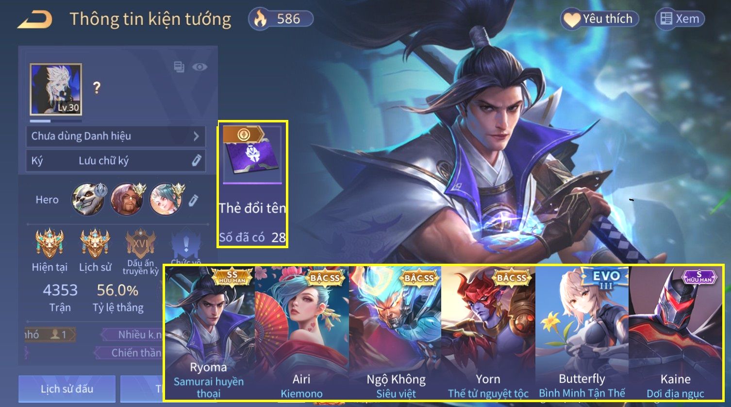 Nổi bật: Ryoma Sammurai Huyền Thoại, Full Ngọc, Nhiều Skin Đẹp