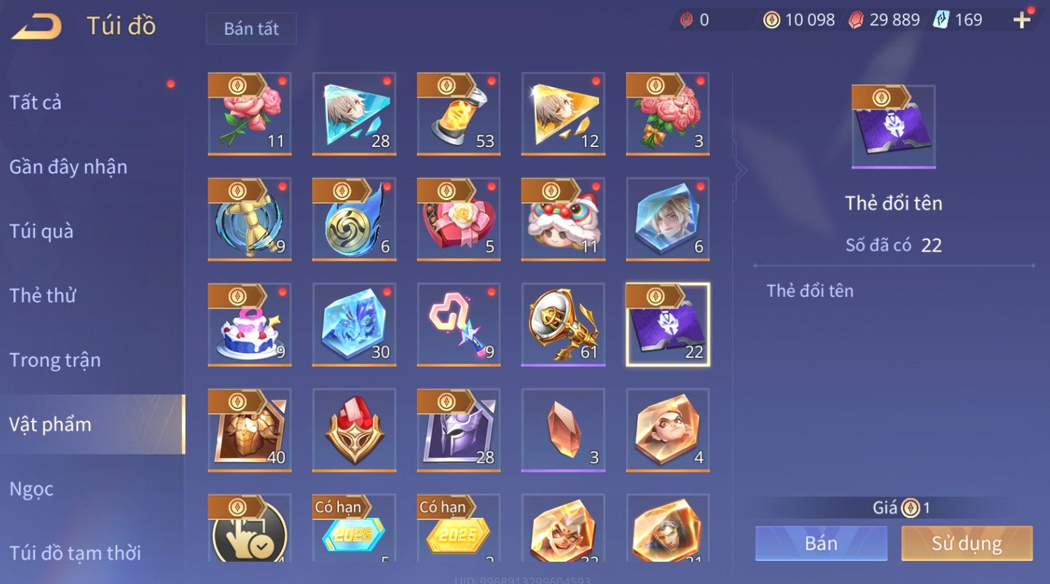 Trạng Thái: Nick có SĐT or Gmail Của Shop( Có Thể Thay Đổi)