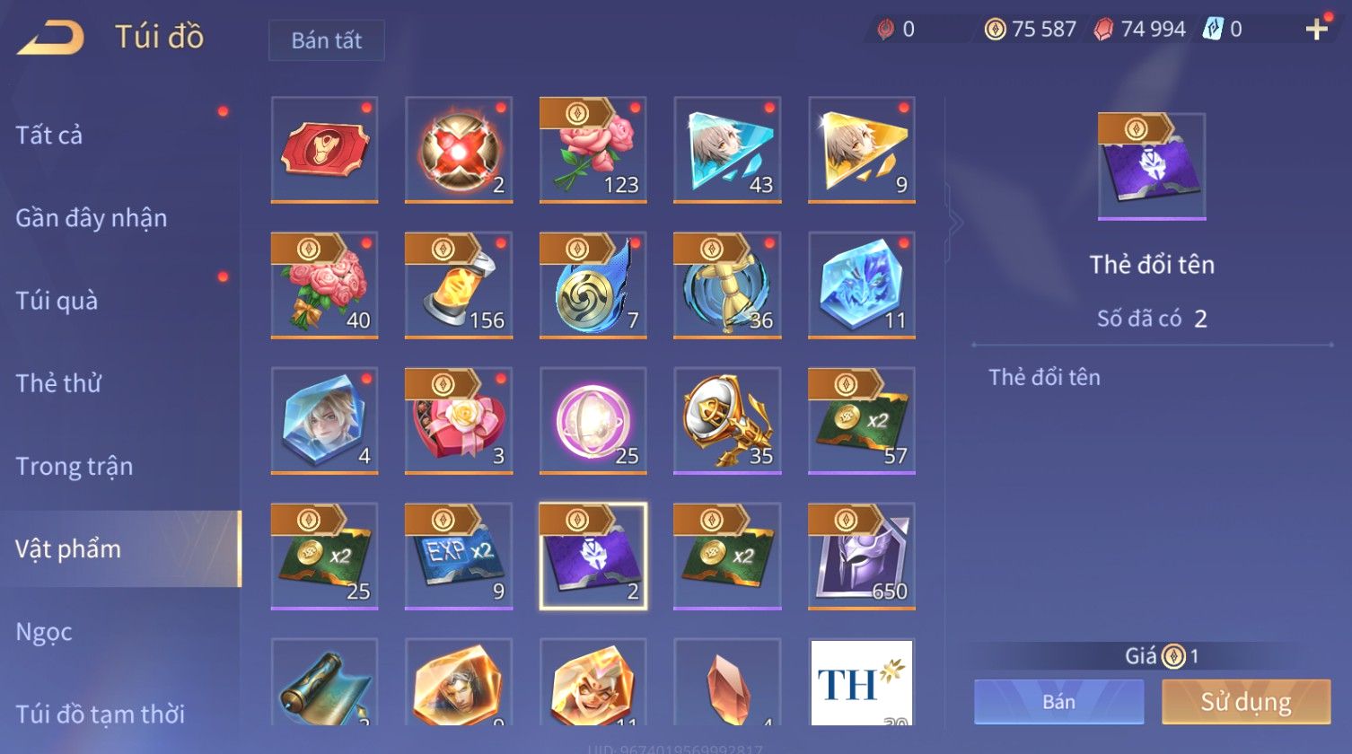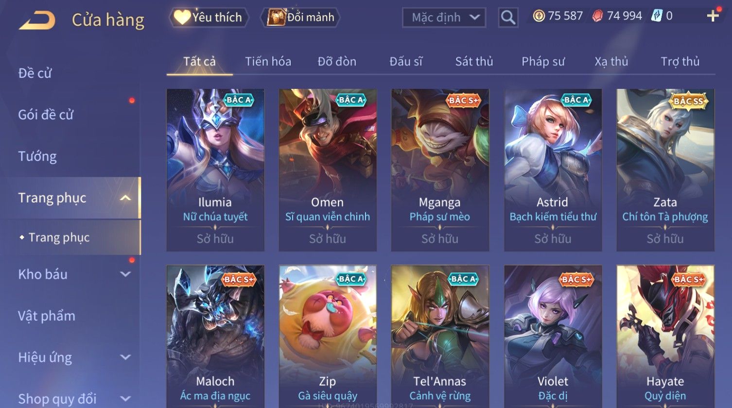 Trạng Thái: Nick có SĐT or Gmail Của Shop( Có Thể Thay Đổi)