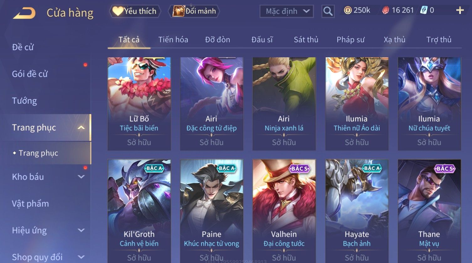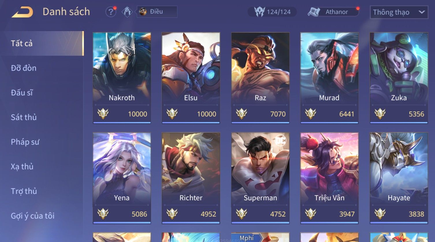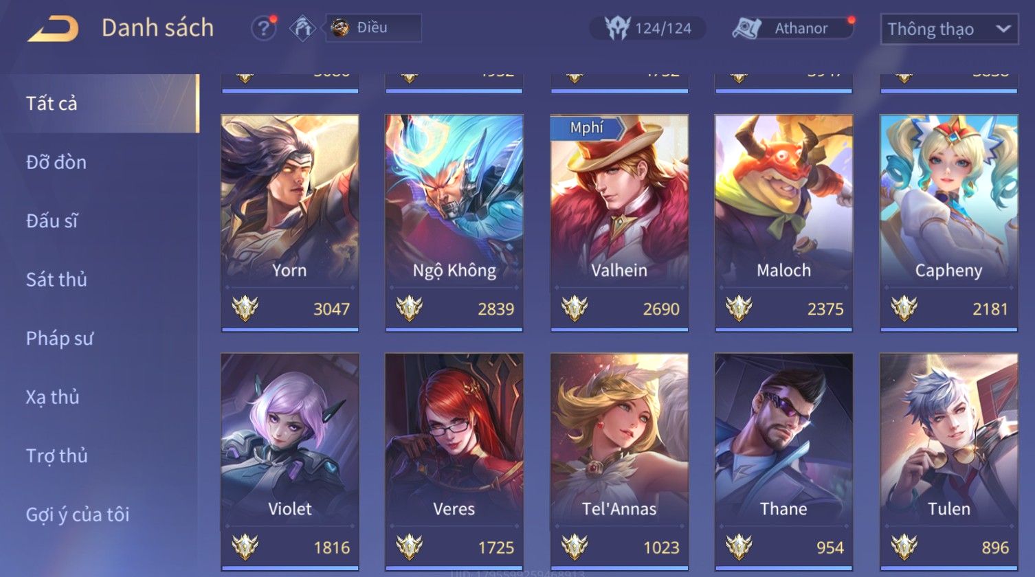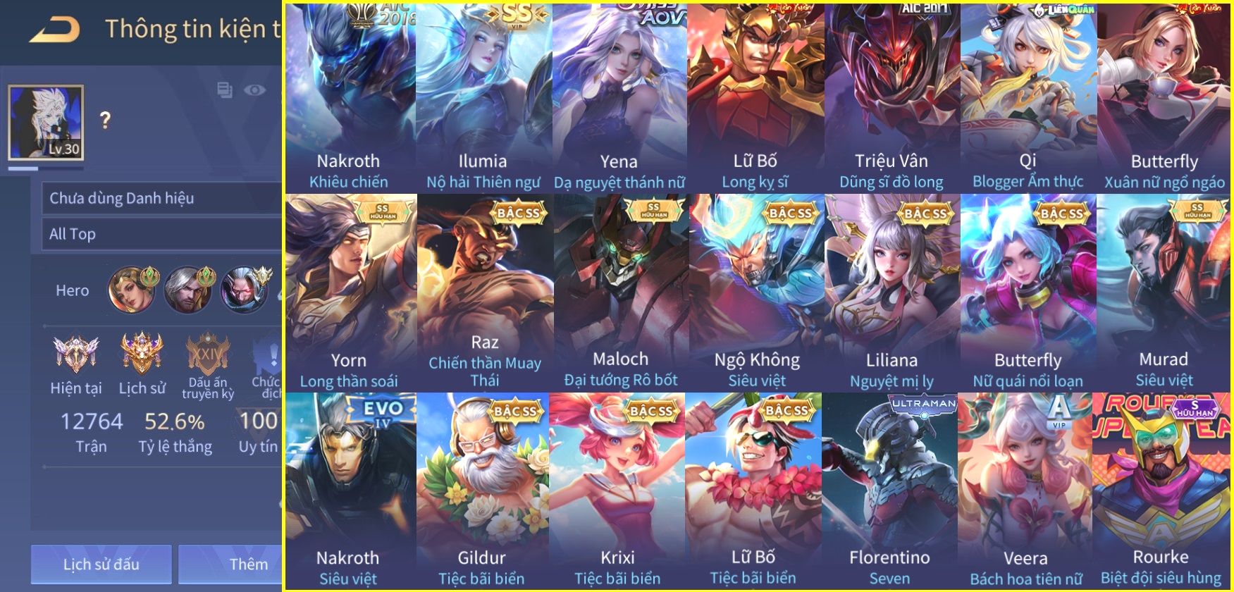 Nổi bật: Skin: Yorn Long Thần Soái×Raz Chiến Thần Muay Thái×Maloch Đại Tướng Rô Bốt×Ngộ Không Siêu Việt×Liliana Nguyệt Mị Ly×Butterfly Nữ Quái Nổi Loạn×Murad Siêu Việt×Gildur Tiệc Bãi Biển×Lữ Bố Tiệc Bãi Biển×Krixi Tiệc Bãi Biển×Full Ngọc, Nhiều Skin SS Đẹp