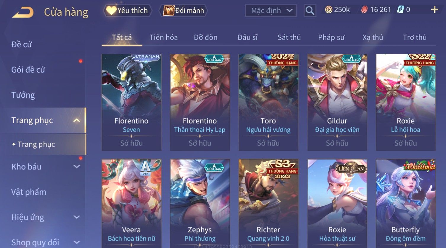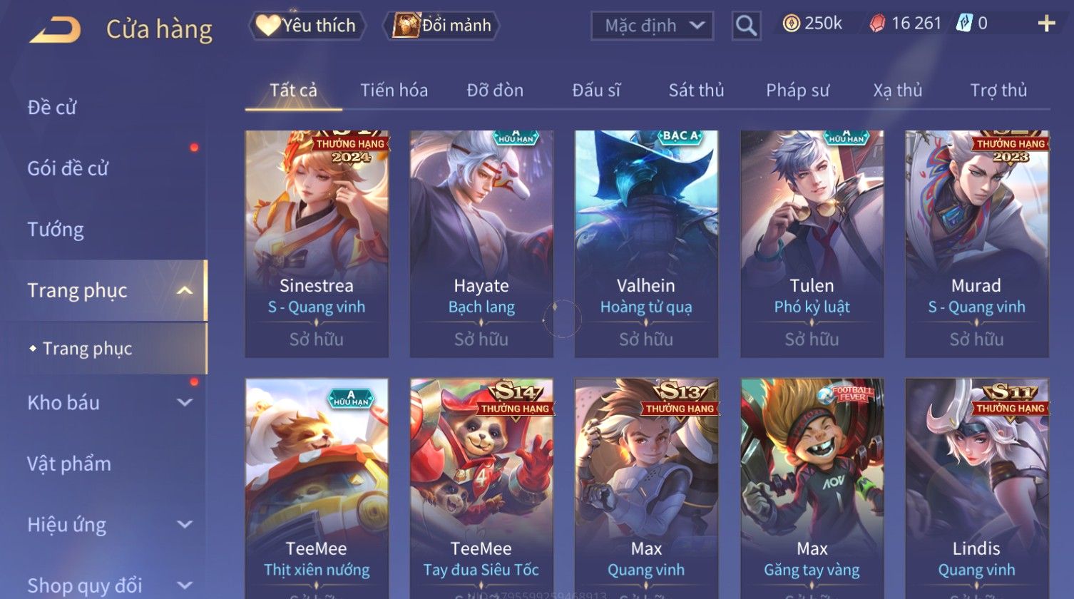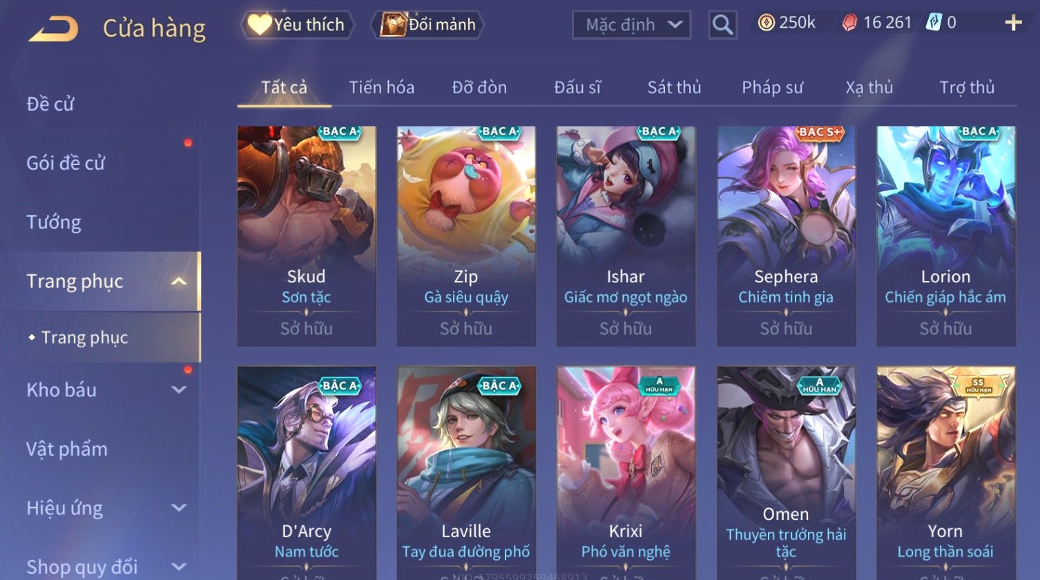 Nổi bật: Skin: Yorn Long Thần Soái×Raz Chiến Thần Muay Thái×Maloch Đại Tướng Rô Bốt×Ngộ Không Siêu Việt×Liliana Nguyệt Mị Ly×Butterfly Nữ Quái Nổi Loạn×Murad Siêu Việt×Gildur Tiệc Bãi Biển×Lữ Bố Tiệc Bãi Biển×Krixi Tiệc Bãi Biển×Full Ngọc, Nhiều Skin SS Đẹp