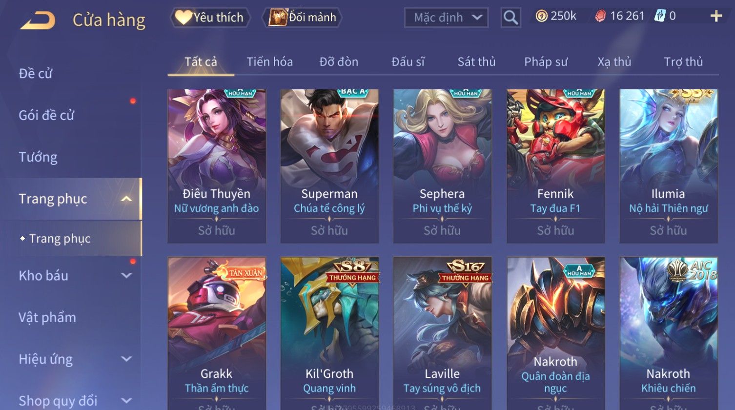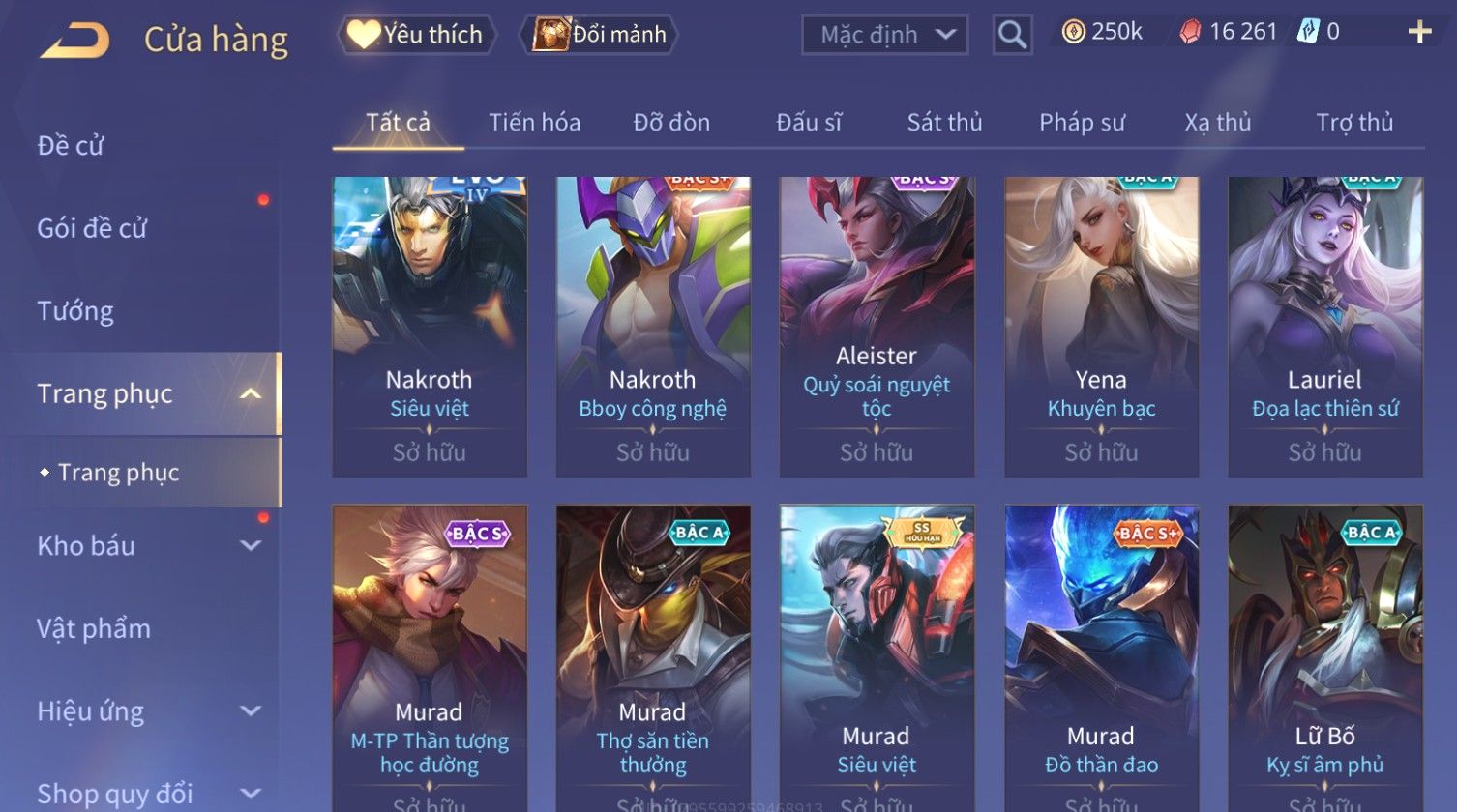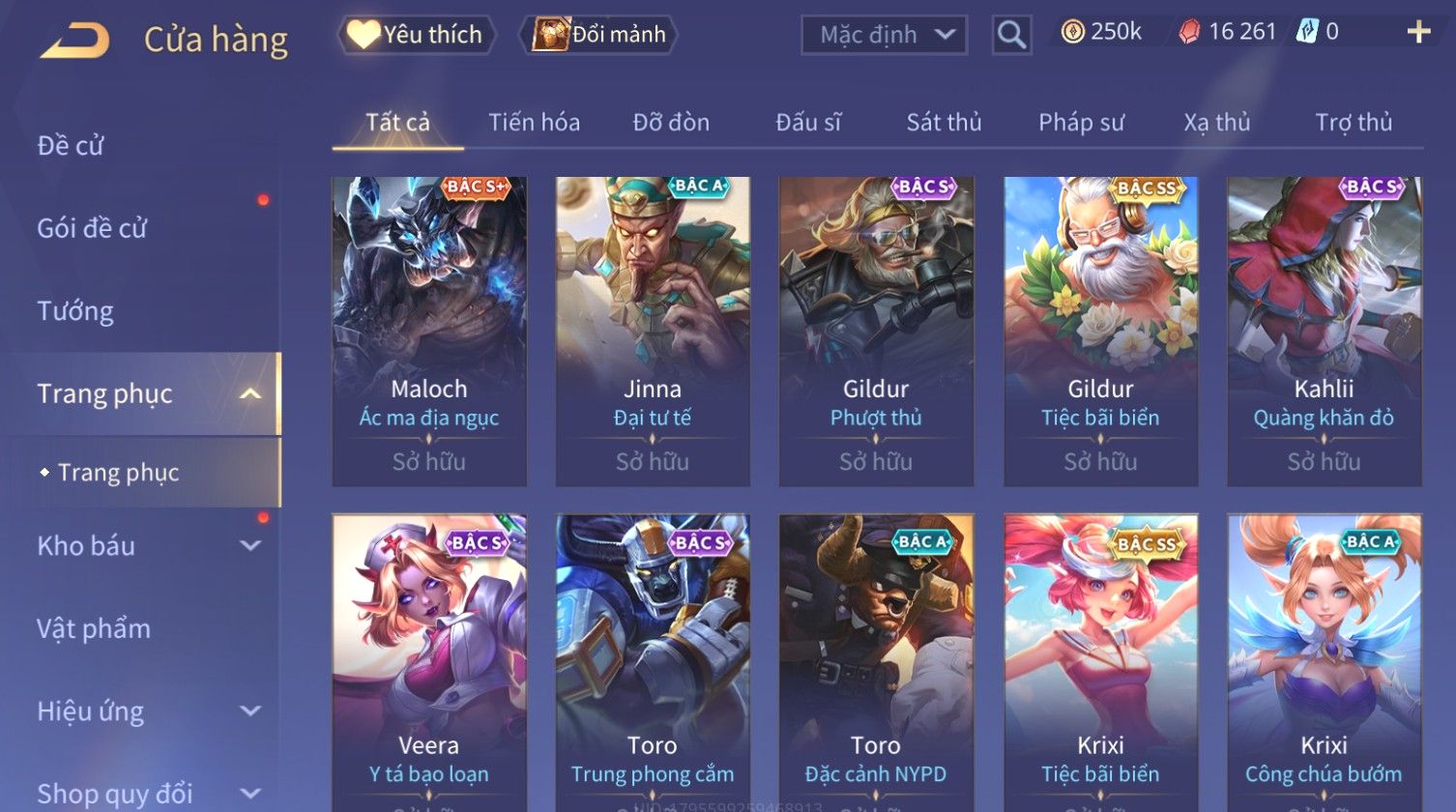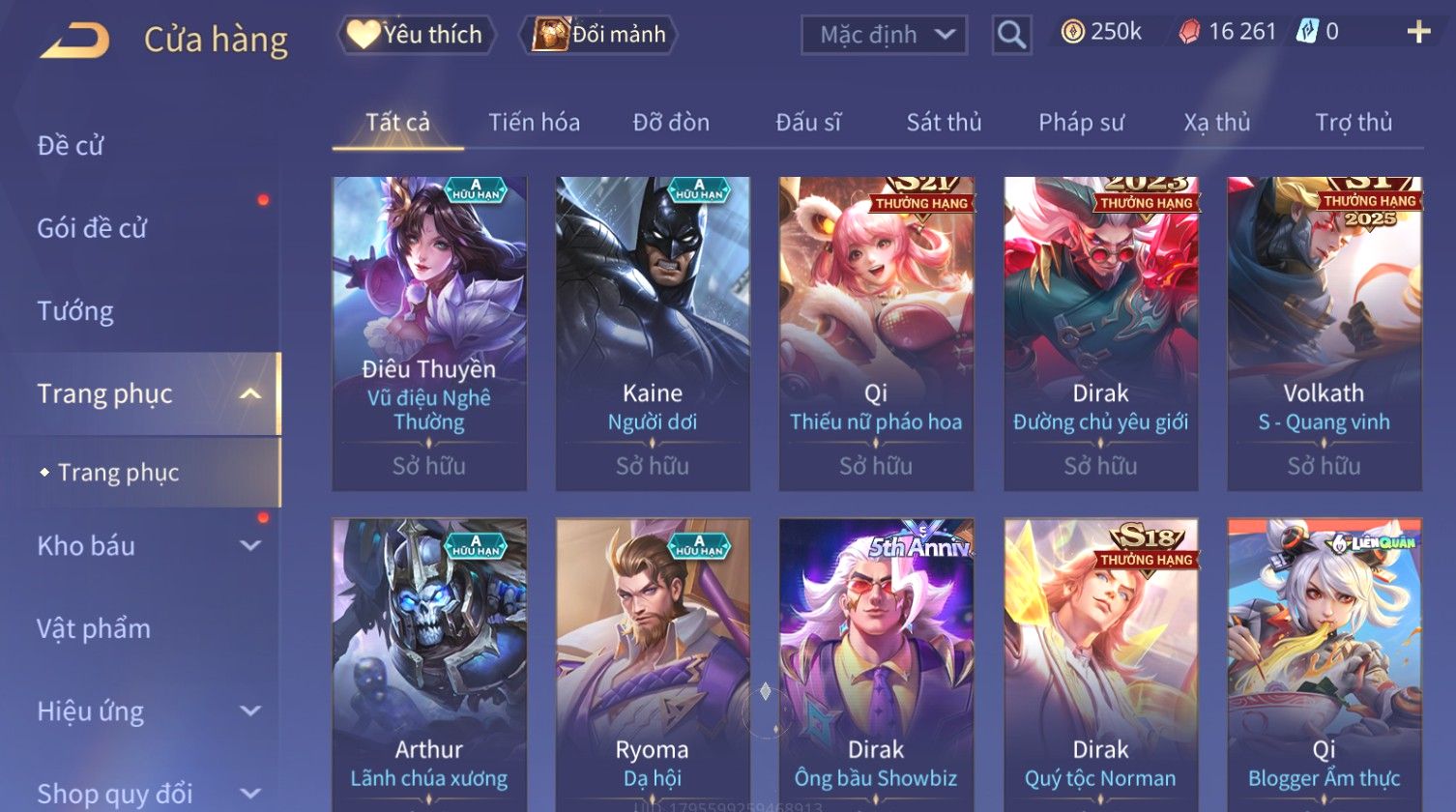 Nổi bật: Skin: Yorn Long Thần Soái×Raz Chiến Thần Muay Thái×Maloch Đại Tướng Rô Bốt×Ngộ Không Siêu Việt×Liliana Nguyệt Mị Ly×Butterfly Nữ Quái Nổi Loạn×Murad Siêu Việt×Gildur Tiệc Bãi Biển×Lữ Bố Tiệc Bãi Biển×Krixi Tiệc Bãi Biển×Full Ngọc, Nhiều Skin SS Đẹp