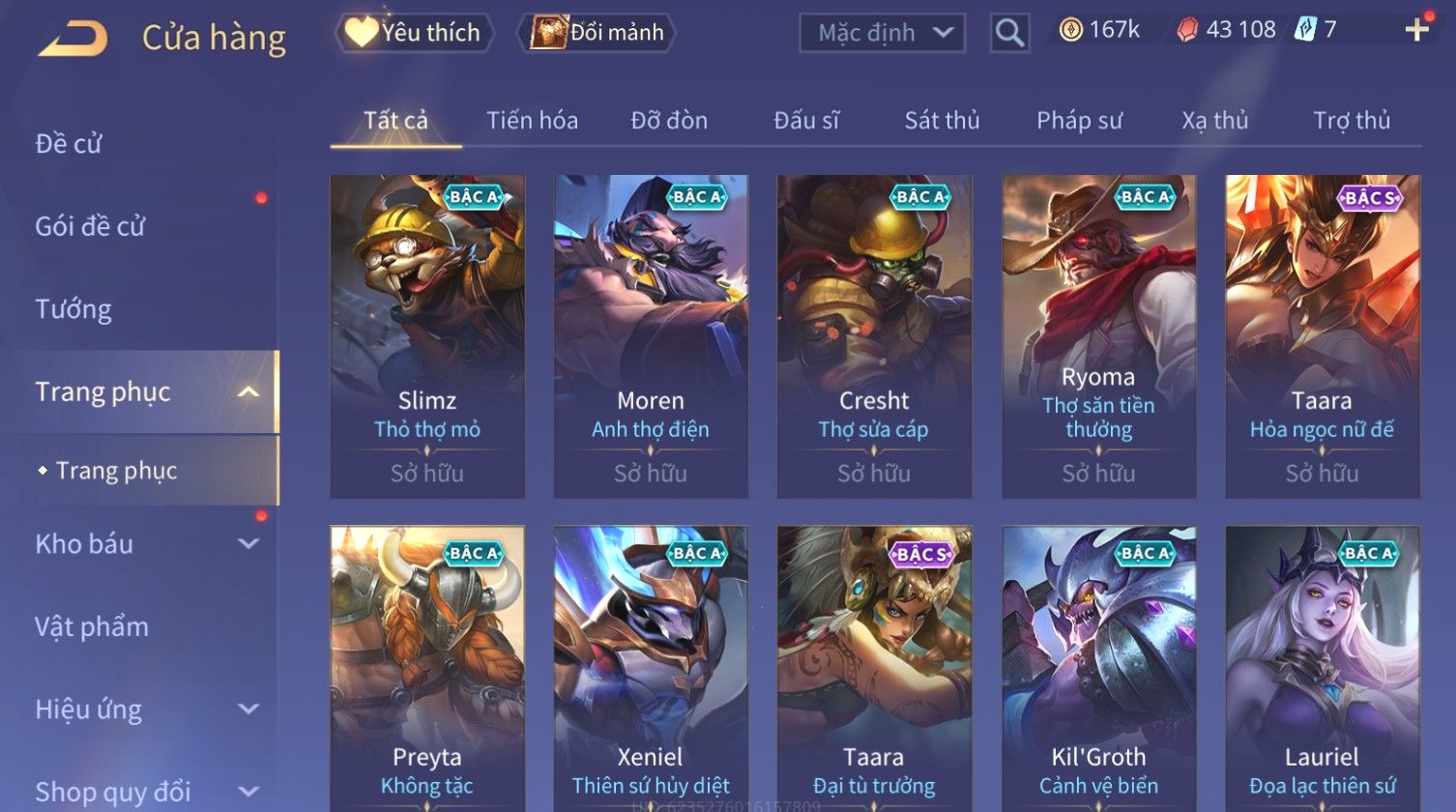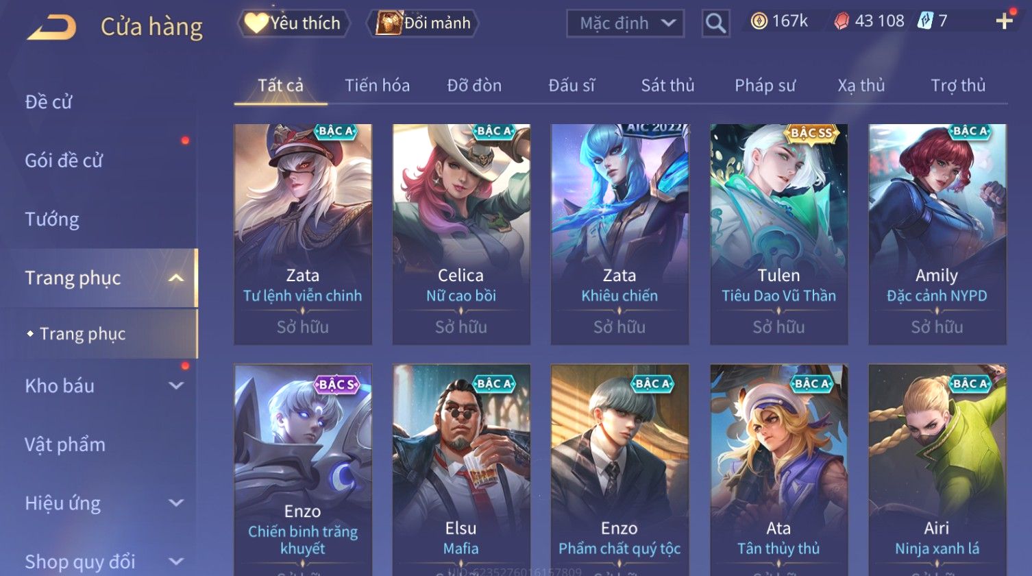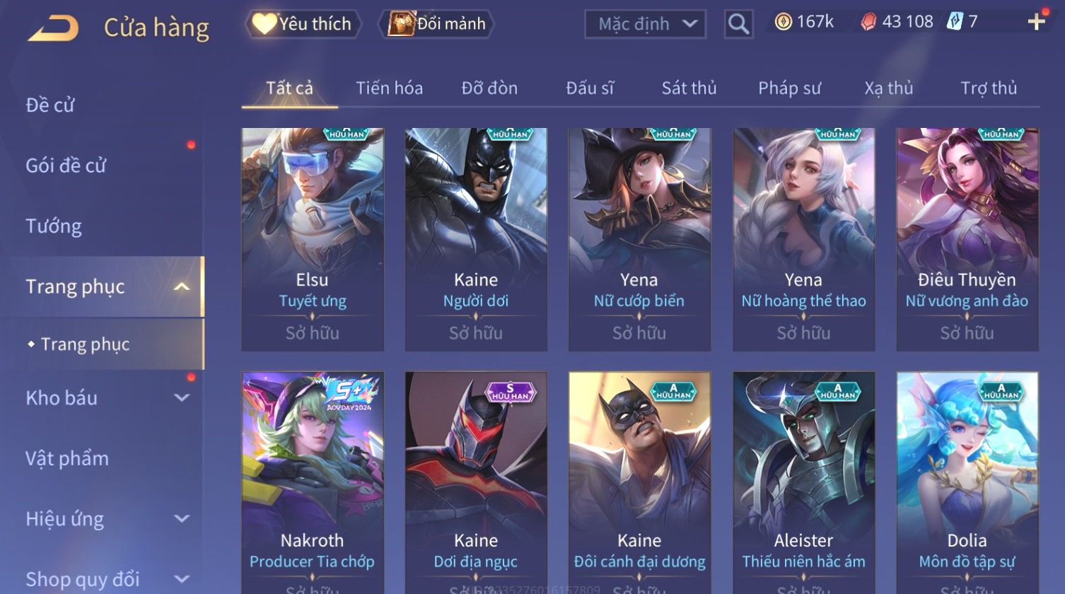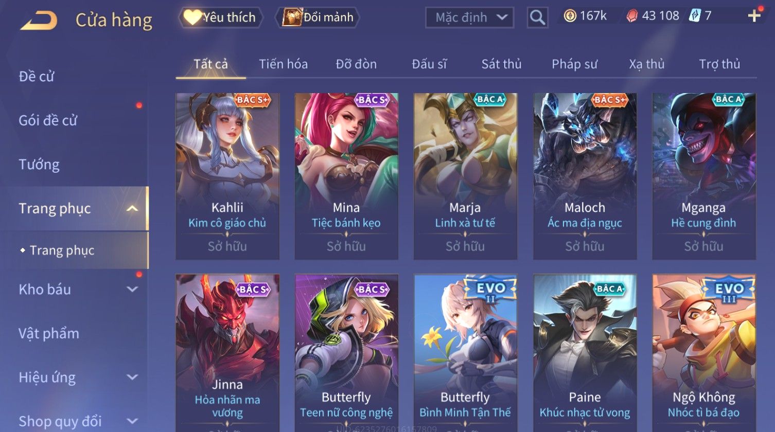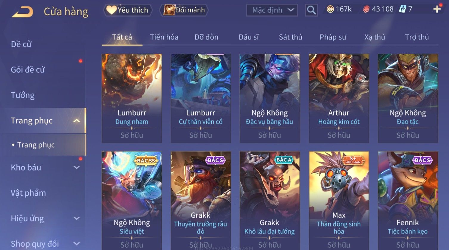 Nổi bật: Skin: Murad Byakuya Kuchiki×Raz Chiến Thần Muay Thái×Raz Siêu Việt×Ngộ Không Siêu Việt×Tulen Tiêu Dao Vũ Thần×Tel'Annas Vũ Khúc Yêu Hồ×Valhein Vũ Khí Tối Thượng×Richter Thần Kiếm Susanoo×Florentino Giám Sát Tinh Hệ×Full Ngọc, Nhiều Skin SS Đẹp