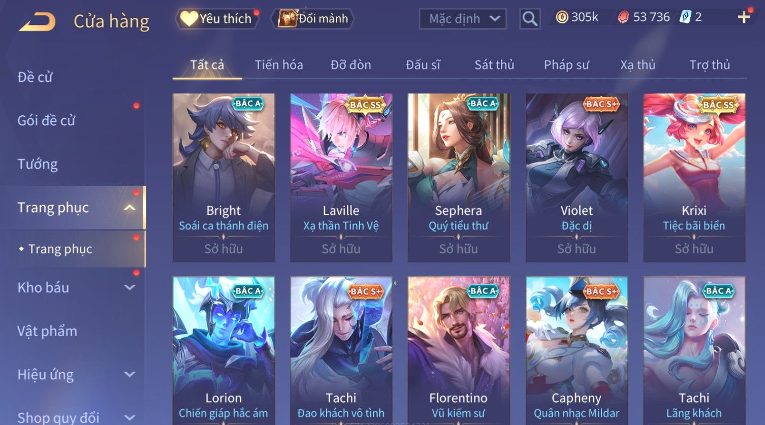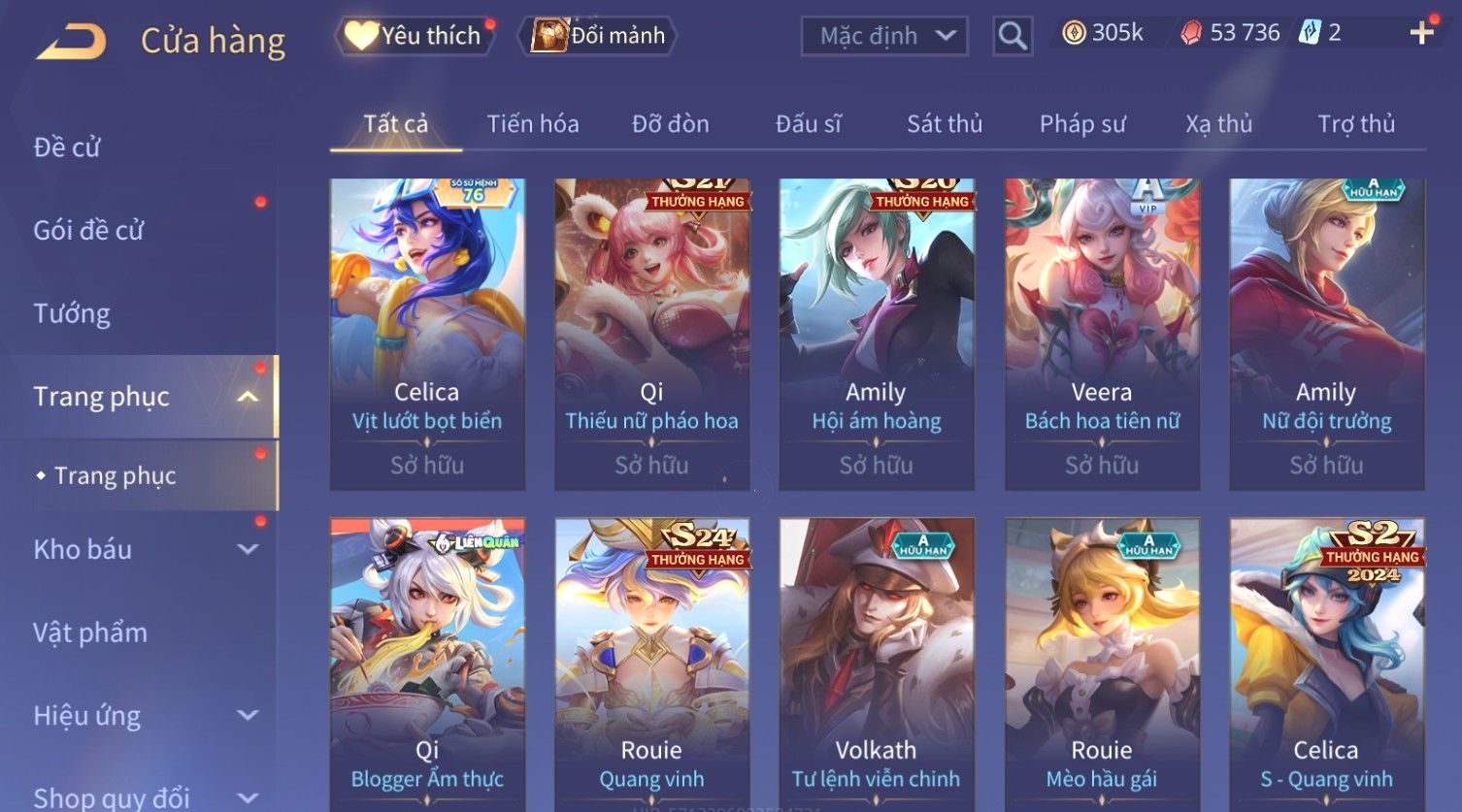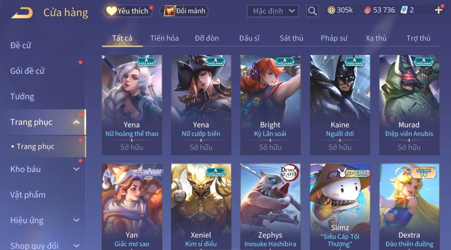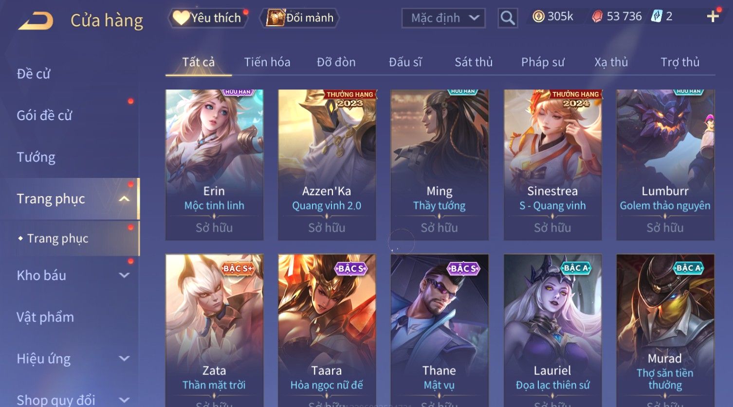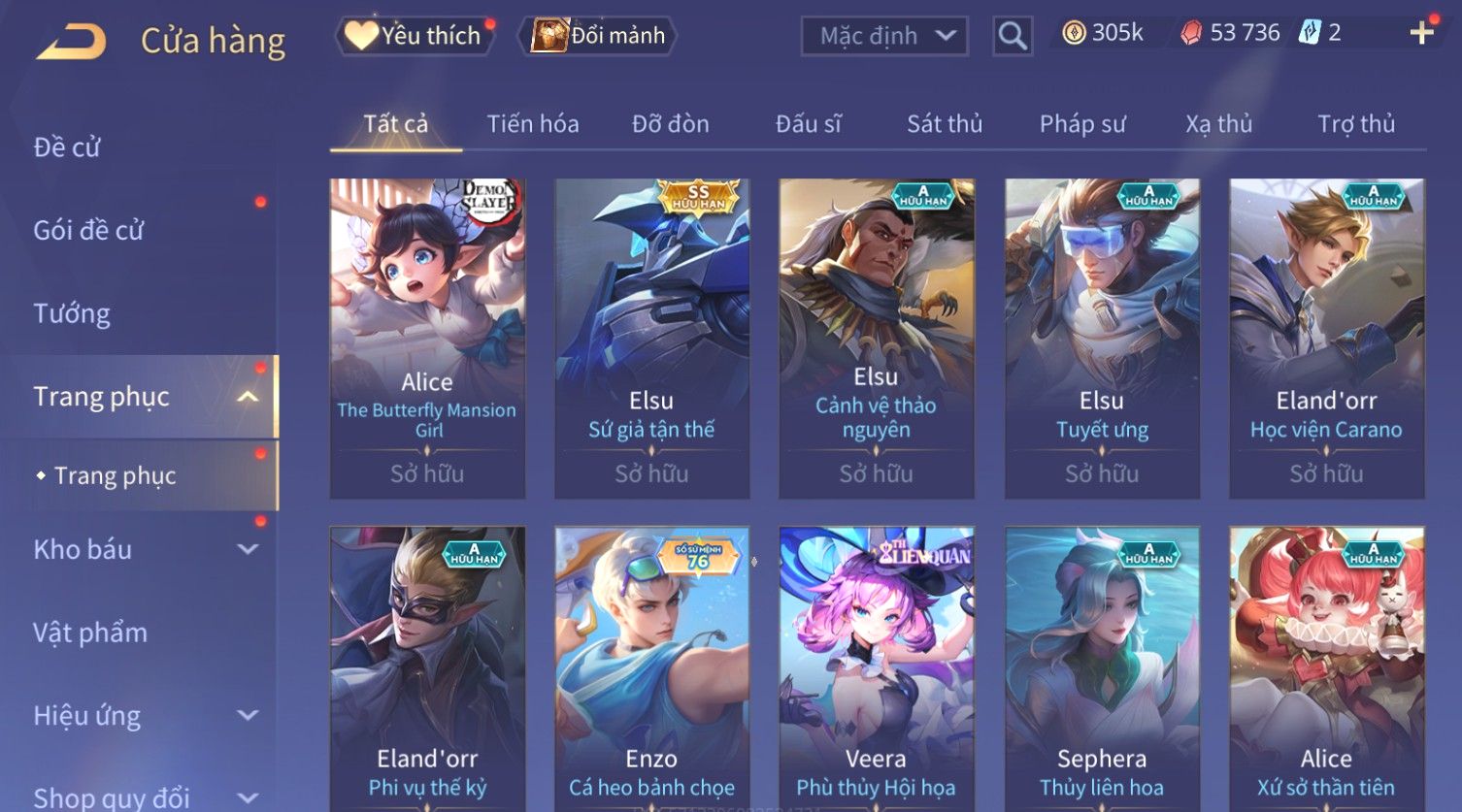 Nổi bật: Skin: Flo Kỷ Nguyên Hổ Phách×Elsu Sử Giả Tận Thế×Violet Thần Long Tỷ Tỷ×Yorn Long Thần Soái×Laville Xạ thần Tinh Vệ×Richter Thần Kiếm Susanoo×Airi Kiemono×Full Ngọc, Nhiều Skin SS Đẹp