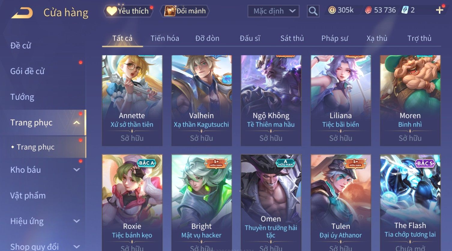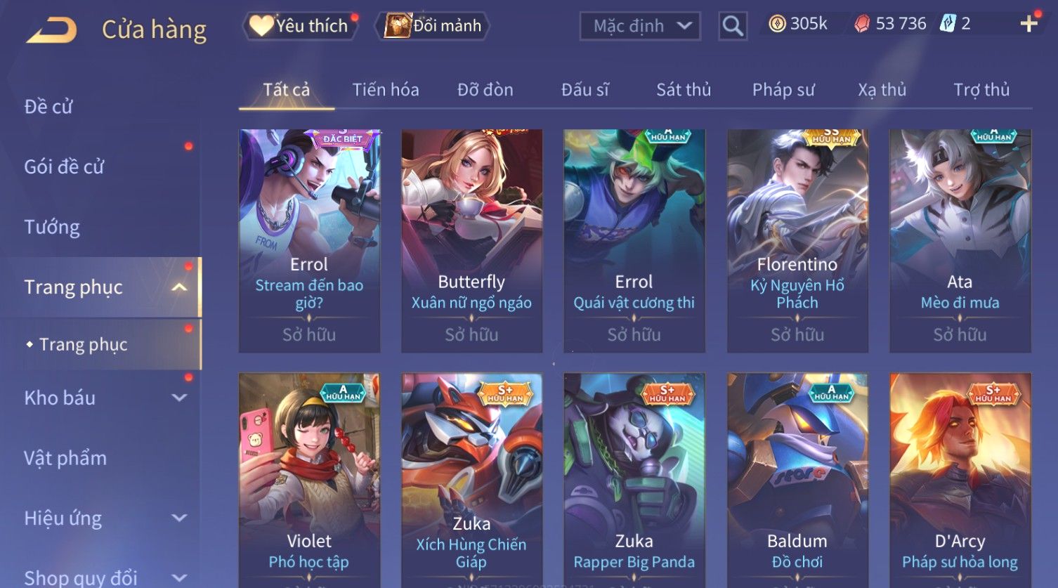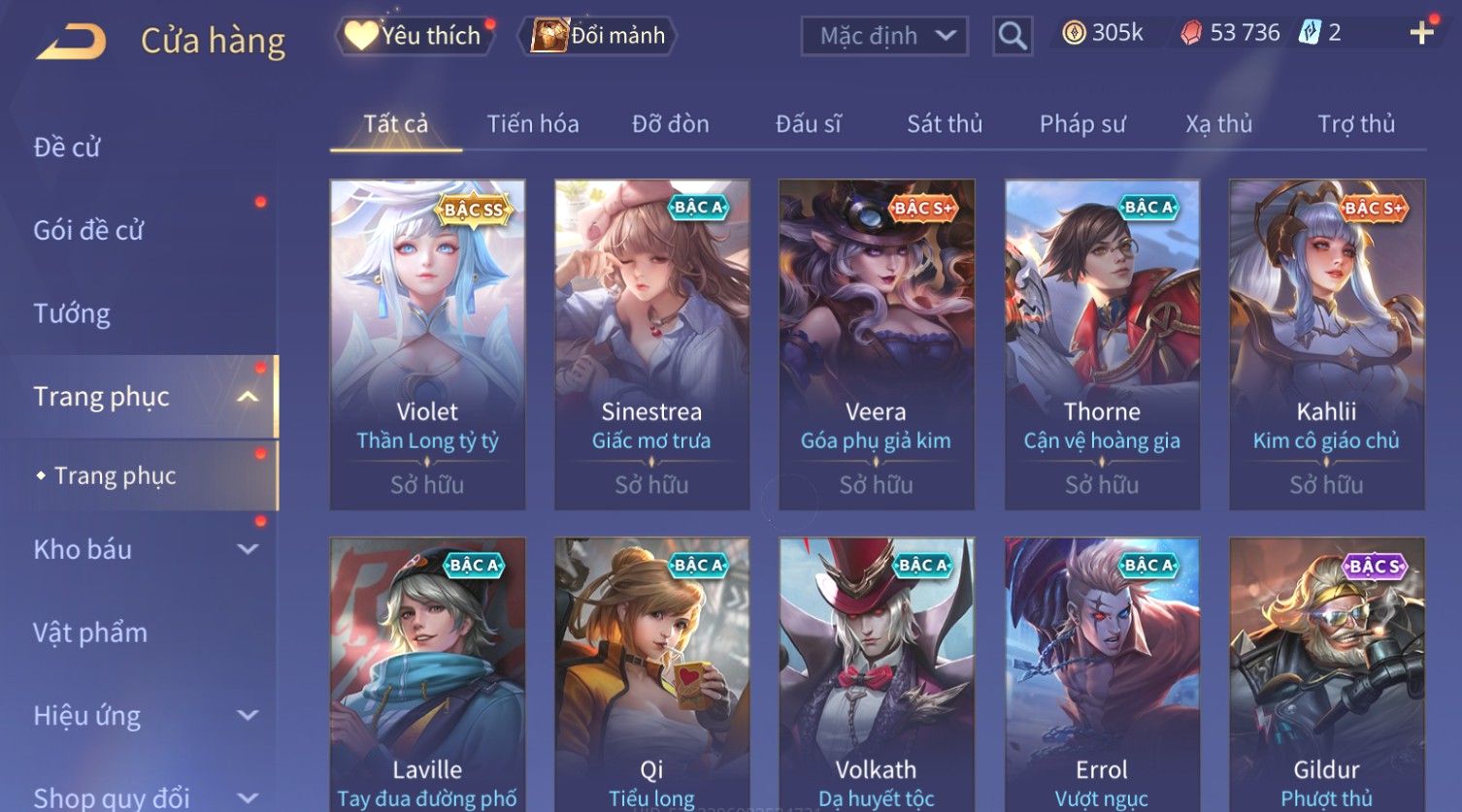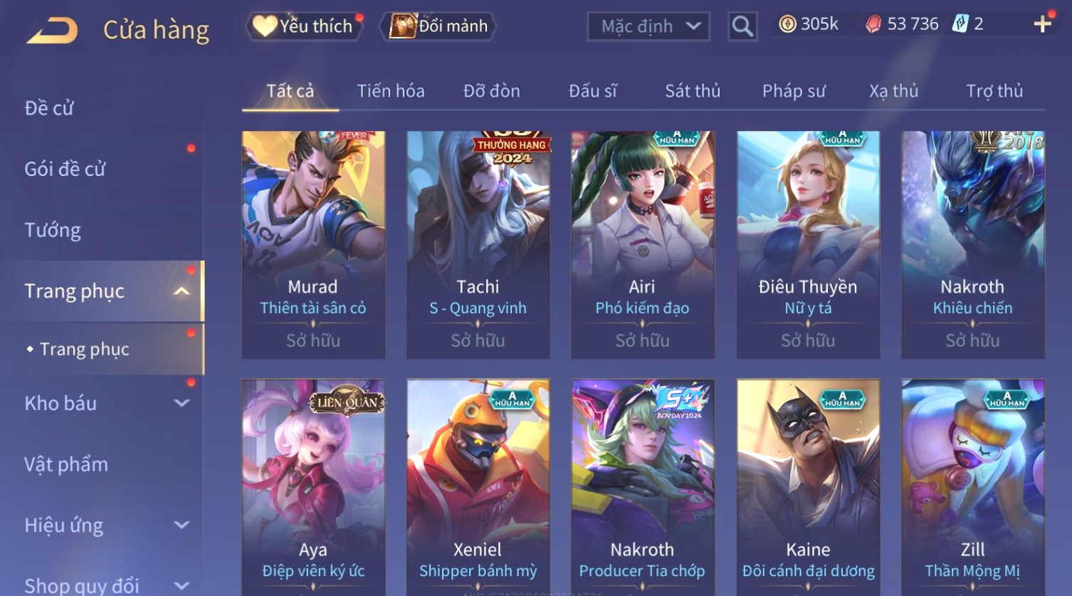 Nổi bật: Skin: Flo Kỷ Nguyên Hổ Phách×Elsu Sử Giả Tận Thế×Violet Thần Long Tỷ Tỷ×Yorn Long Thần Soái×Laville Xạ thần Tinh Vệ×Richter Thần Kiếm Susanoo×Airi Kiemono×Full Ngọc, Nhiều Skin SS Đẹp