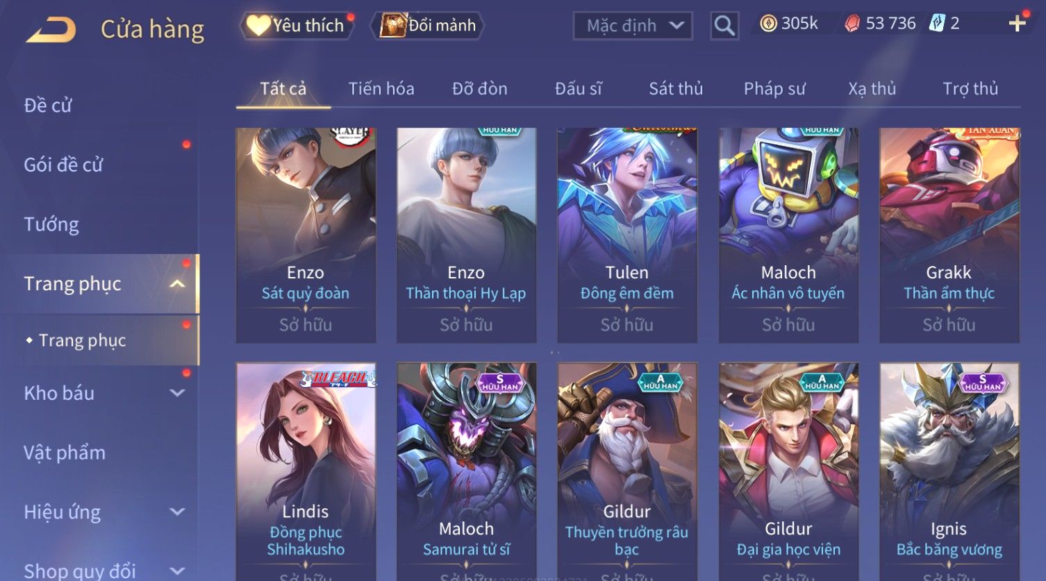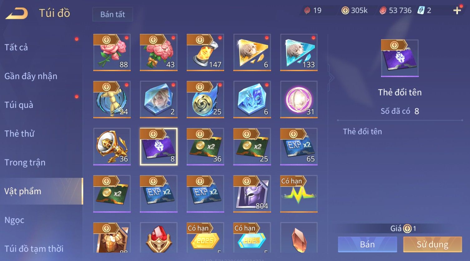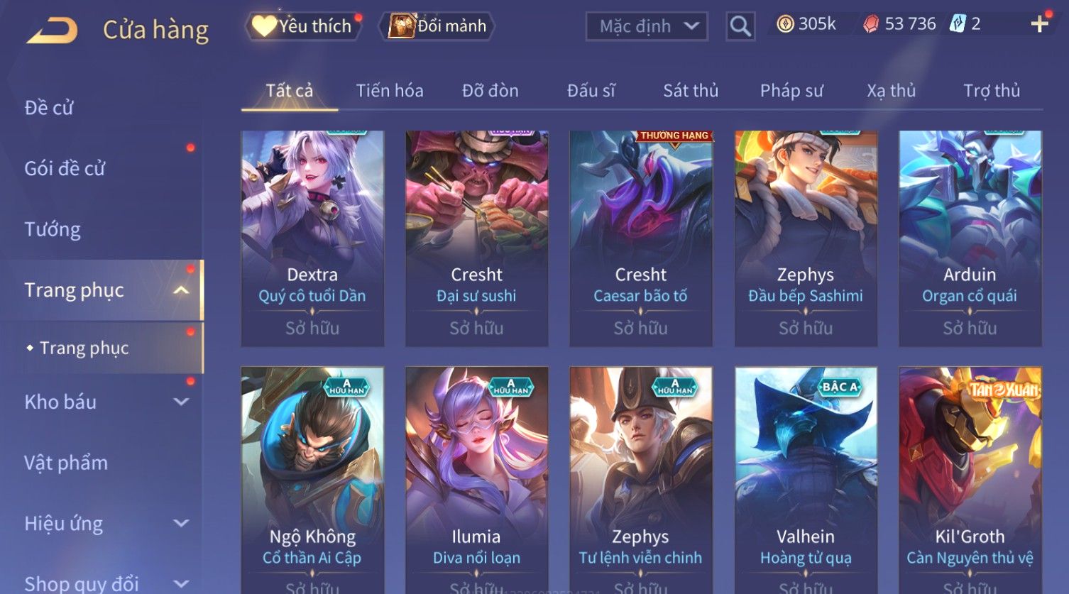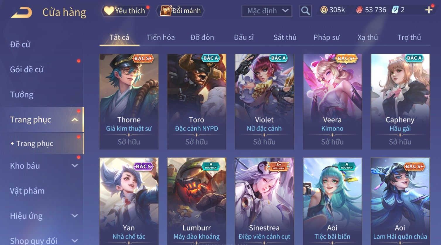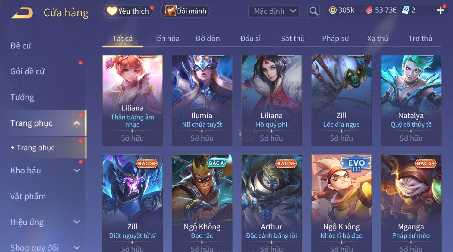 Nổi bật: Skin: Flo Kỷ Nguyên Hổ Phách×Elsu Sử Giả Tận Thế×Violet Thần Long Tỷ Tỷ×Yorn Long Thần Soái×Laville Xạ thần Tinh Vệ×Richter Thần Kiếm Susanoo×Airi Kiemono×Full Ngọc, Nhiều Skin SS Đẹp