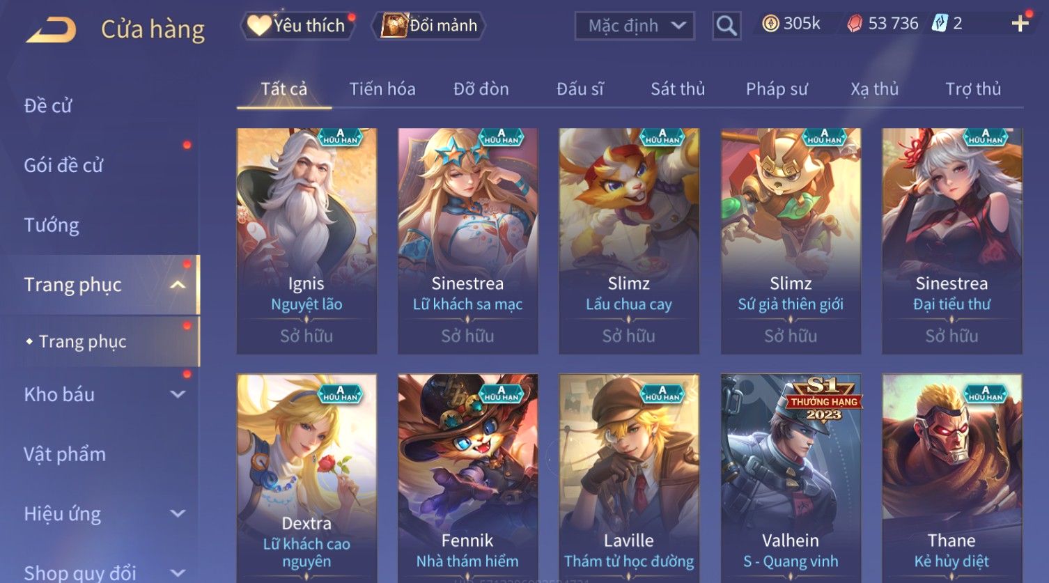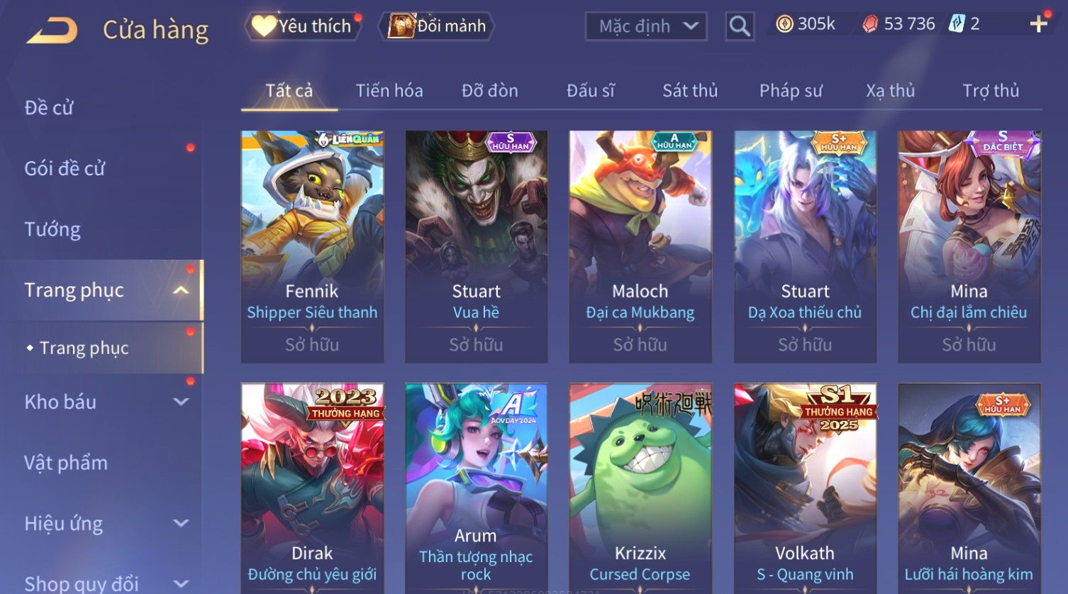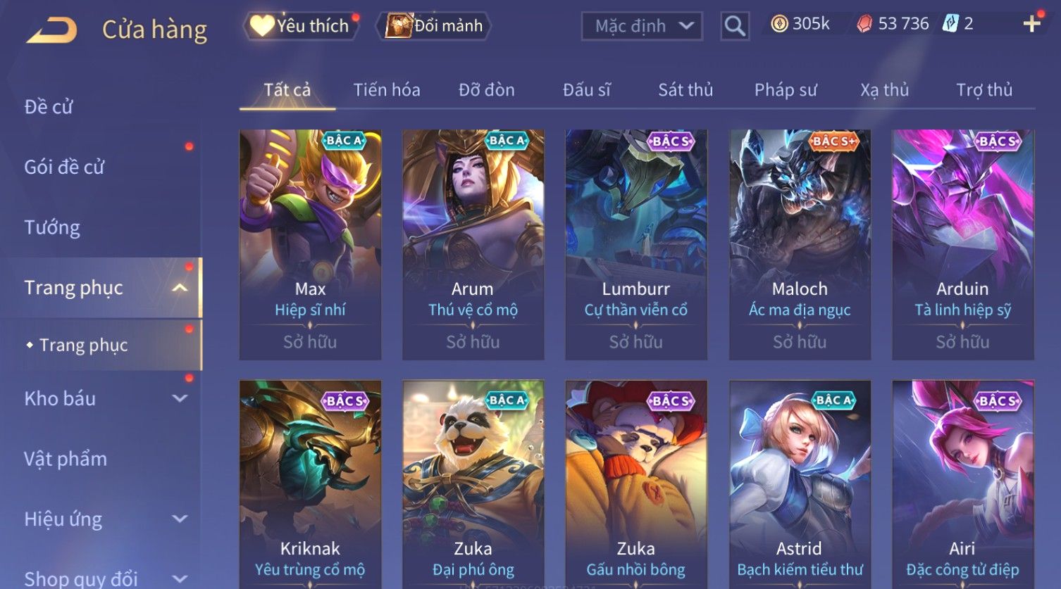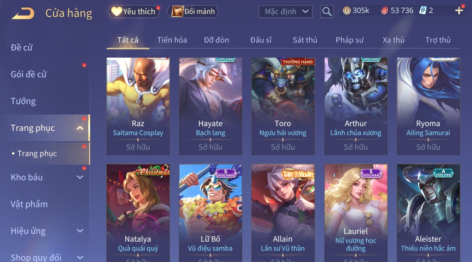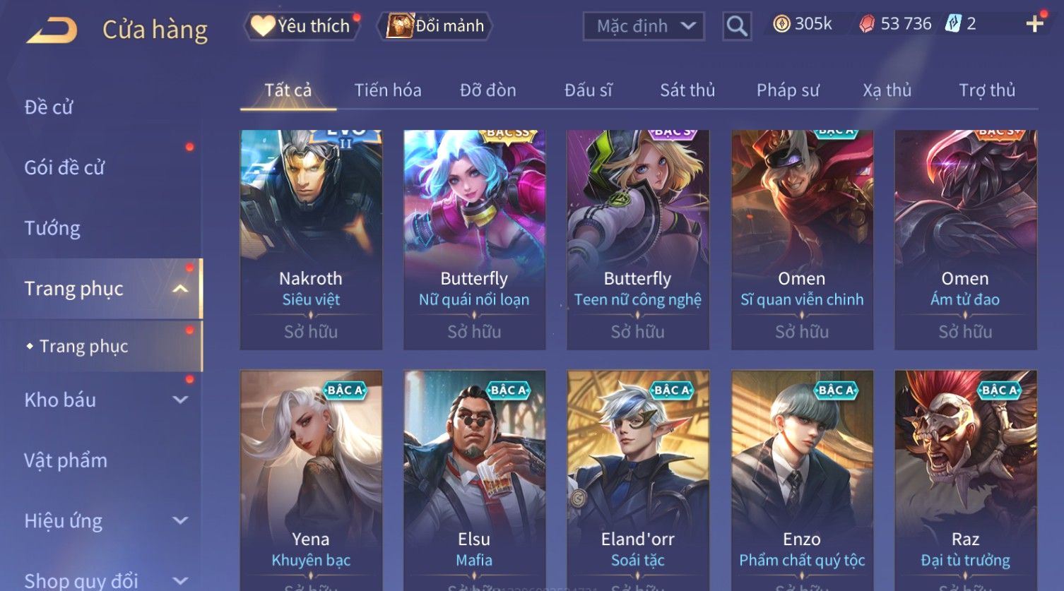 Nổi bật: Skin: Flo Kỷ Nguyên Hổ Phách×Elsu Sử Giả Tận Thế×Violet Thần Long Tỷ Tỷ×Yorn Long Thần Soái×Laville Xạ thần Tinh Vệ×Richter Thần Kiếm Susanoo×Airi Kiemono×Full Ngọc, Nhiều Skin SS Đẹp