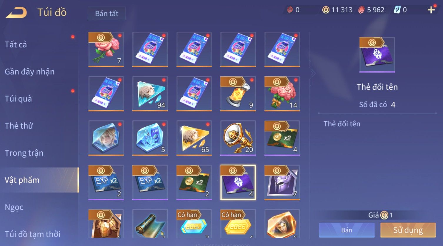 Trạng Thái: Nick có SĐT or Gmail Của Shop( Có Thể Thay Đổi)