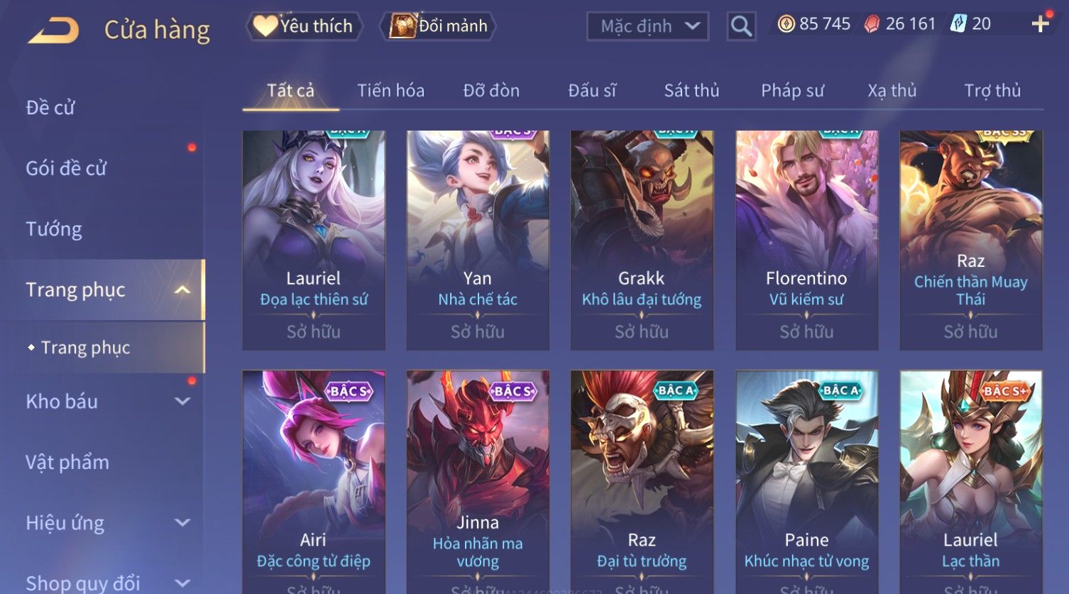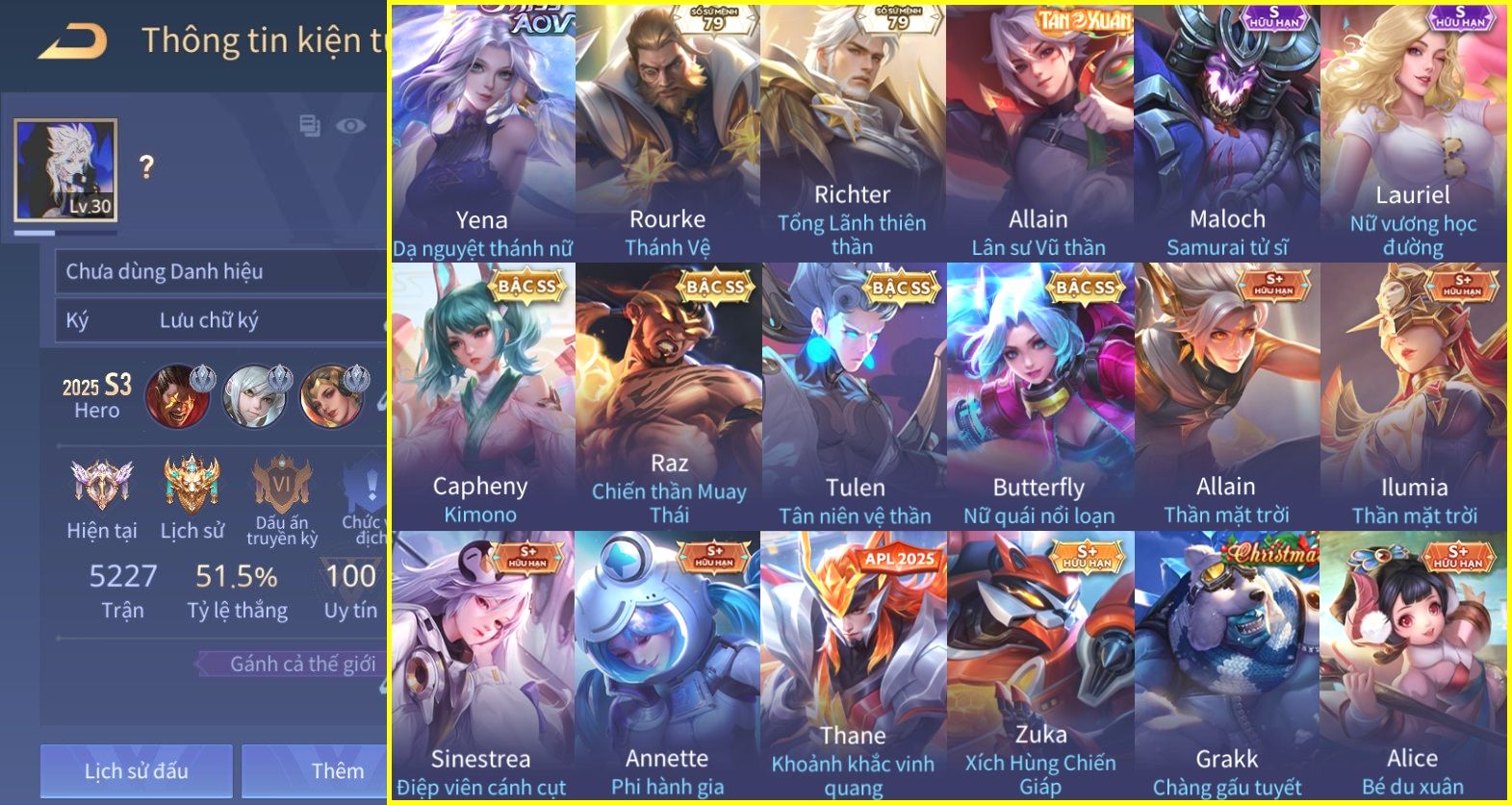 Nổi bật: Skin: Raz Chiến Thần Muay Thái×Capheny Kimono×Tulen Tân Niên Vệ Thần×Butterfly Nữ Quái Nổi Loạn×Full Ngọc, Nhiều Skin SS Đẹp