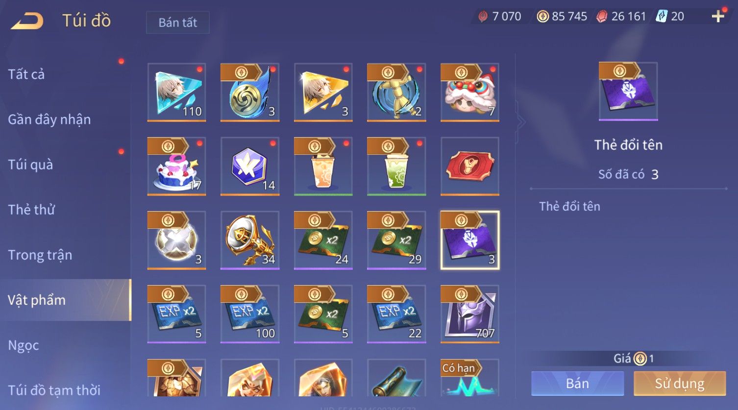 Trạng Thái: Nick có SĐT or Gmail Của Shop( Có Thể Thay Đổi)