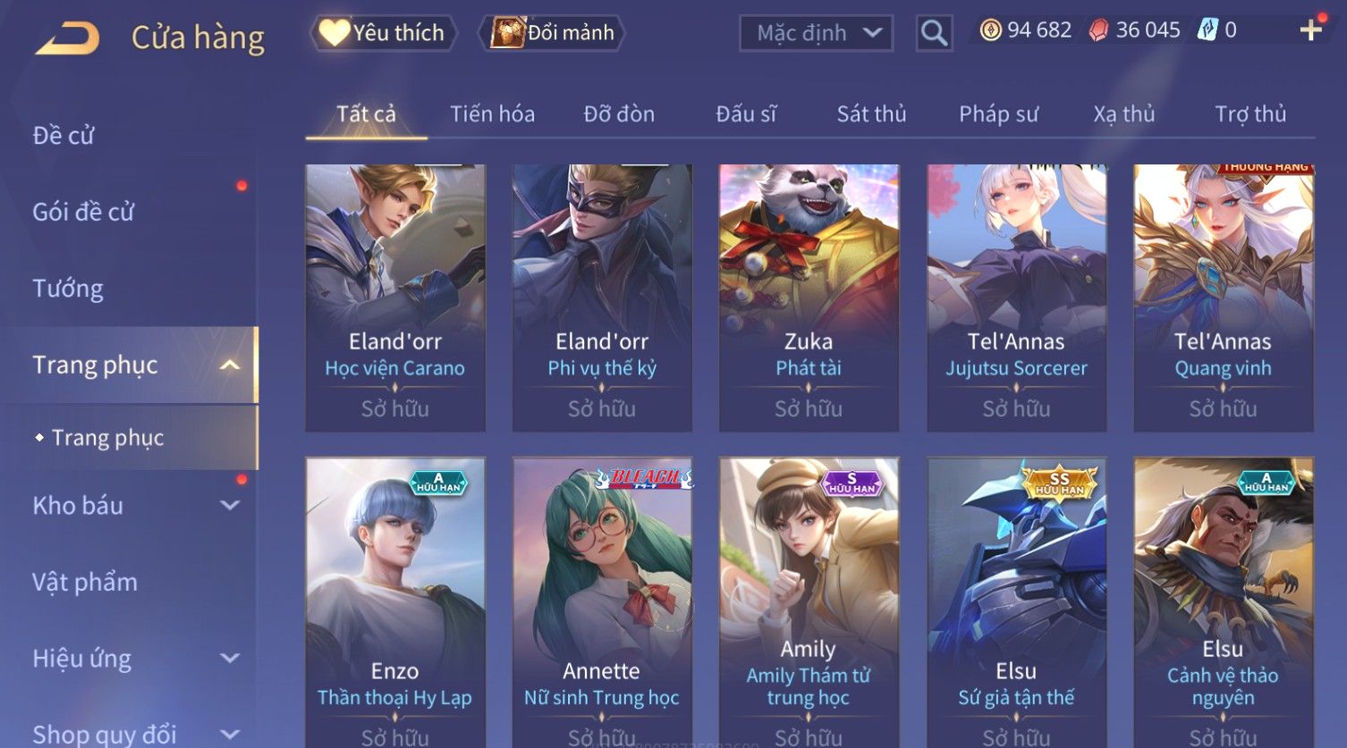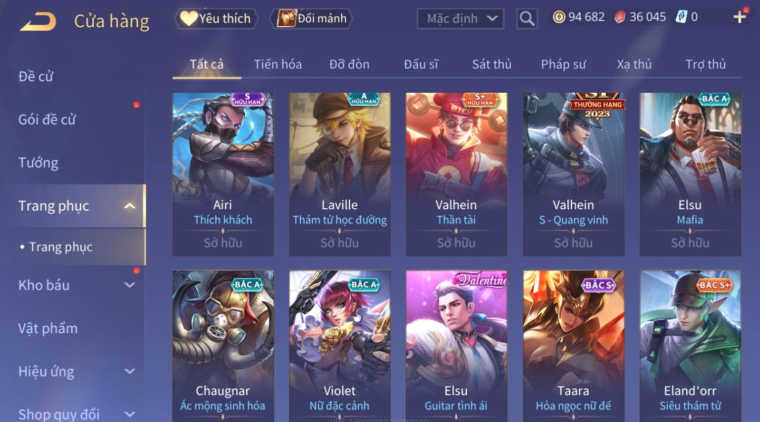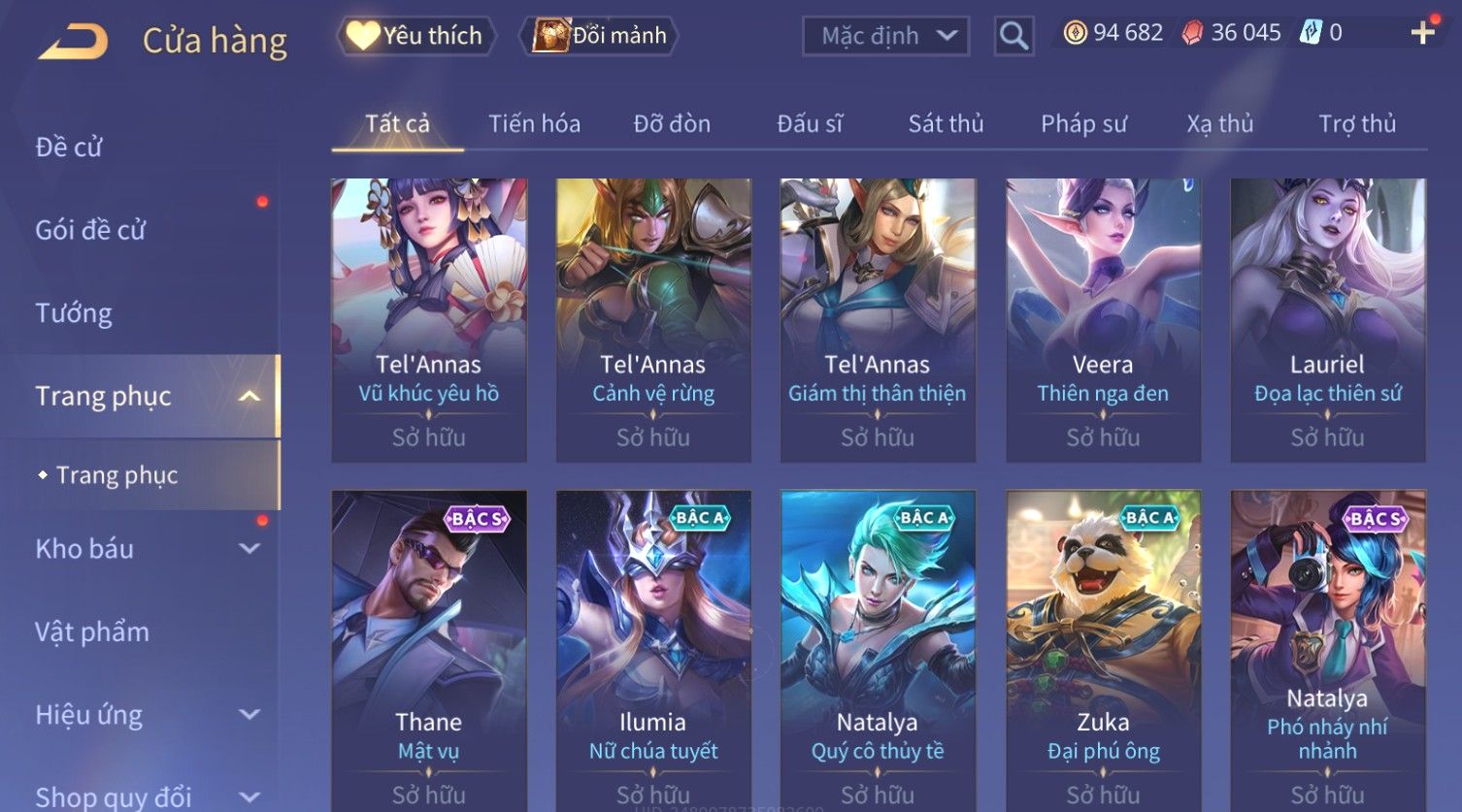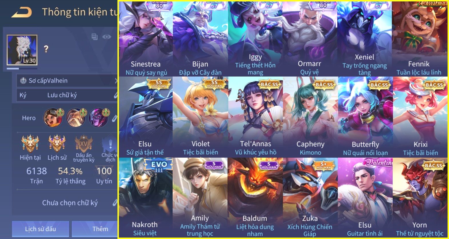 Nổi bật: Skin: Elsu Sử Giả Tận Thế×Violet Tiệc Bãi Biển×Tel'Annas Vũ Khúc Yêu Hồ×Capheny Kimono×Butterfly Nữ Quái Nổi Loạn×Elsu Guitar Tình Ái×Full Ngọc, Nhiều Skin SS Đẹp