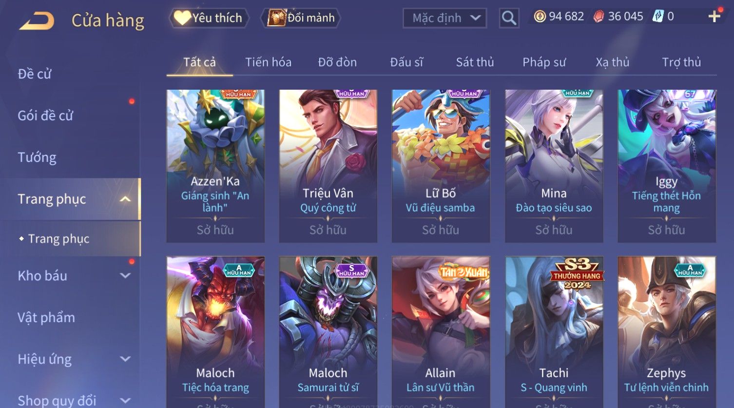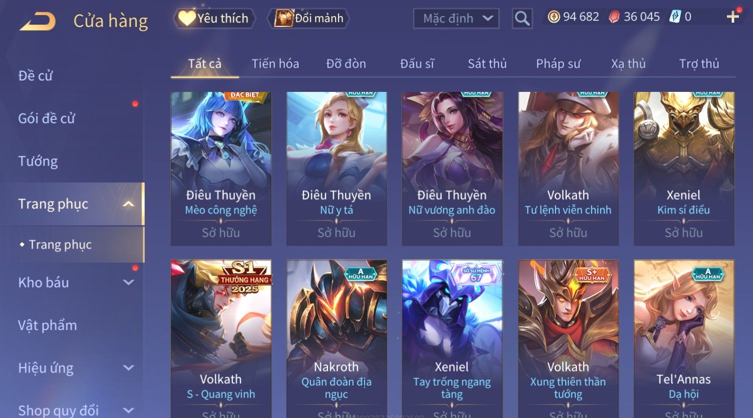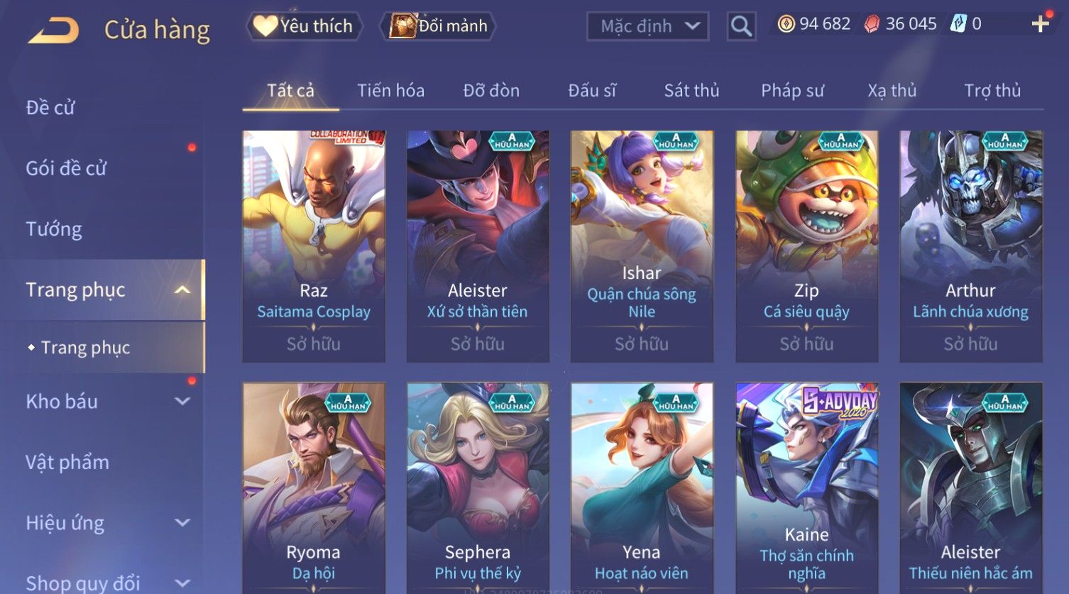 Nổi bật: Skin: Elsu Sử Giả Tận Thế×Violet Tiệc Bãi Biển×Tel'Annas Vũ Khúc Yêu Hồ×Capheny Kimono×Butterfly Nữ Quái Nổi Loạn×Elsu Guitar Tình Ái×Full Ngọc, Nhiều Skin SS Đẹp