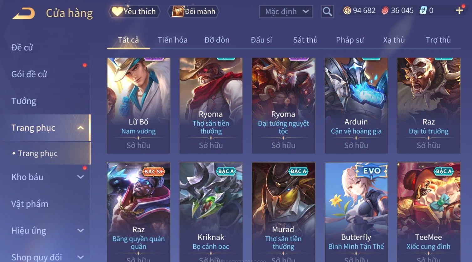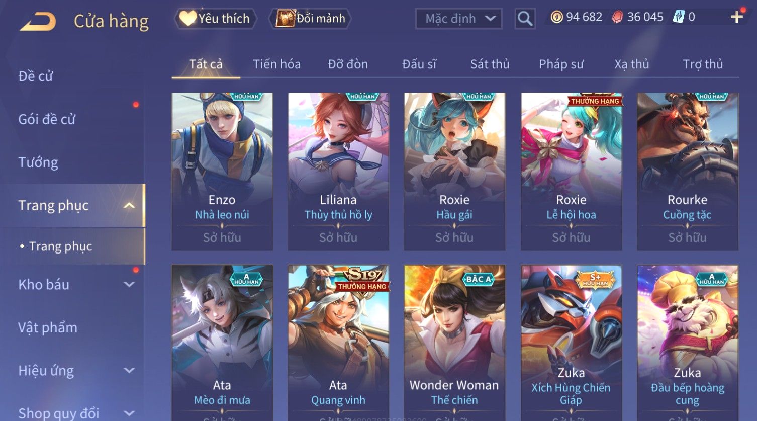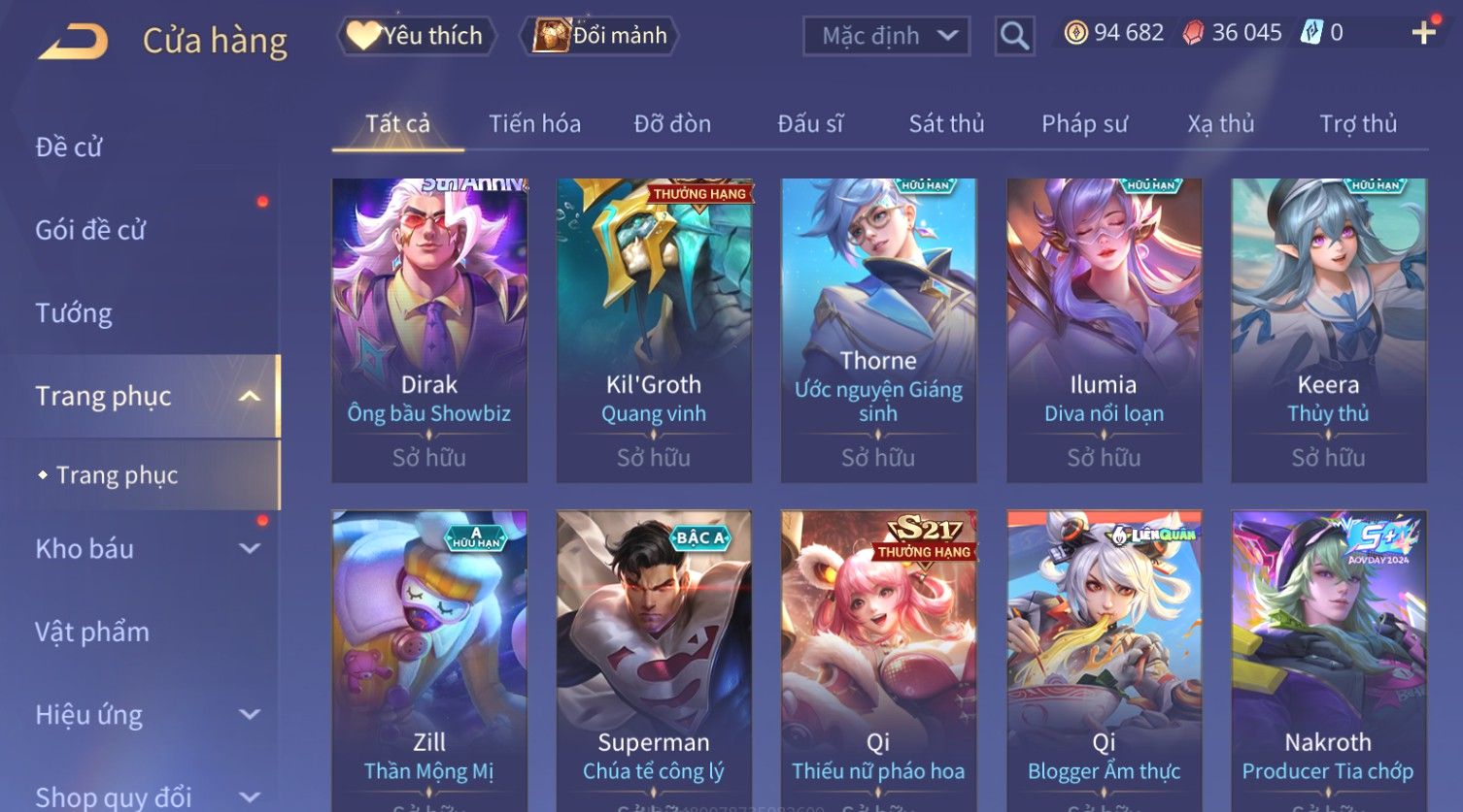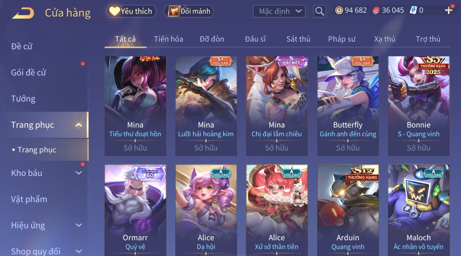 Nổi bật: Skin: Elsu Sử Giả Tận Thế×Violet Tiệc Bãi Biển×Tel'Annas Vũ Khúc Yêu Hồ×Capheny Kimono×Butterfly Nữ Quái Nổi Loạn×Elsu Guitar Tình Ái×Full Ngọc, Nhiều Skin SS Đẹp