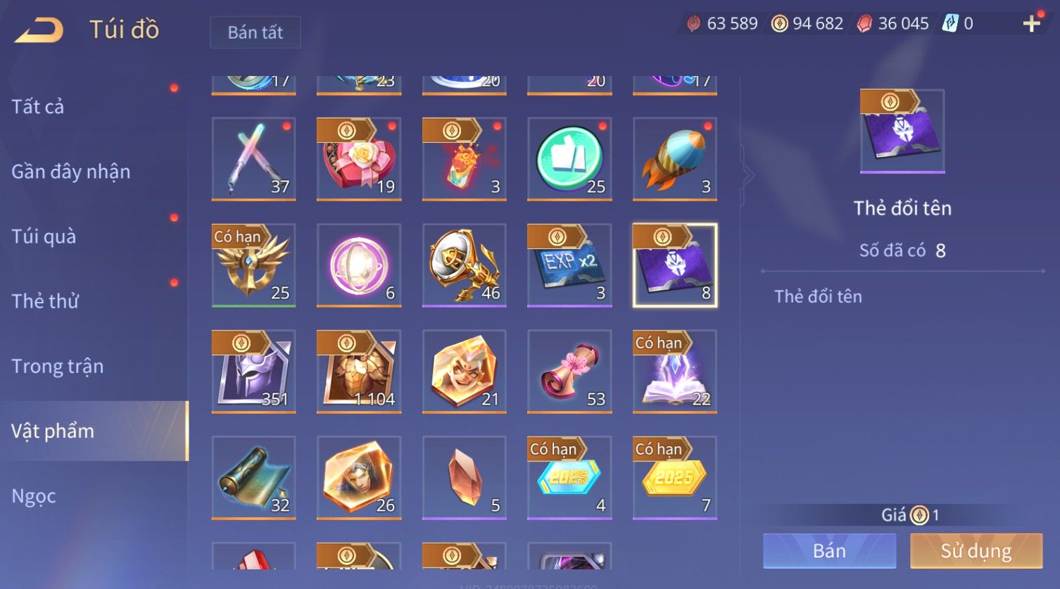 Trạng Thái: Nick có SĐT or Gmail Của Shop( Có Thể Thay Đổi)