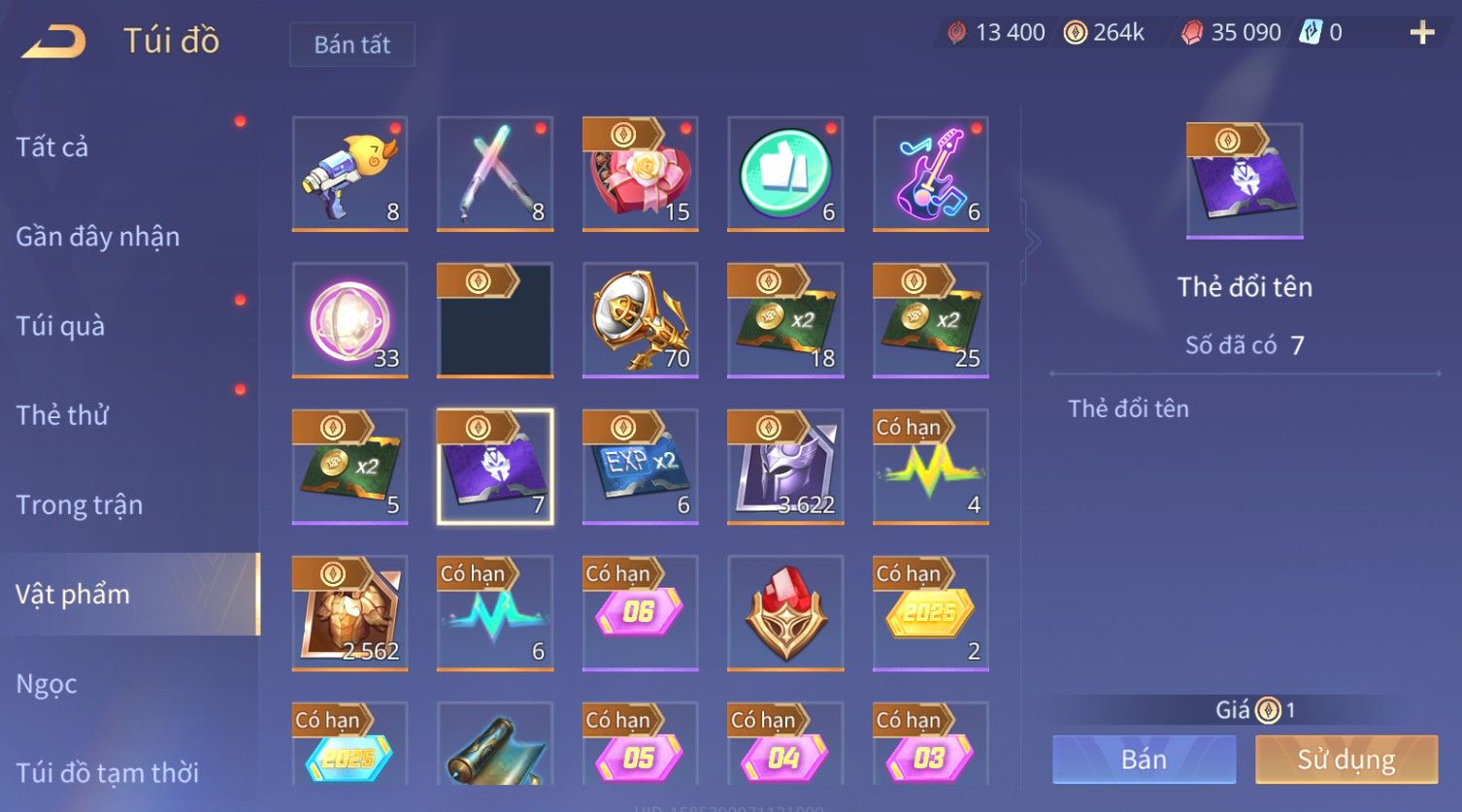 Trạng Thái: Nick có SĐT or Gmail Của Shop( Có Thể Thay Đổi)